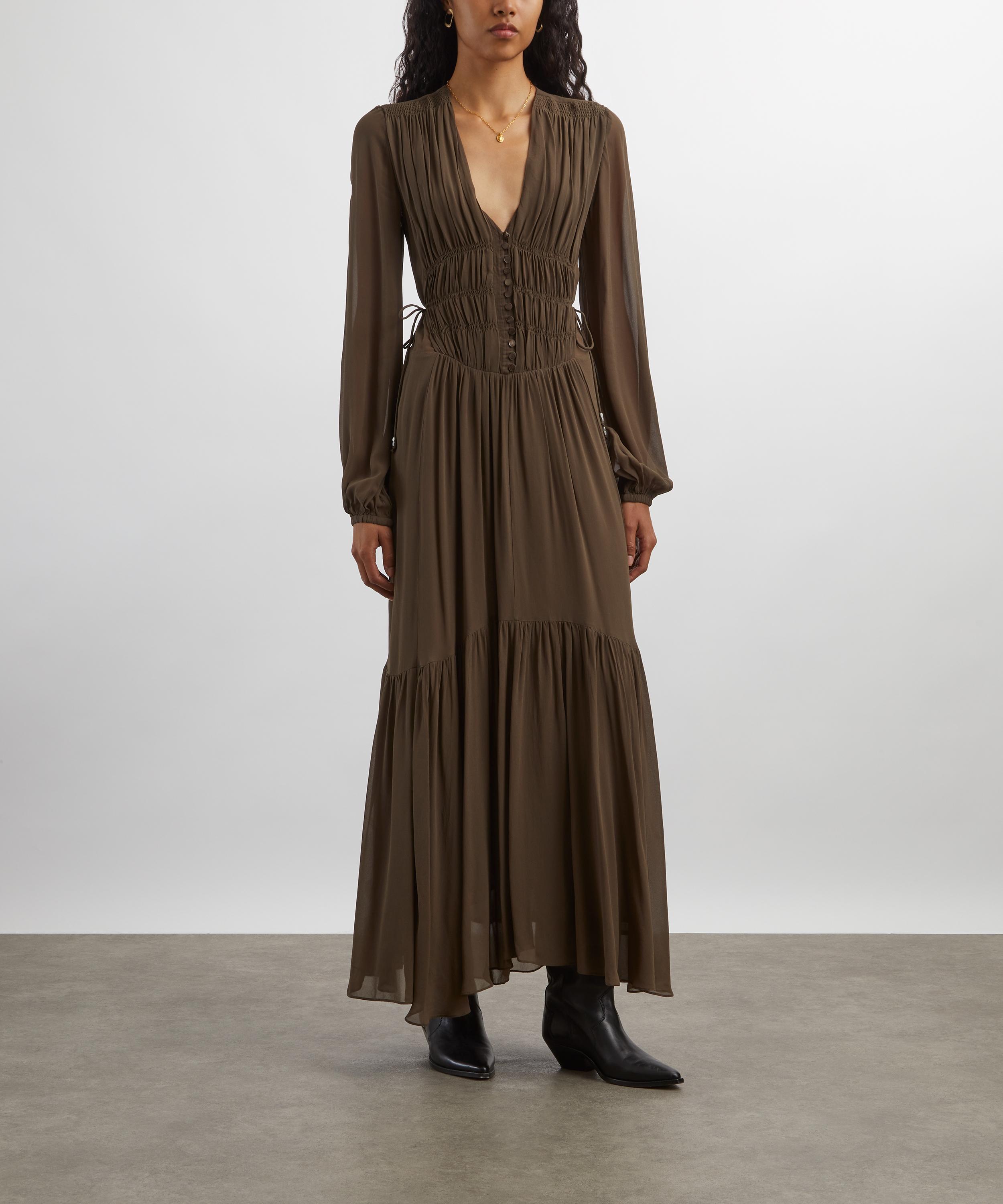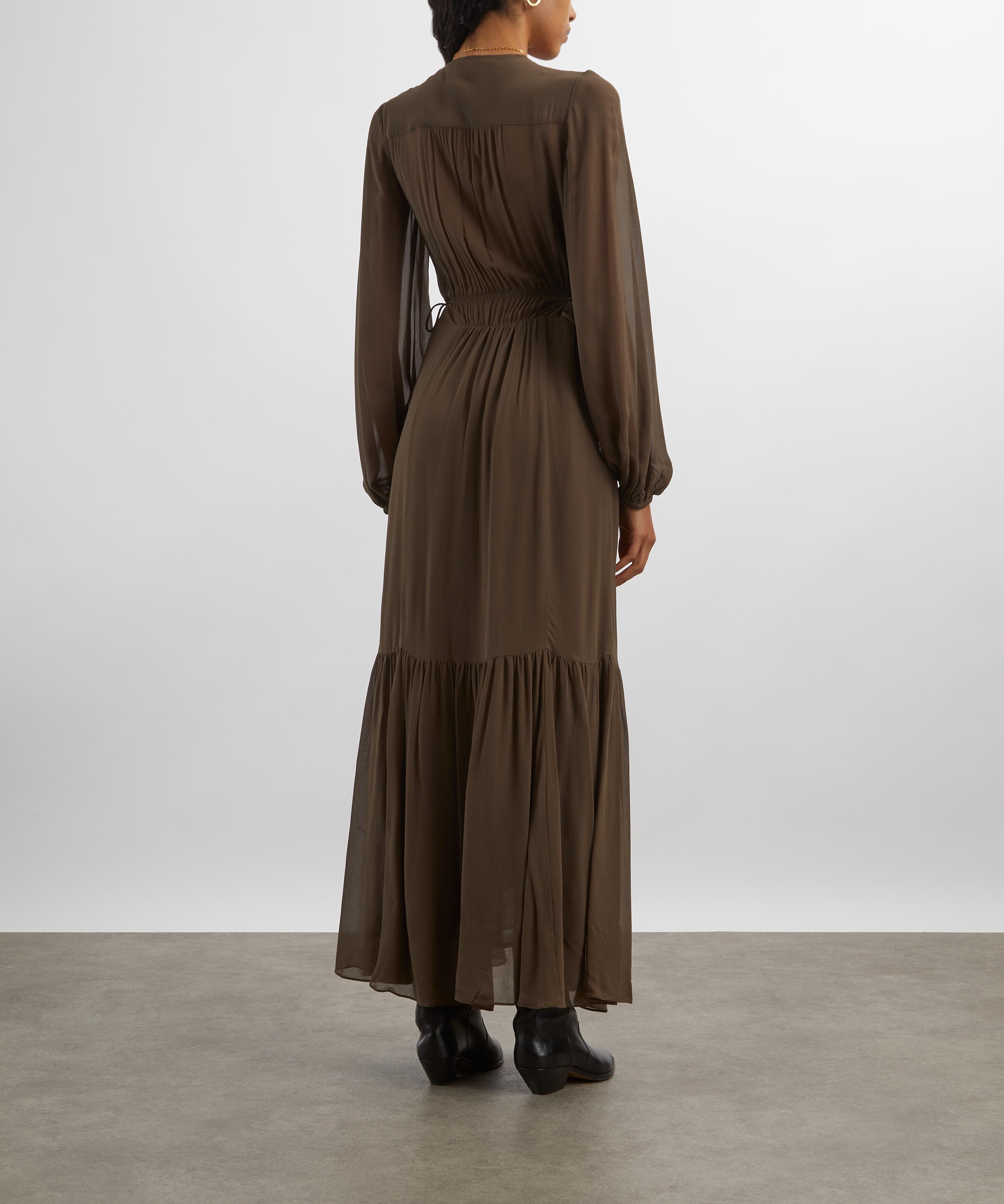 The Brianne Georgette Maxi Dress from Isabel Marant brings an effortless touch of Parisian bohemian chic to your new season edit.