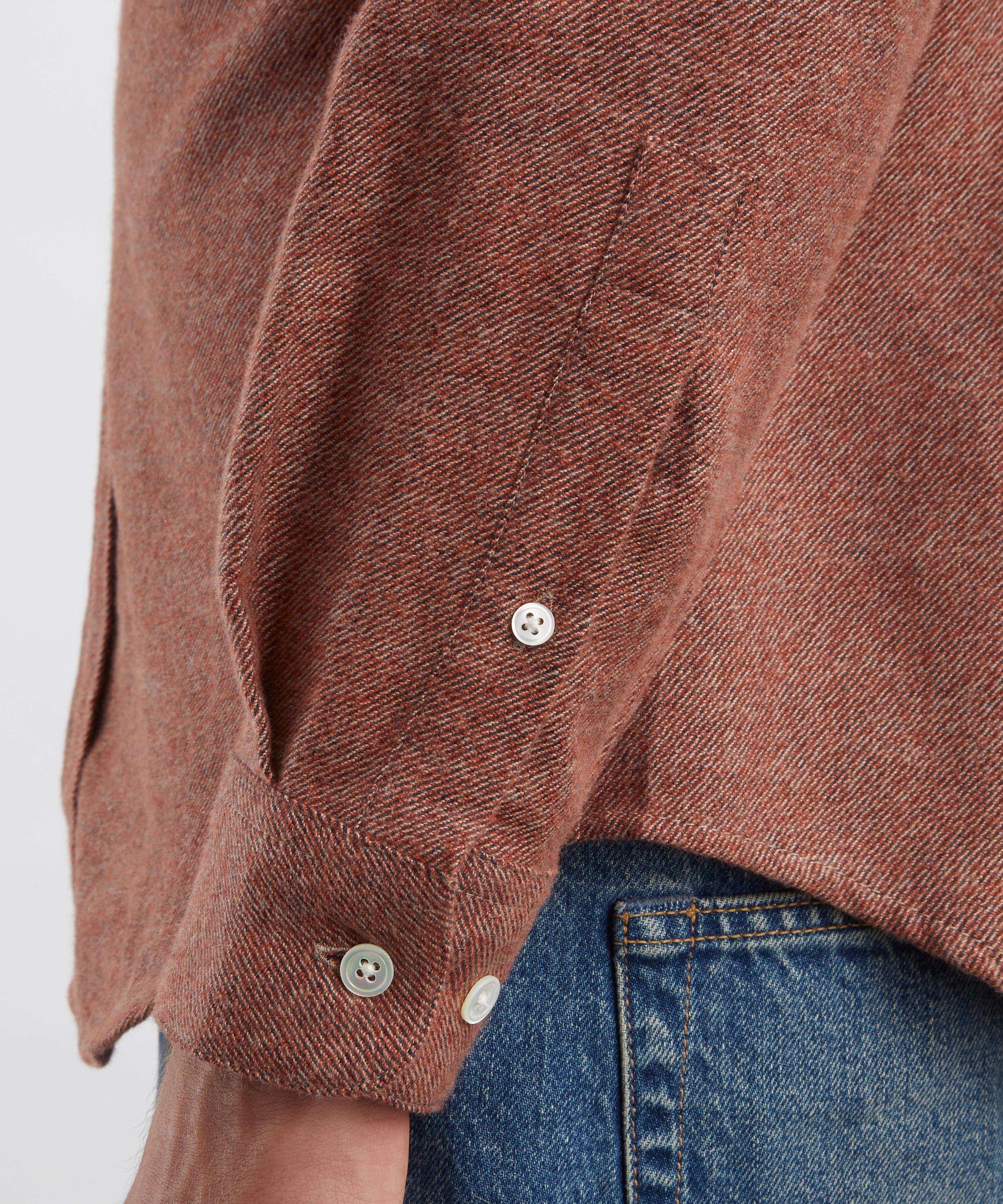 Crafted from cotton with a soft brushed finish, this mottled red shirt features a classic collar, mother-of-pearl button fastening, and a single chest pocket - offering timeless utilitarian style with a modern edge.