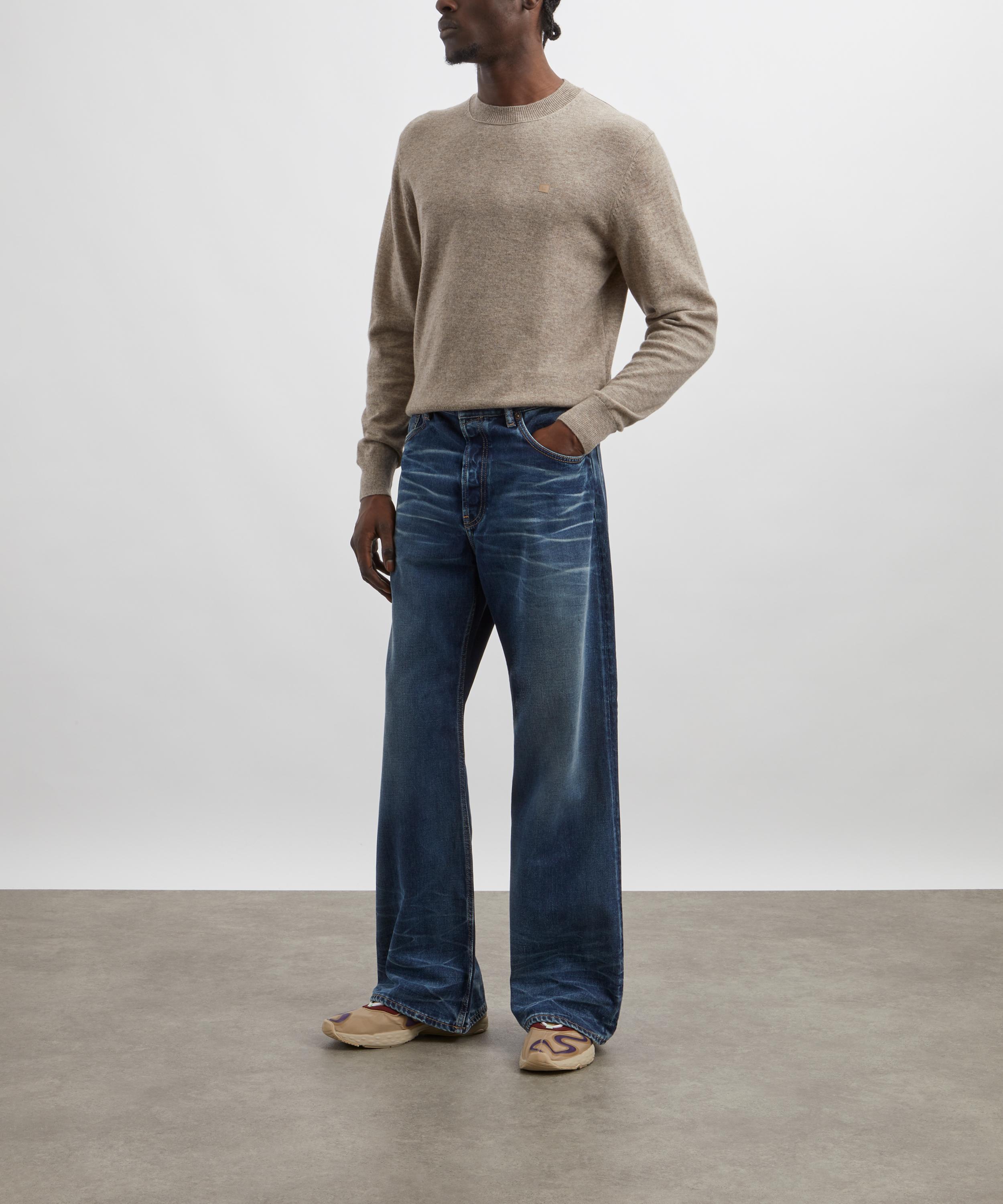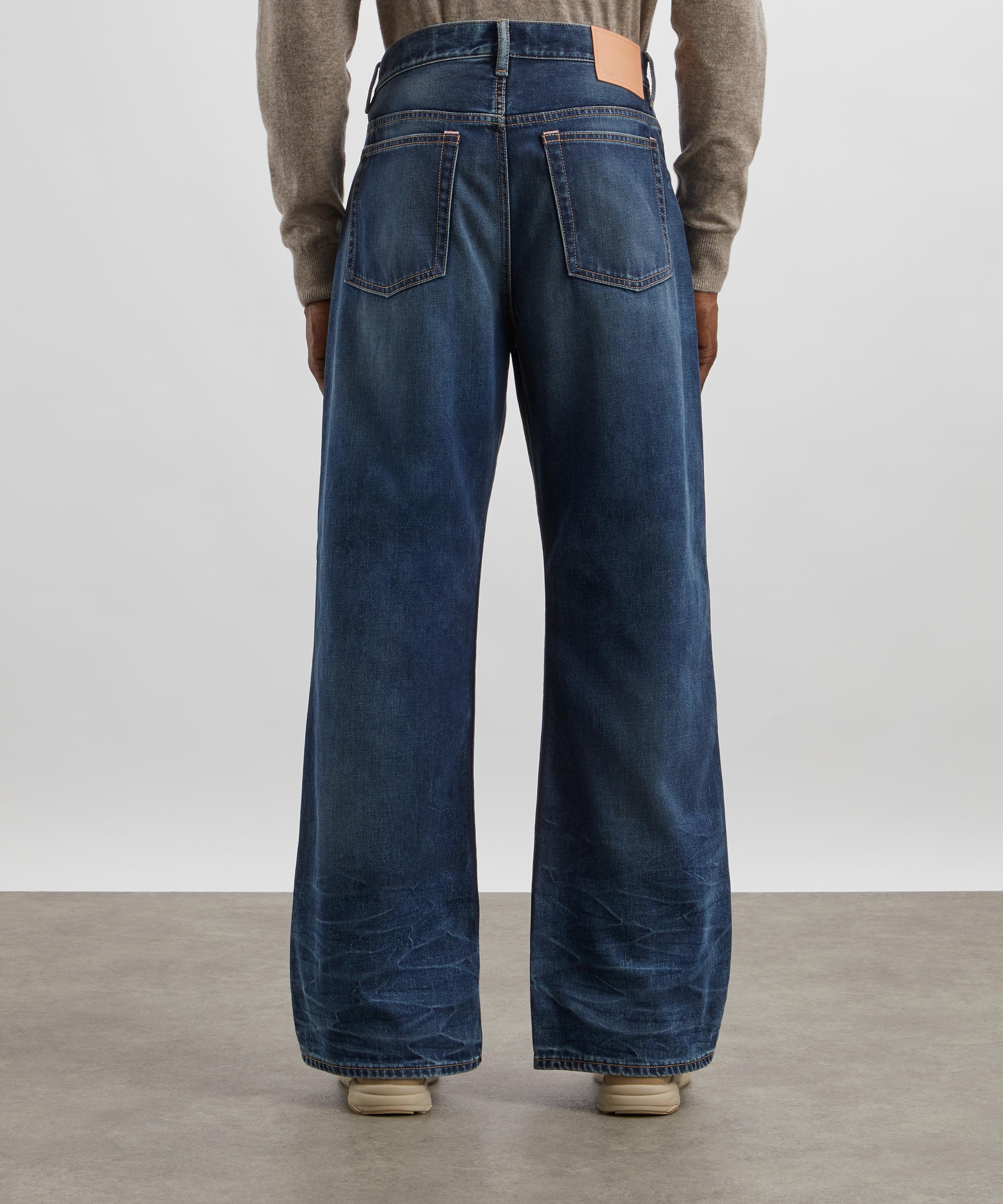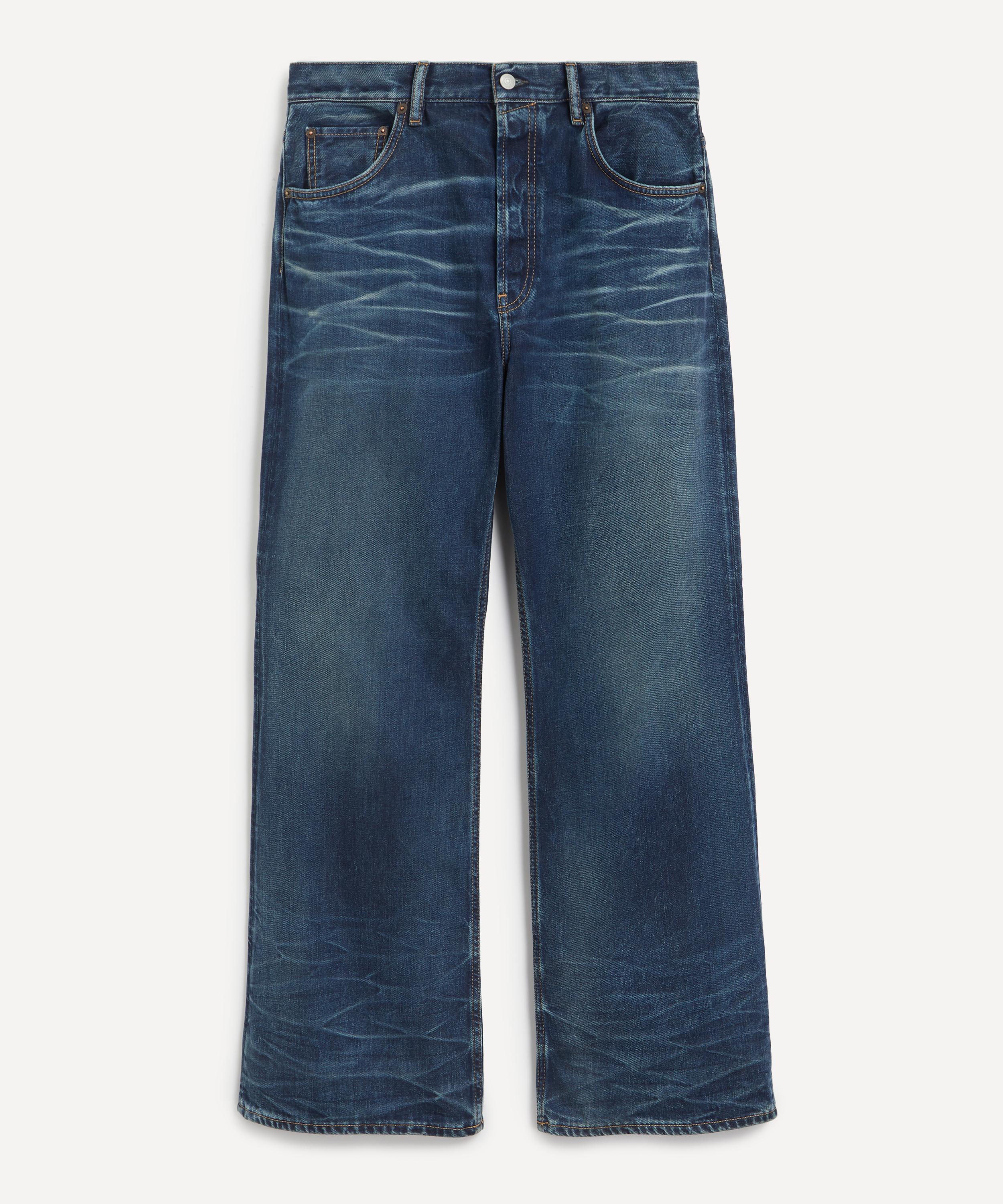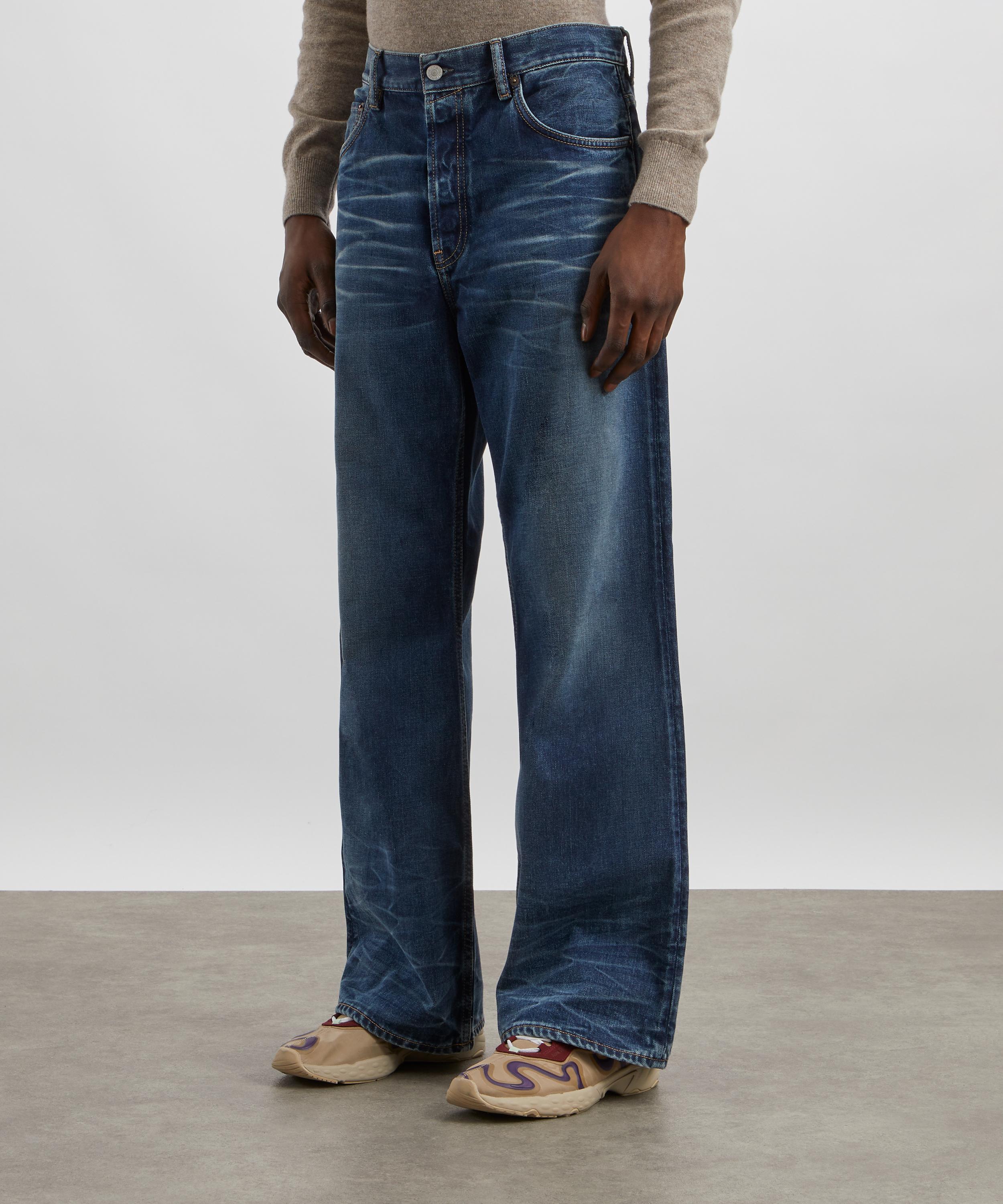 Crafted from rigid cotton denim in a deep blue wash with a faded, lived-in finish, these loose fit jeans boast a mid-rise waist, a wide leg silhouette and a logo-embossed leather jacron patch. Complete with 5-pocket construction, they are an effortlessly stylish addition to your denim line-up.