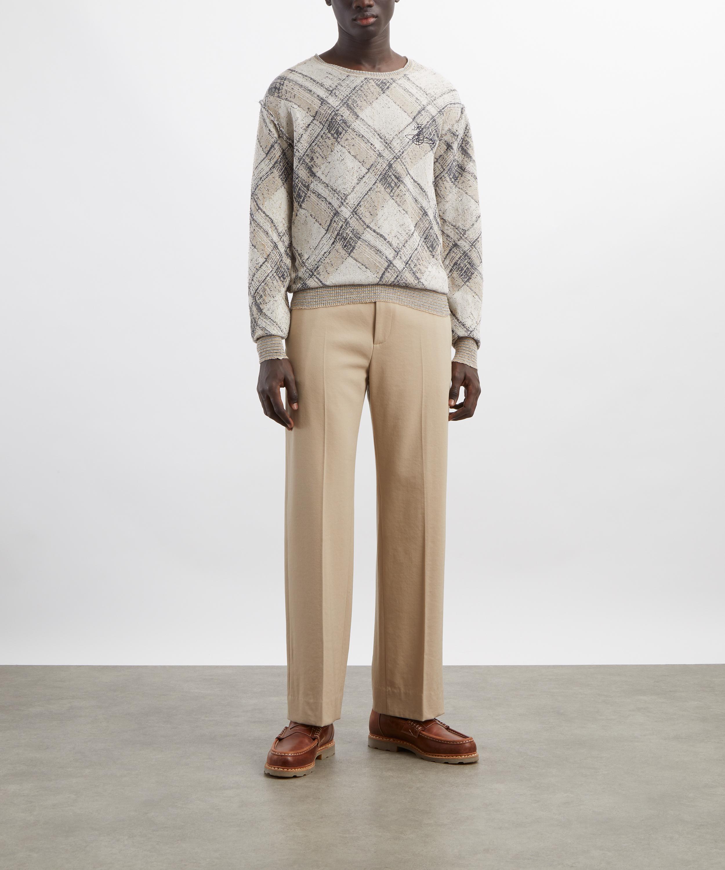 Made in Italy from a linen-cotton blend, this jumper features a tartan jacquard inspired by the house’s archival ‘Glen Check’ motif. Cut for a relaxed fit with a classic crew neckline and ribbed trims, it is completed with an embroidered ‘Graffiti Orb’ for a distinctive finish.