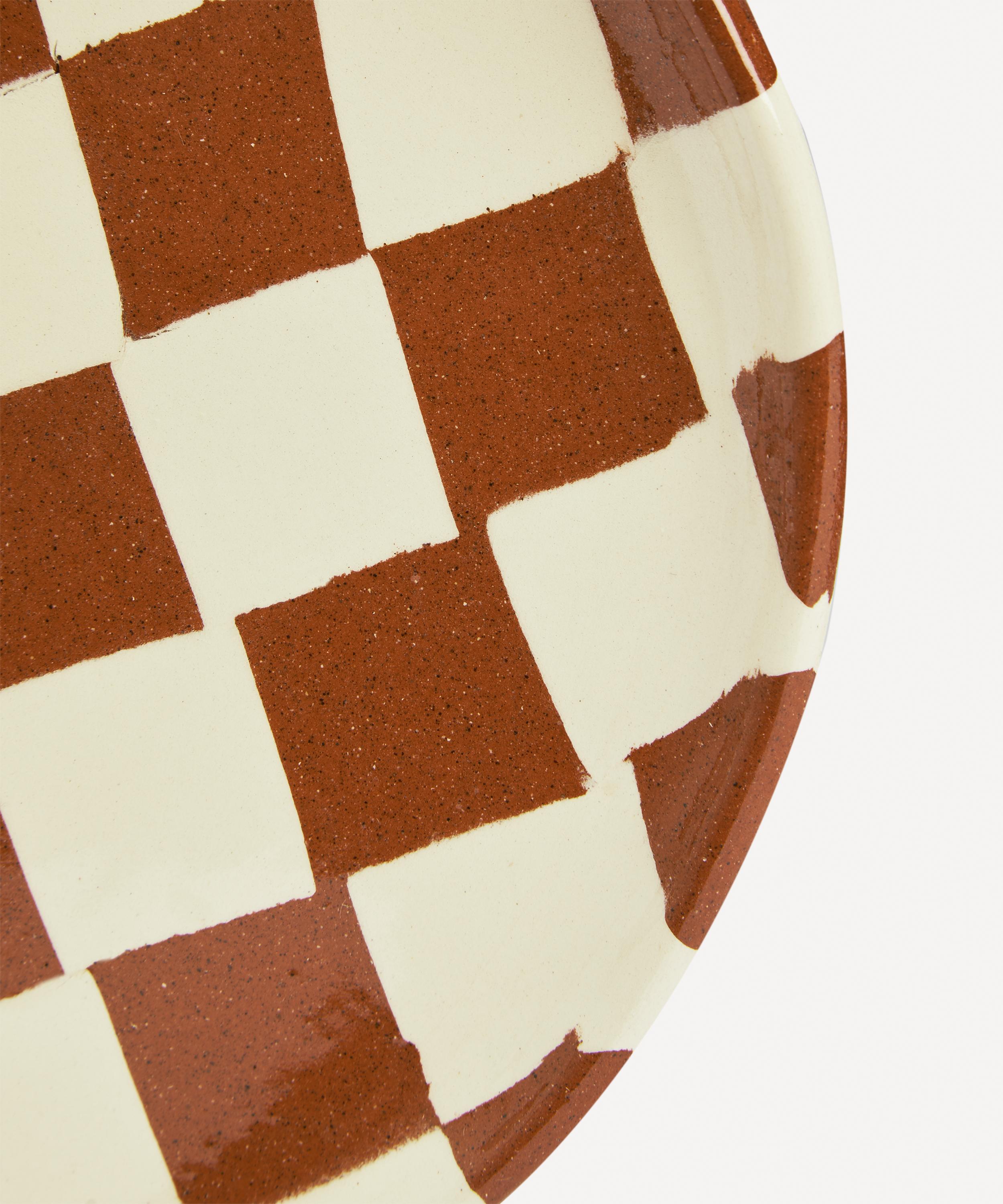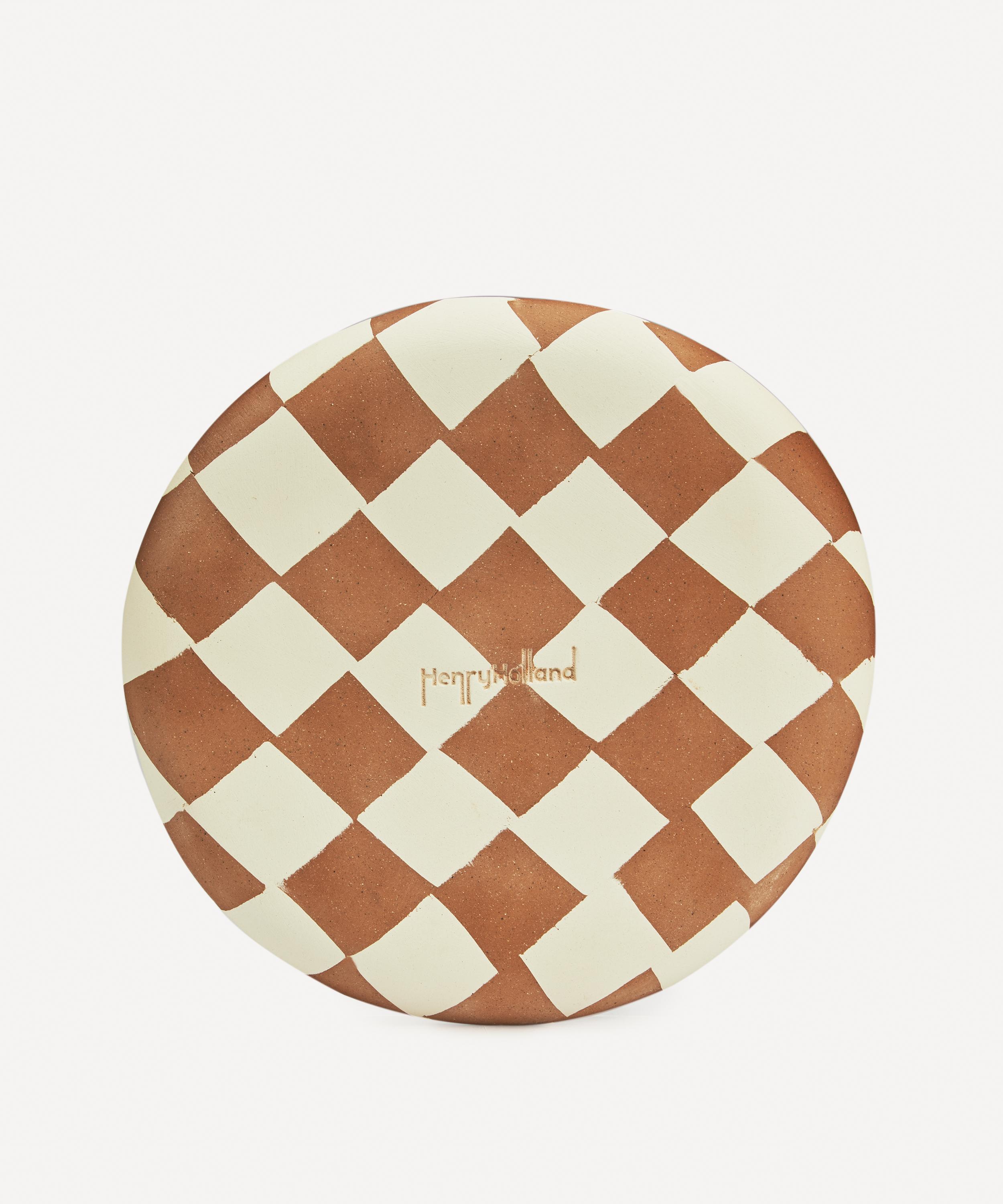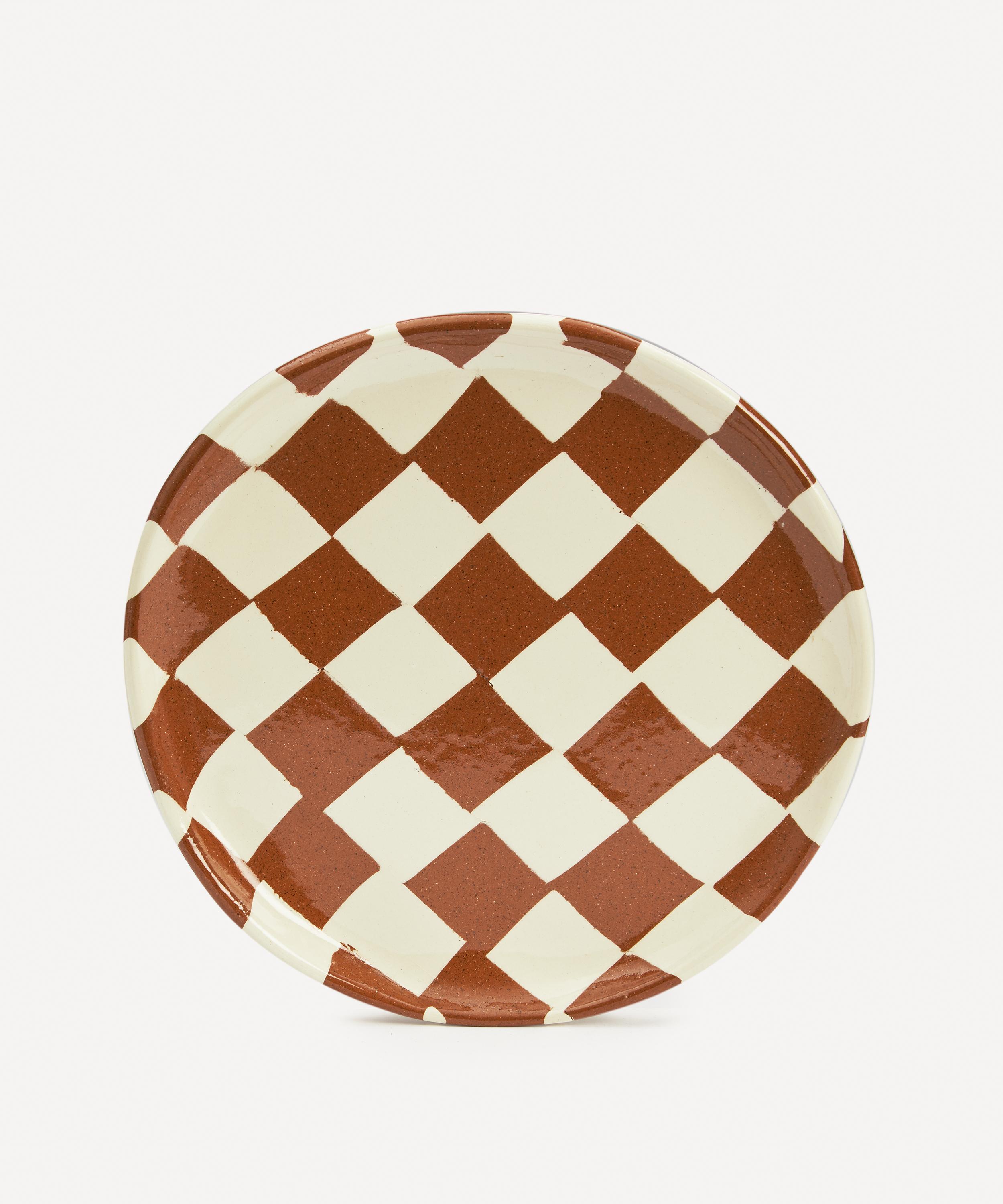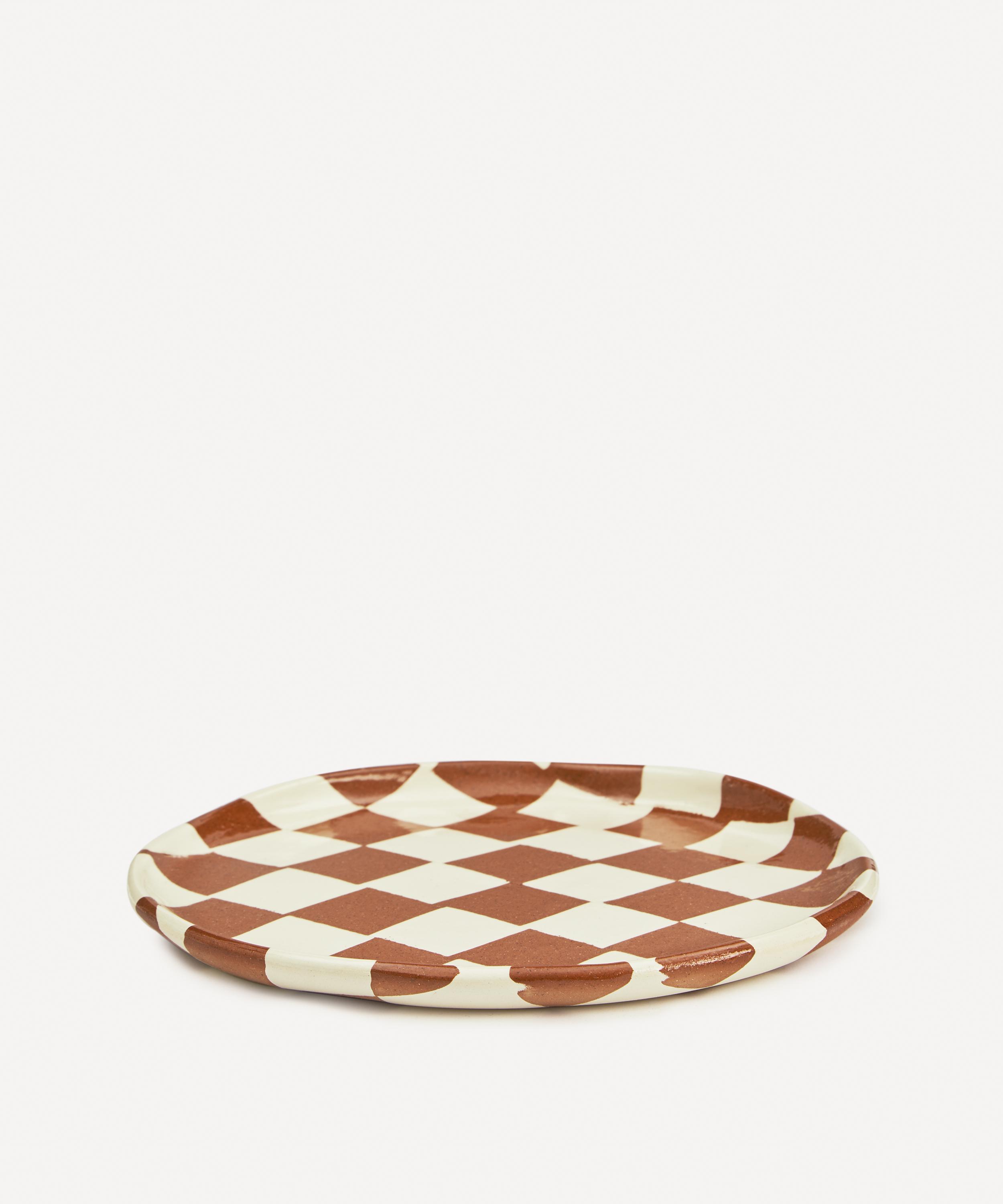 Small but mighty, this side plate is hand-built using a drape moulding technique, resulting in slight imperfections that add to the unique look and feel. Finished with a transparent high-gloss glaze to reveal the intricate checkerboard pattern of brown and white clay beneath, each side plate is a statement piece in its own right. The perfect addition to any tablescape, it features a unique hand-pinched edge for practical appeal.