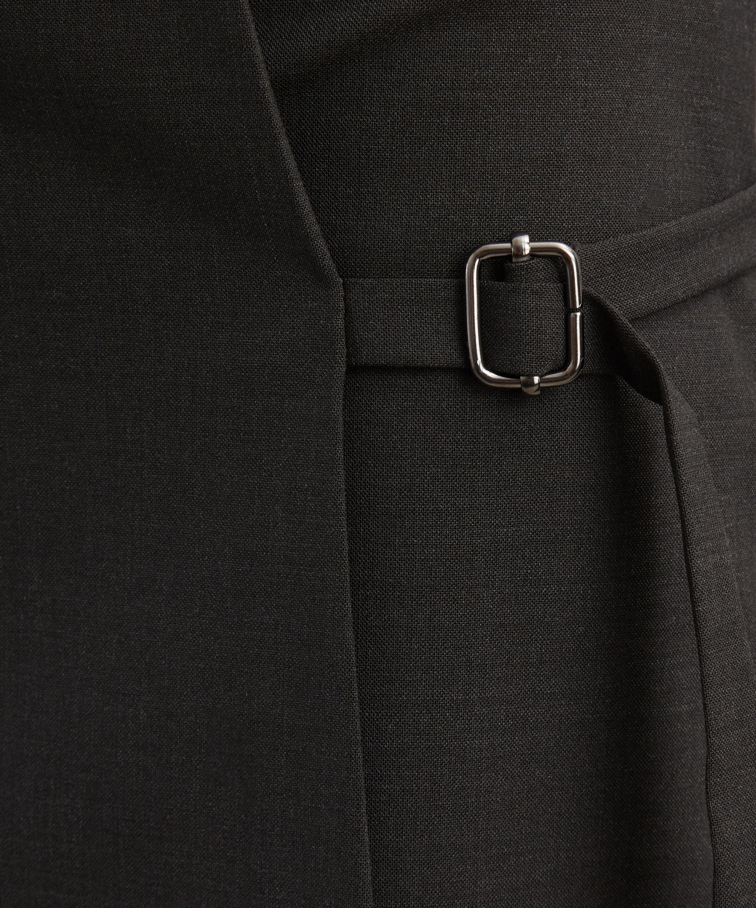 Crafted in Spain from a wrinkle-free wool-blend, the Mini Archive features mid-rise shorts overlaid with a fixed mini skirt, finished with a side buckle for a structured, contemporary twist.
