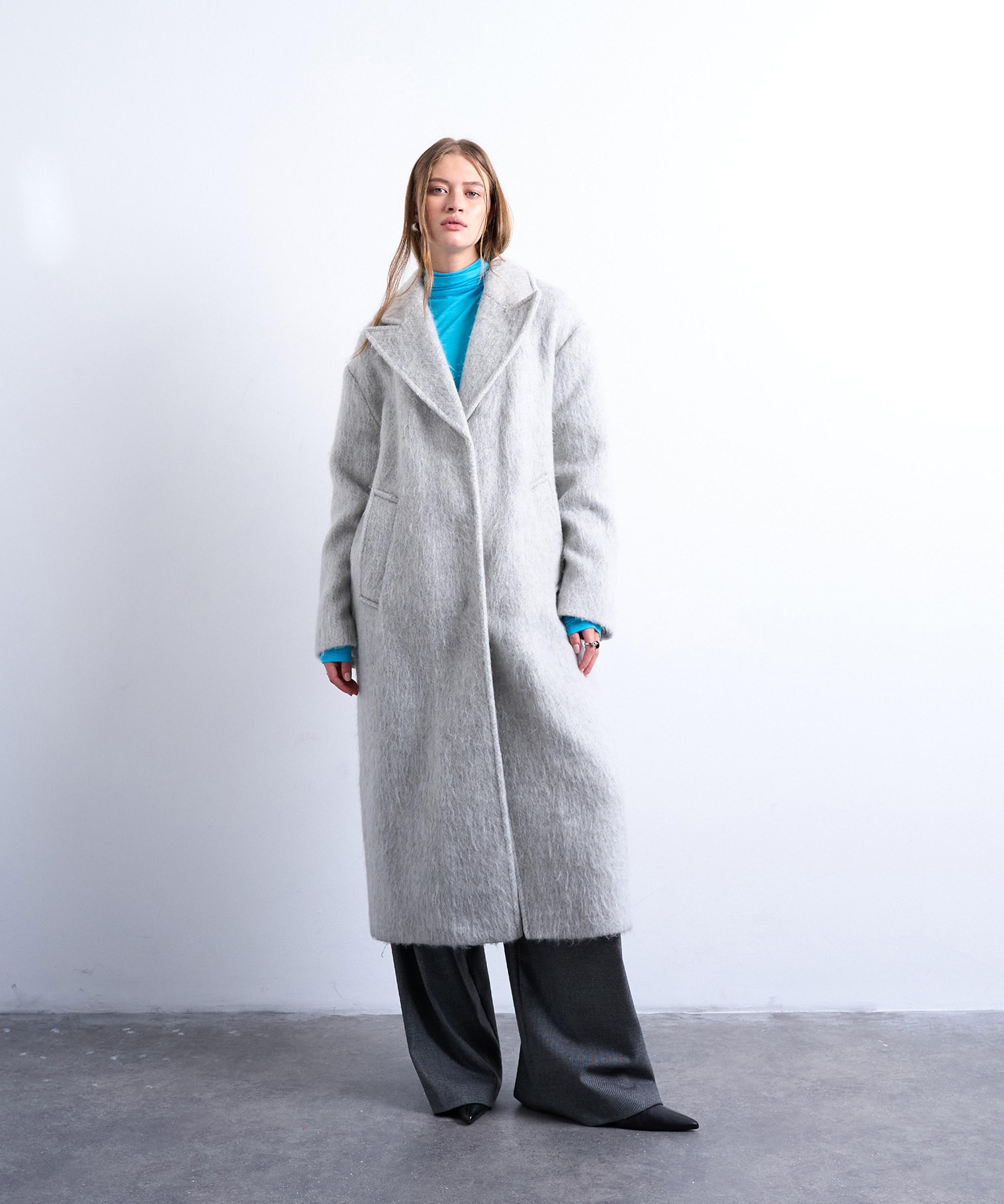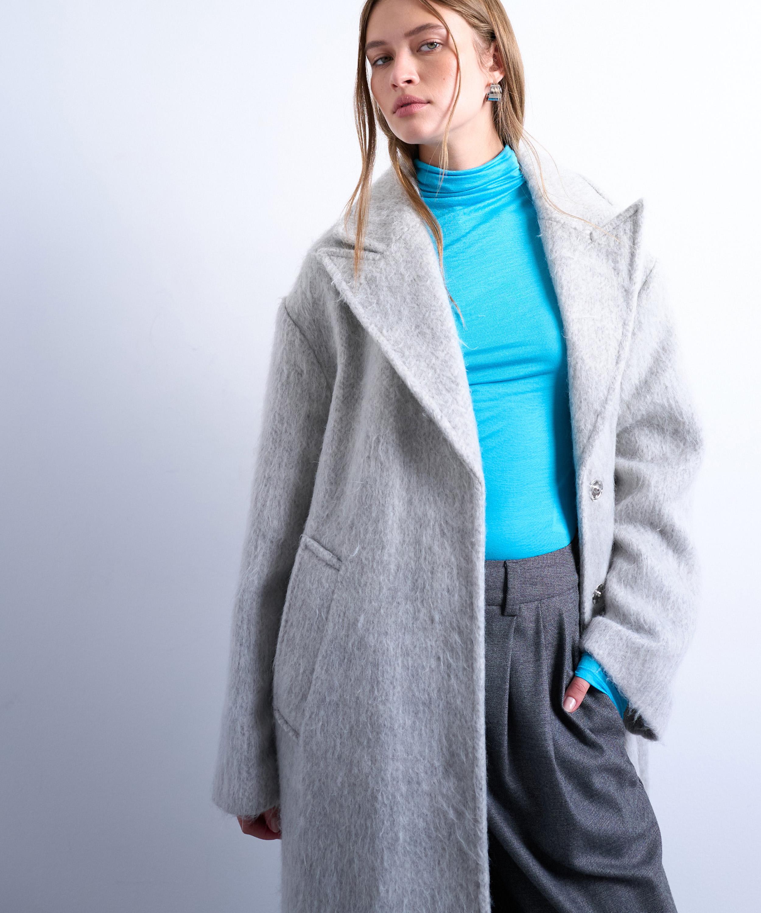 Designed with a relaxed, tailored silhouette in a soft brushed wool blend, this coat is a timeless staple reimagined for the modern wardrobe. It features dropped shoulders, peak lapels, and a press-stud fastening for a clean yet classic finish - effortlessly balancing structure and ease.