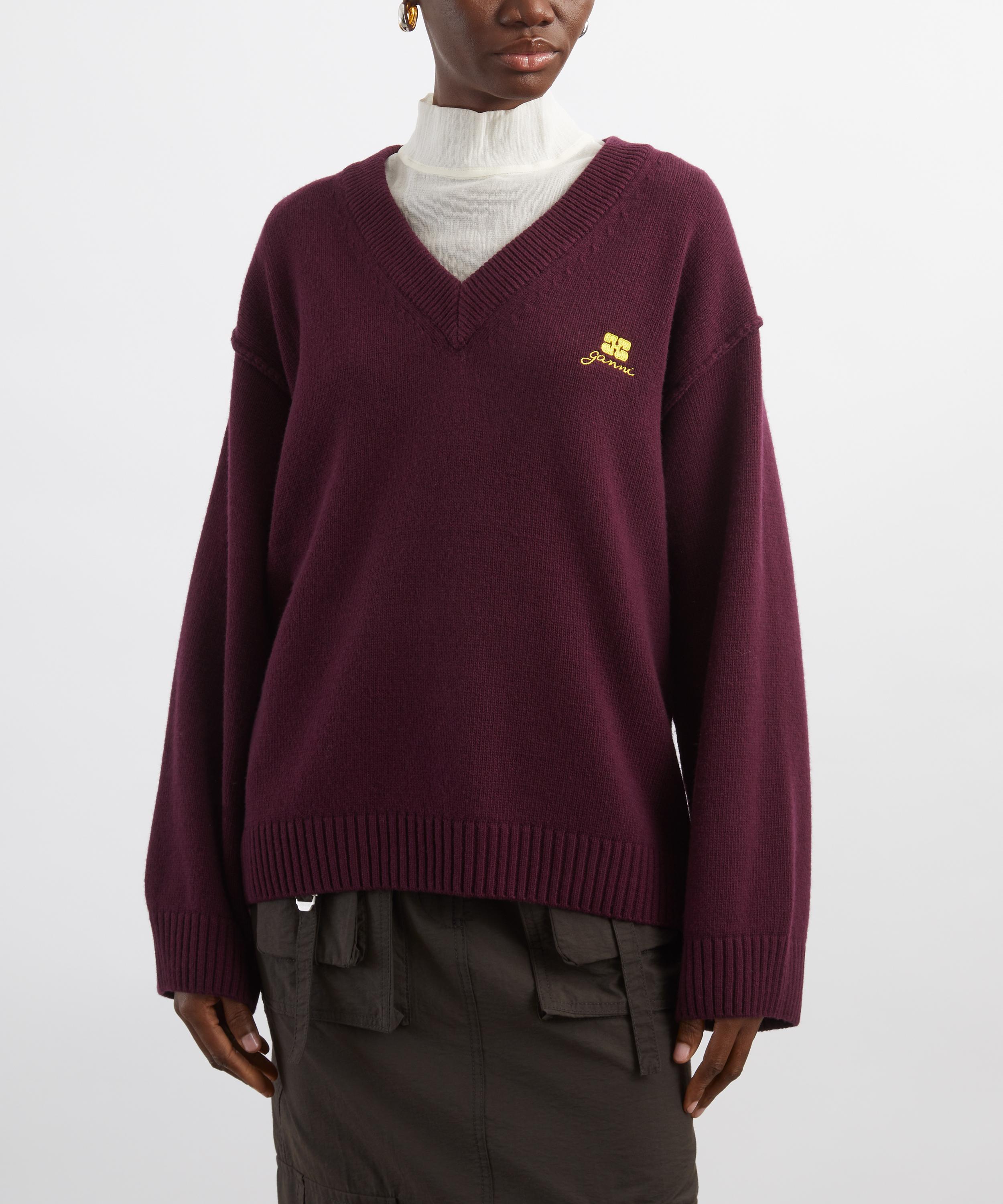 Staying true to the brand's coveted cool-girl image, the Burgundy Wool-Mix V-Neck Jumper from GANNI is a chic addition to your new season edit.