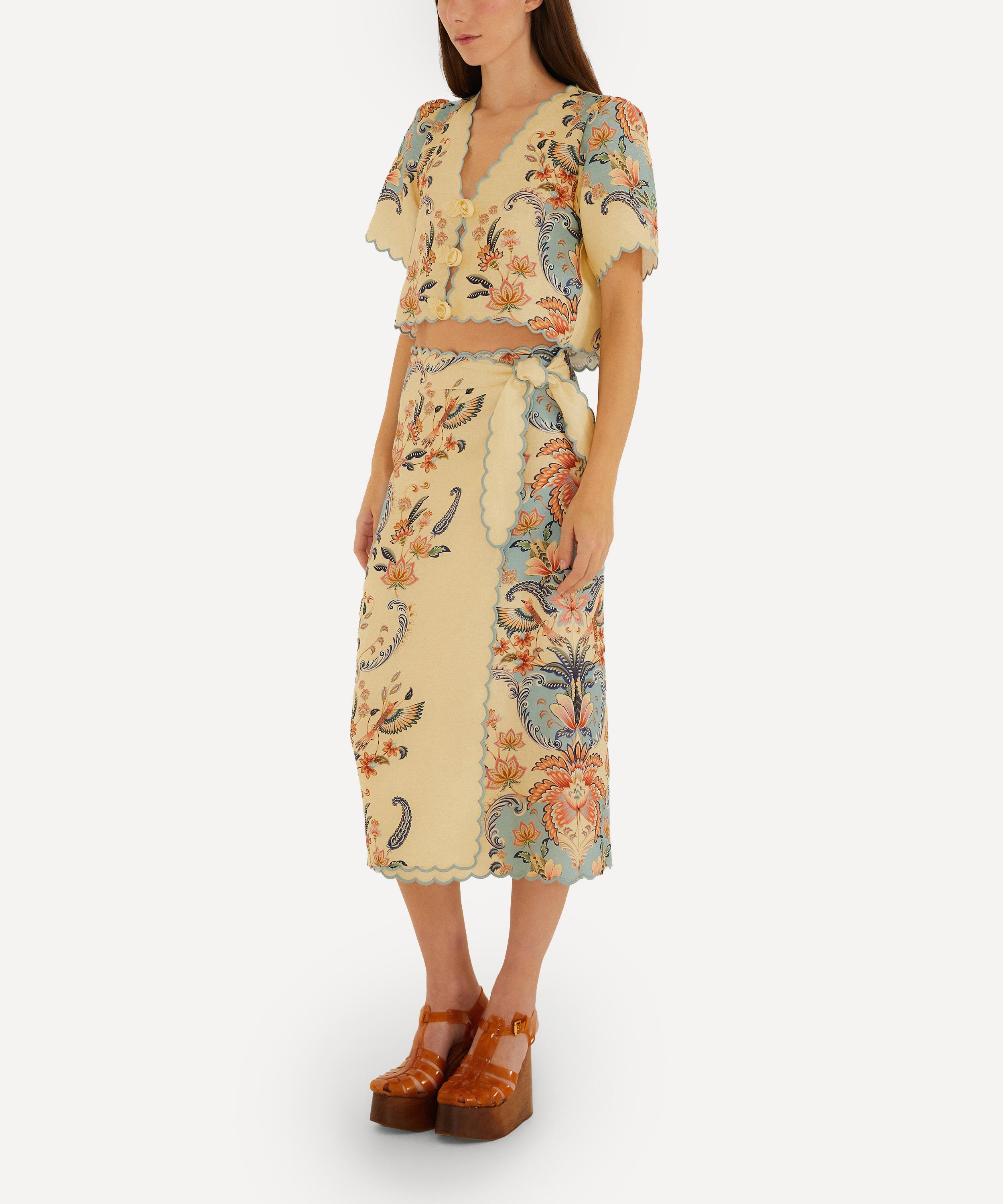 The Butter Yellow Boho Beauty Midi Skirt from Rio de Janeiro-based label FARM Rio brings some Brazilian vivacity to your new-season edit.