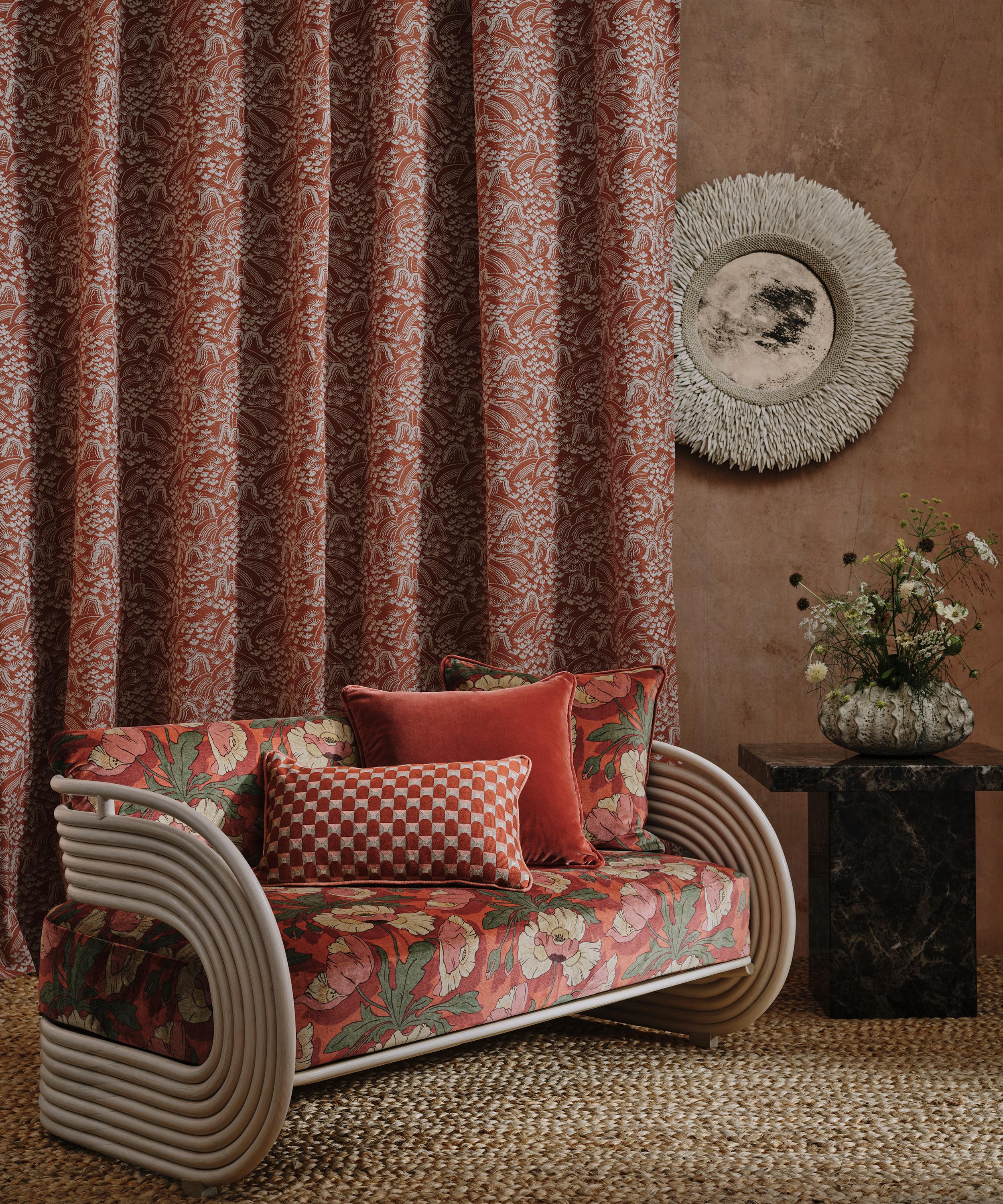 With the addition of a dramatic shadow to this playful poppy print, Butterfield is a quintessentially Liberty design. Printed on a rich sumptuous velvet, suitable for upholstery, drapery, cushions, and accessories.