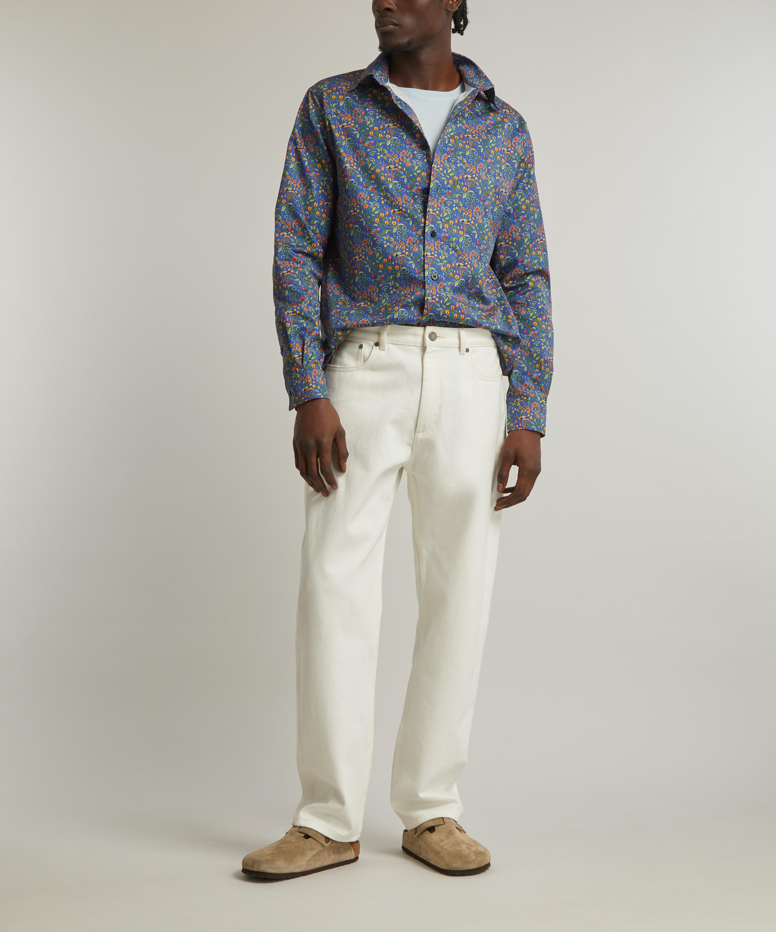 Printed in our very own cutting-edge Liberty fabric mill in northern Italy, it showcases Liberty’s Catesby print, depicting a lush tangle of botanicals, dotted with plumed songbirds caught mid-twitter. For your off-duty edit, layer the long-sleeved shirt over a boxy white tee with shorts and sneakers, or elevate with suit trousers and a jacket for a classic look.