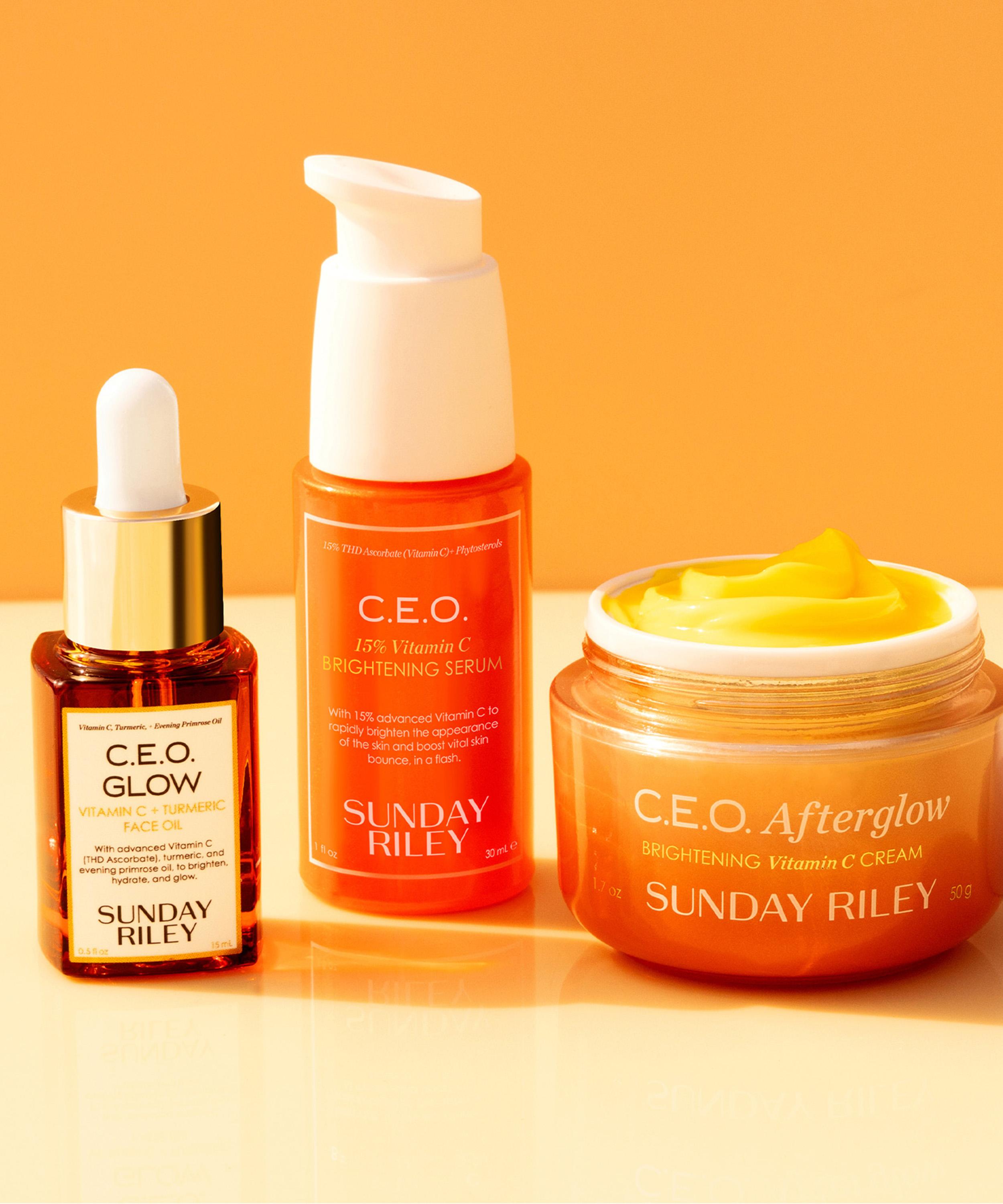 C.E.O Glow Vitamin C and Turmeric Face Oil from Sunday Riley recharges the radiance of skin, revealing a luminous complexion.