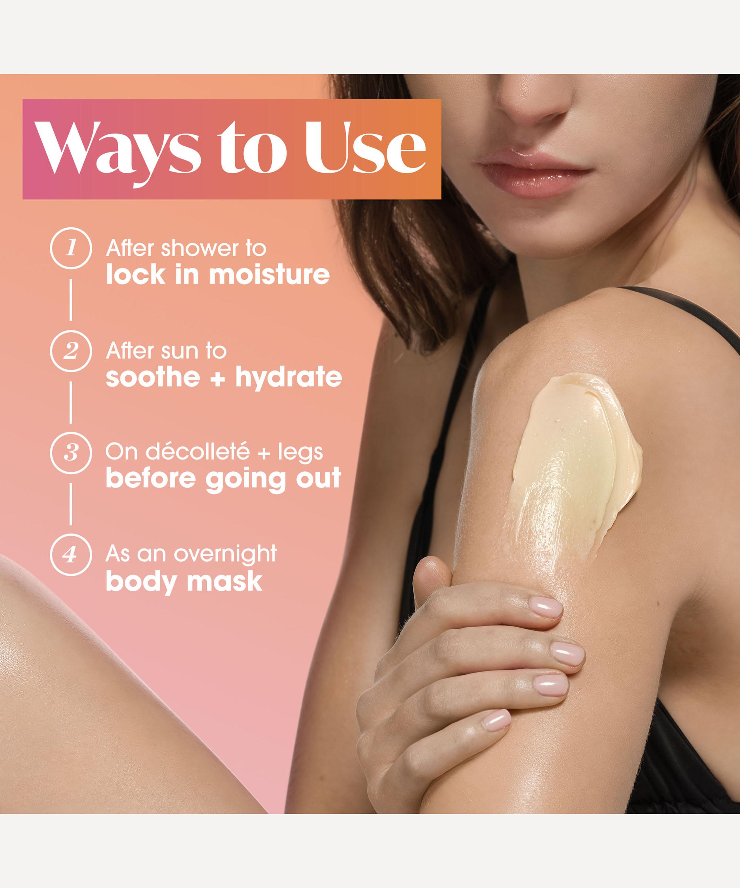 Apply generously, throughout the day, to keep your body hydrated and silky-smooth.