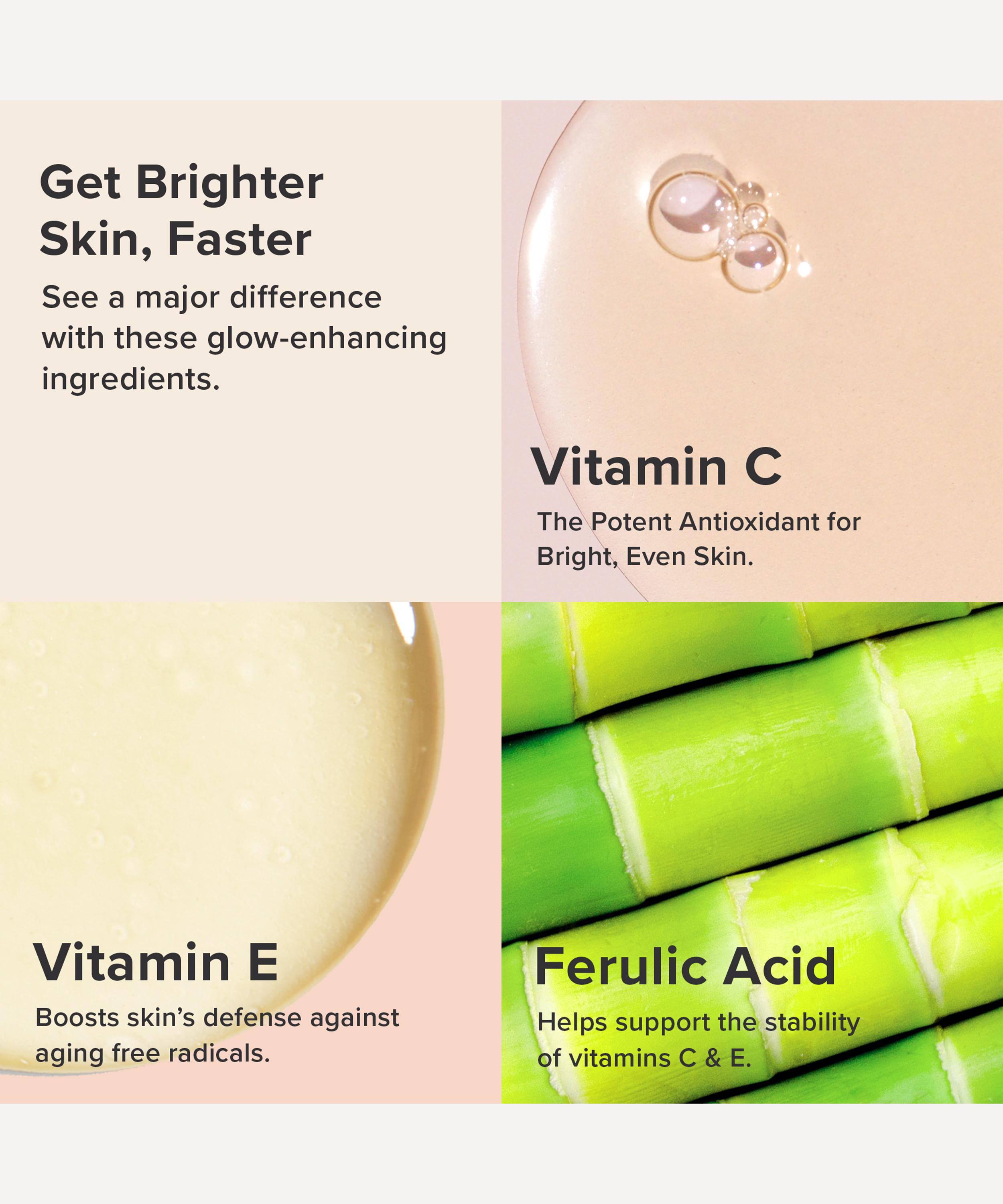 Infused with 15% vitamin C, this antioxidant-rich solution harnesses skin-soothing benefits and brightening properties. An additional blend of vitamin E and ferulic acid helps restore your skin and defend it from free radicals, while fading browns spots caused by environmental damage - leaving your complexion looking smoother and firmer with a healthy-looking glow.