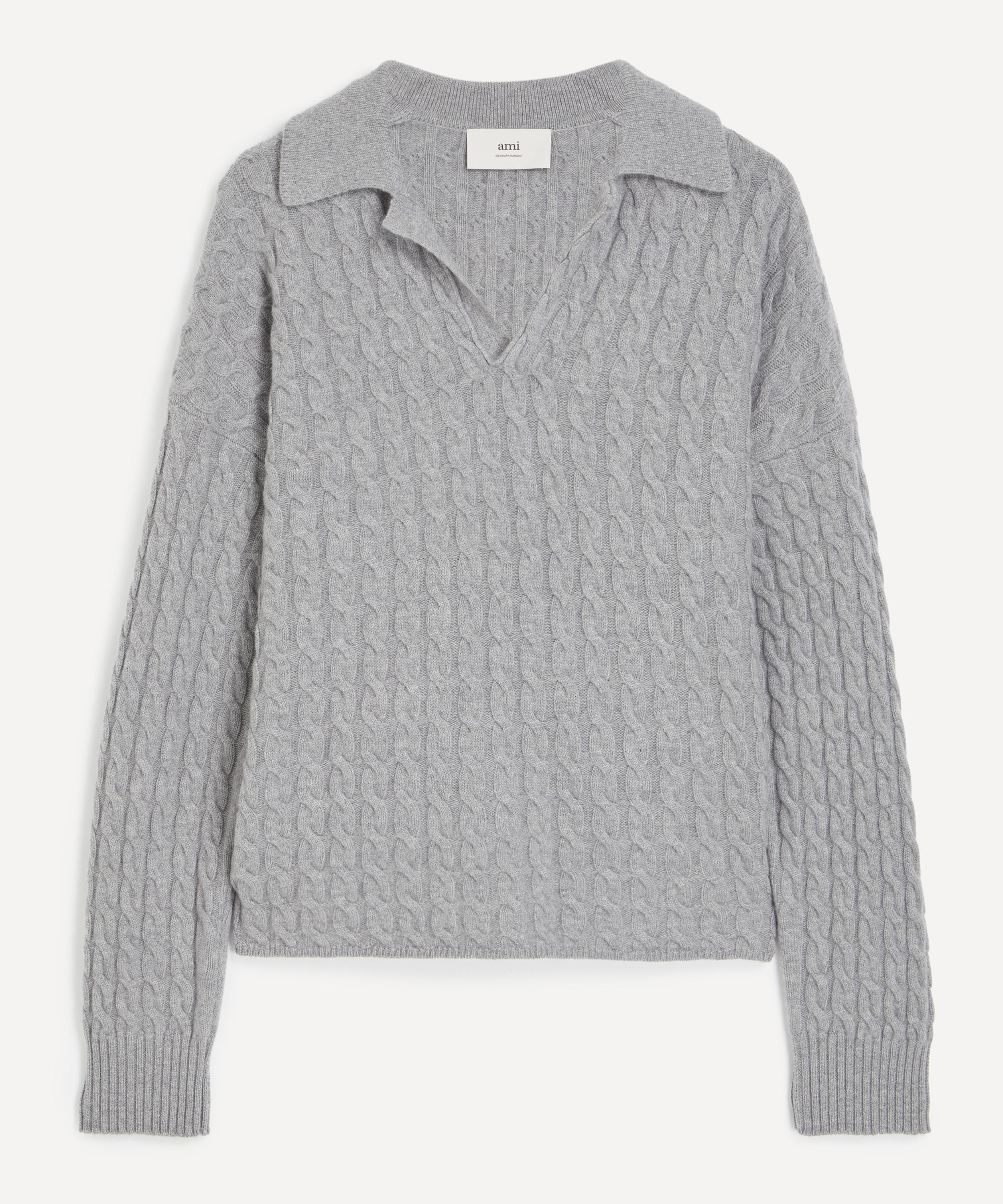Ami’s cable knit sweater brings traditional elegance to your winter wardrobe.