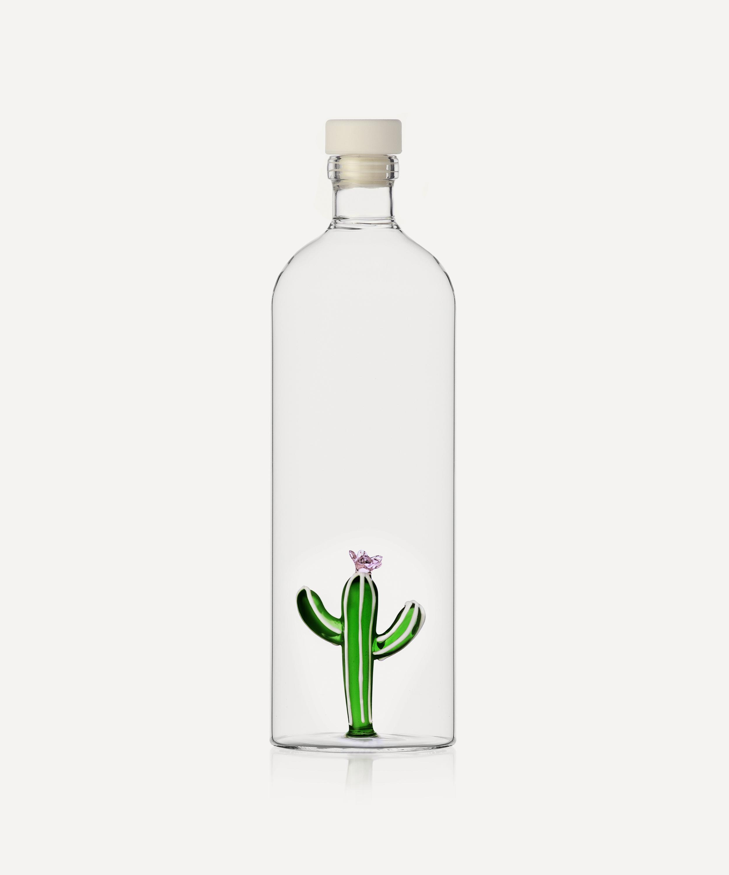 The Cactus bottle with lid from Ichendorf is a contemporary yet classic addition to any glassware collection. Hand-made and flame-worked in Italy, this charming glass bottle features a sleek silhouette and is decorated with a stylised cactus motif. Perfect for gifting, it can be used to hold beverages or oils of your choice.