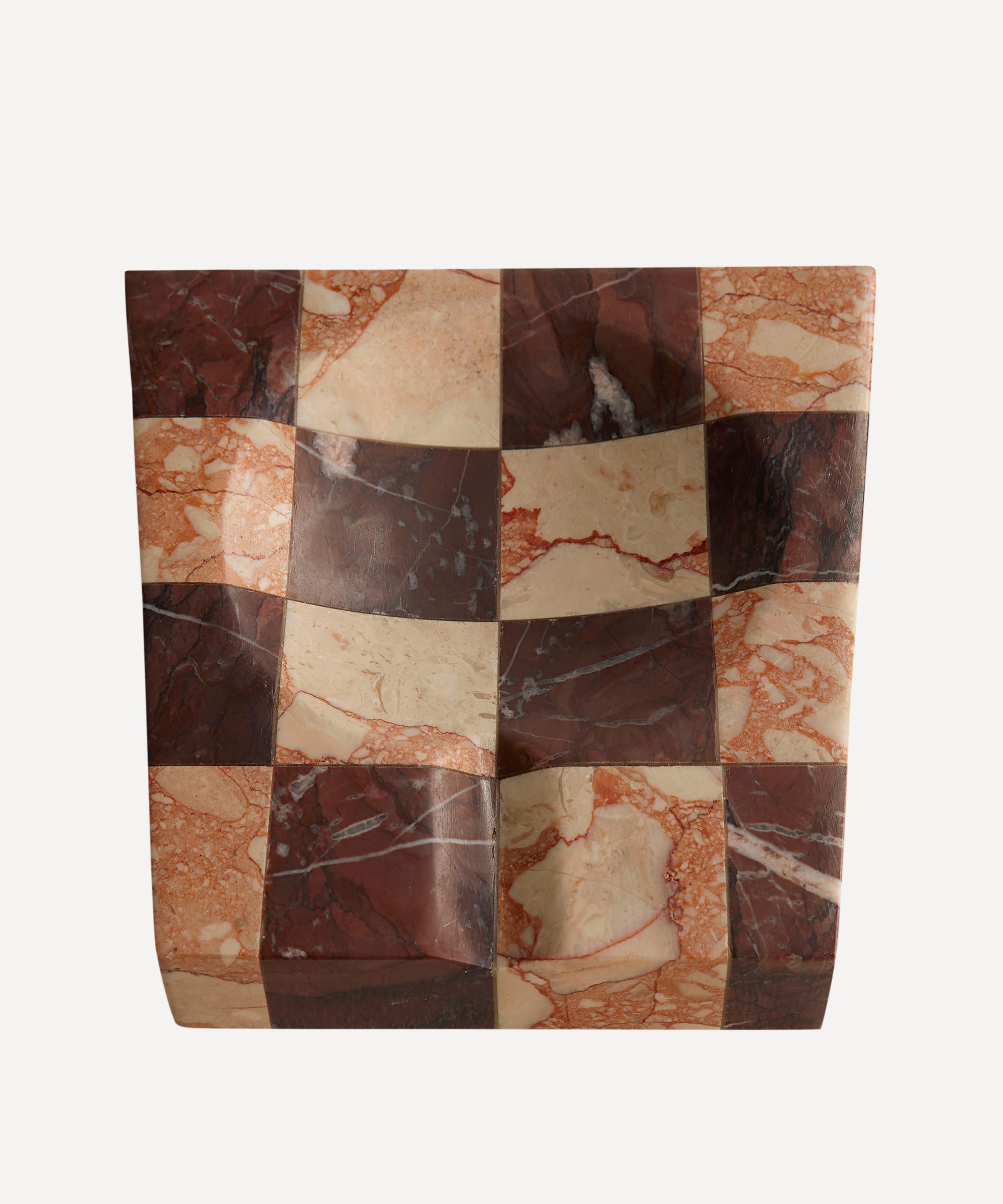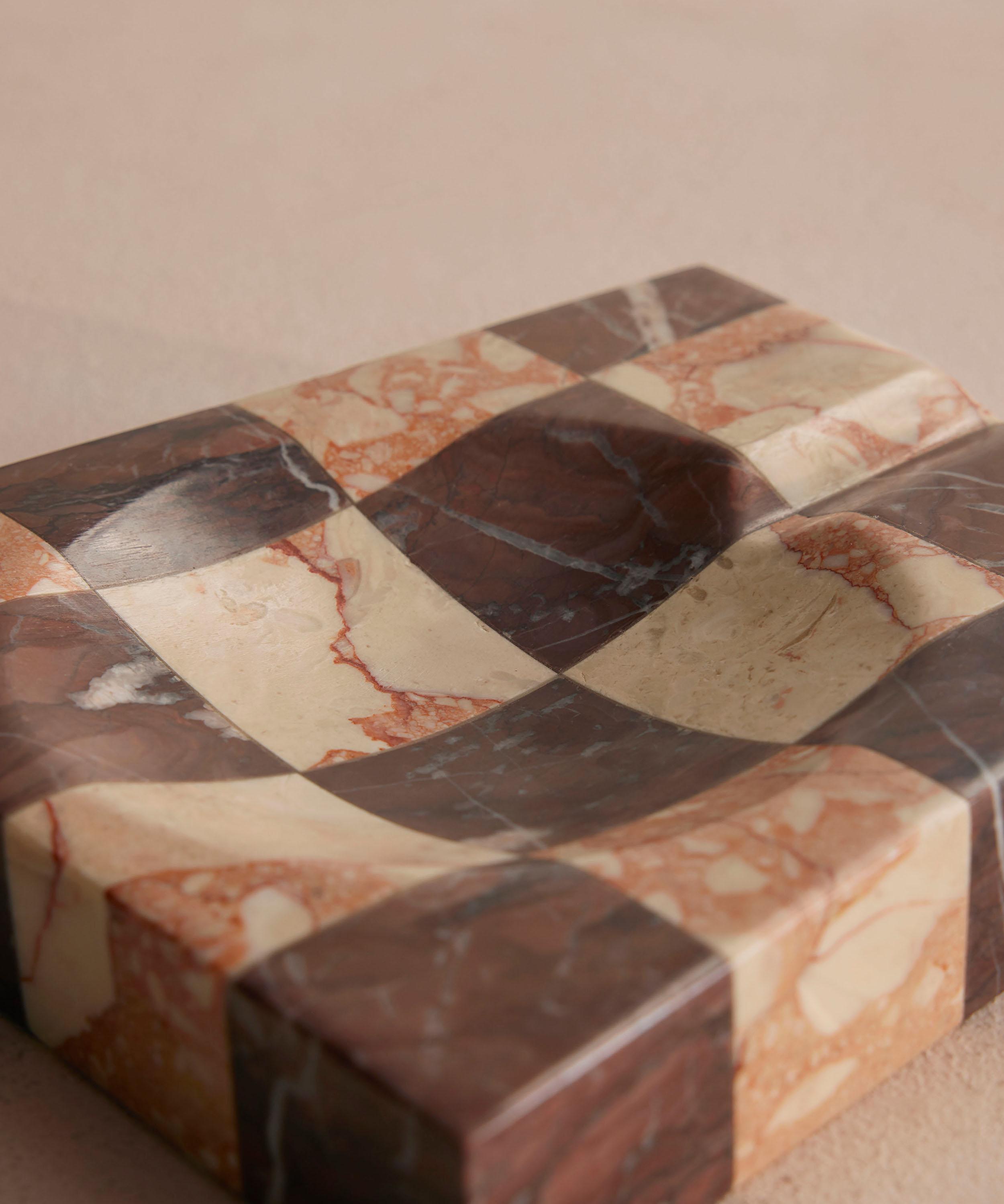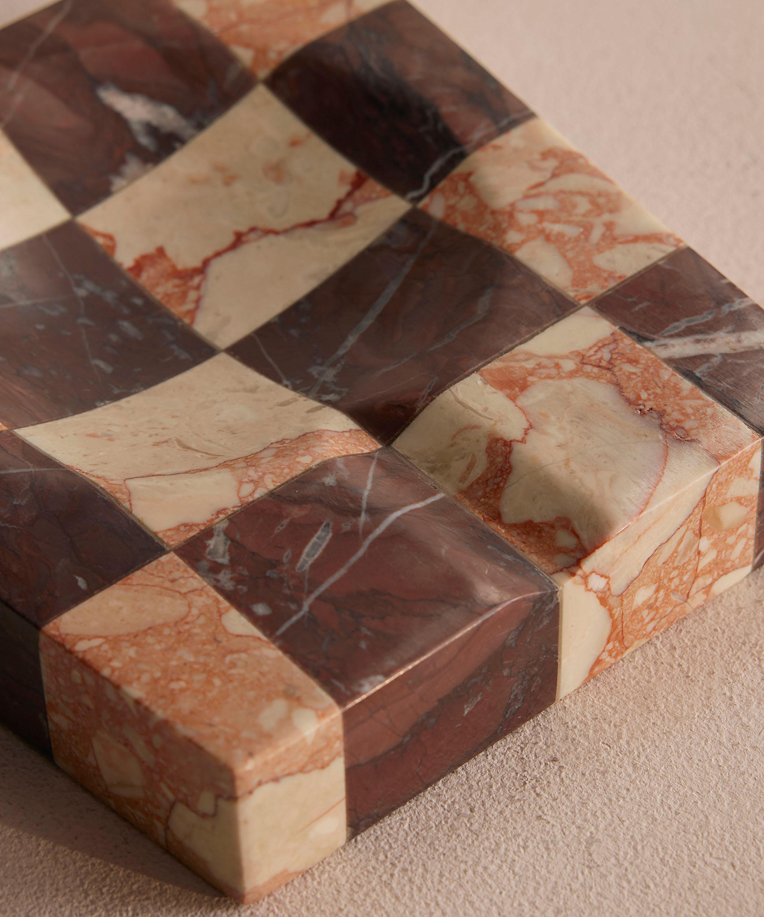 This elegant ashtray is crafted from tonal pieces of solid Rosso Levanto and Breccia Pernice marble create a chequerboard pattern. Ideal for elevating your dressing table or mantlepiece alike with its strikingly sleek design and tonal variations.