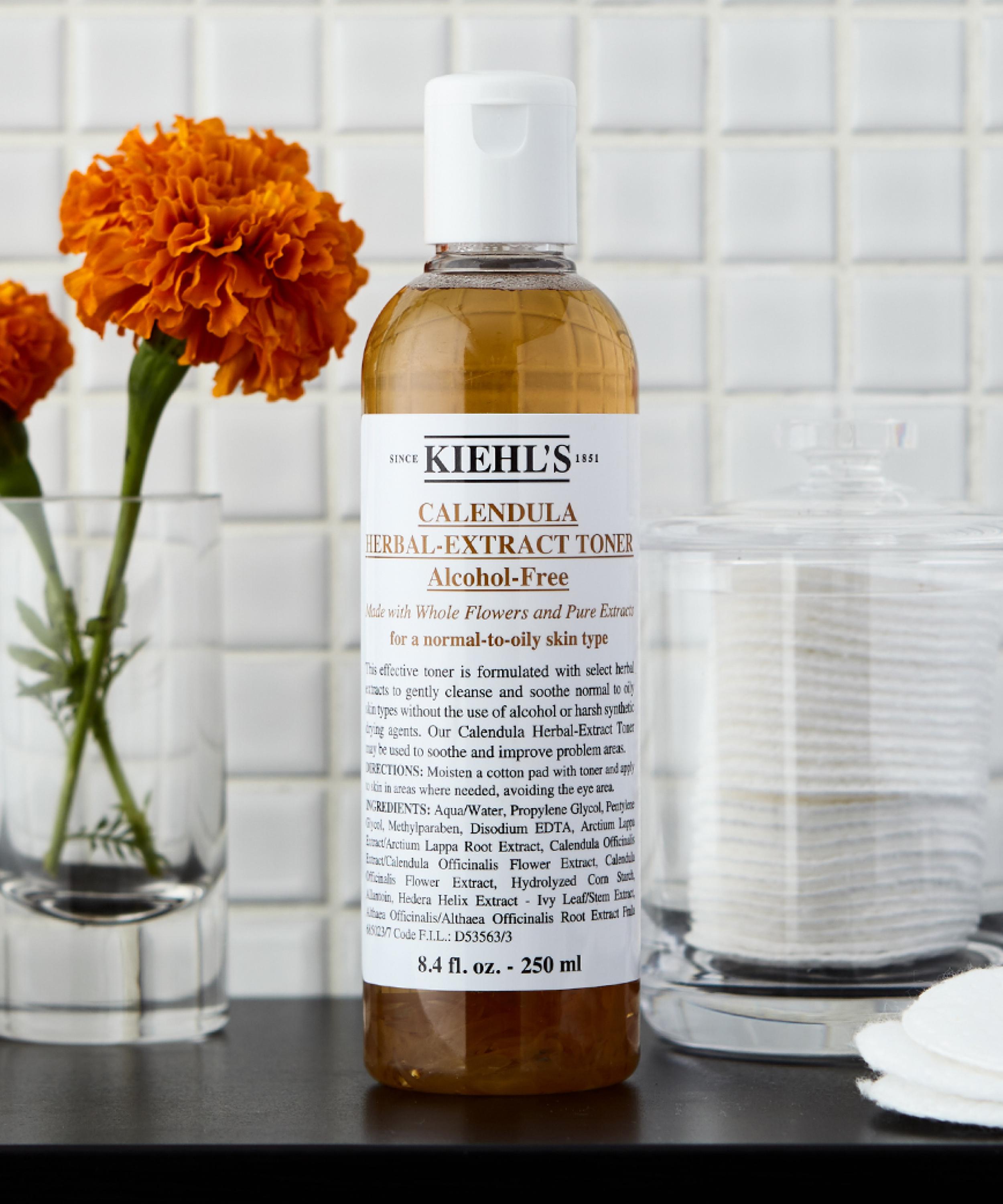 Kiehl's Calendula Herbal-Extract Toner is a natural, alcohol-free solution formulated with calendula flower petals for a soothing, skin-refining effect.