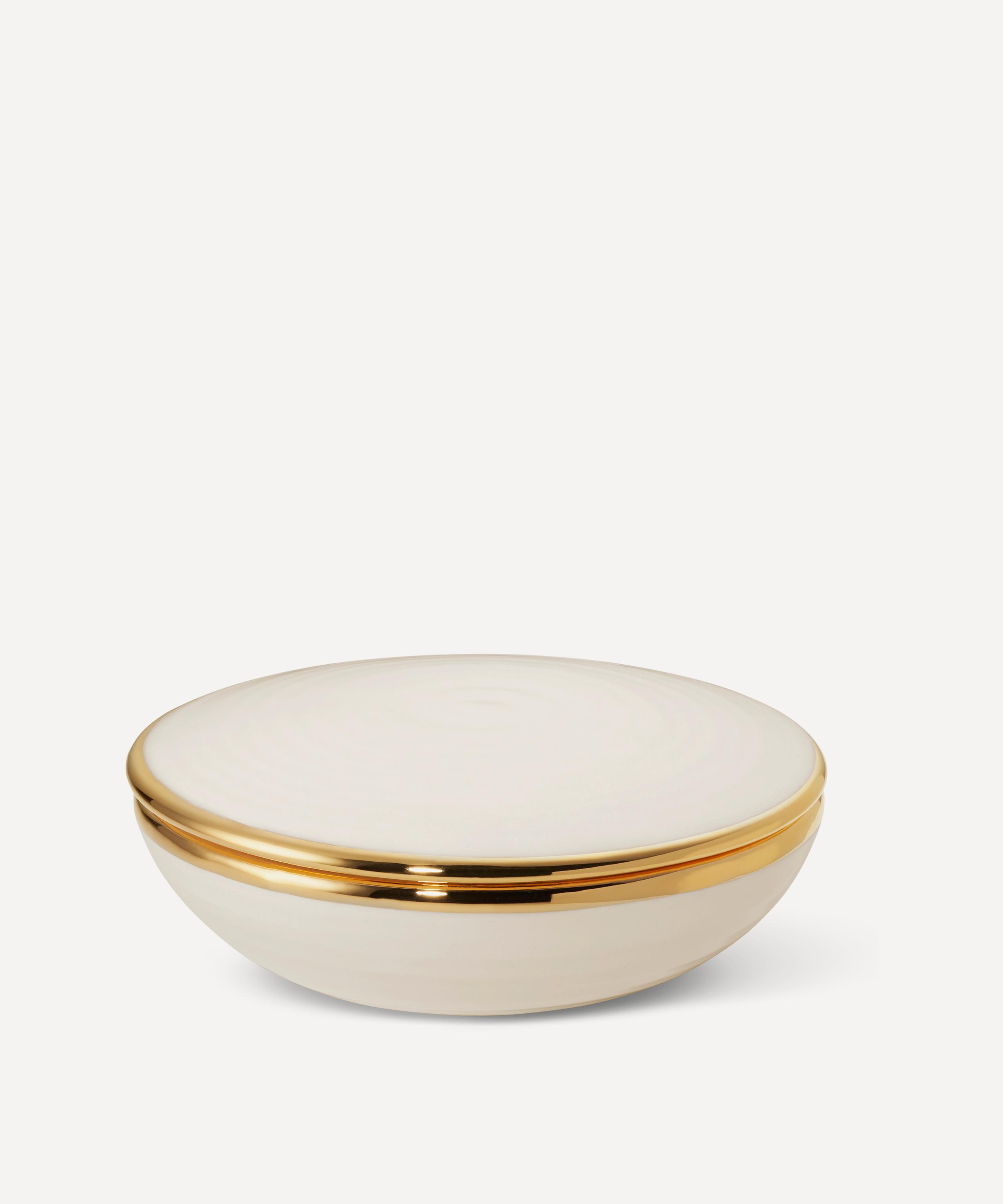 A product of AERIN’s artisanal craftsmanship, the Calinda box is hand-thrown from ceramics and showcases a natural, textured appearance – achieved through a distinctive glazing technique – and is further enhanced with hand-painted gold trims. Keep your jewellery or small personal items organised in style by placing it on your desk or dresser.