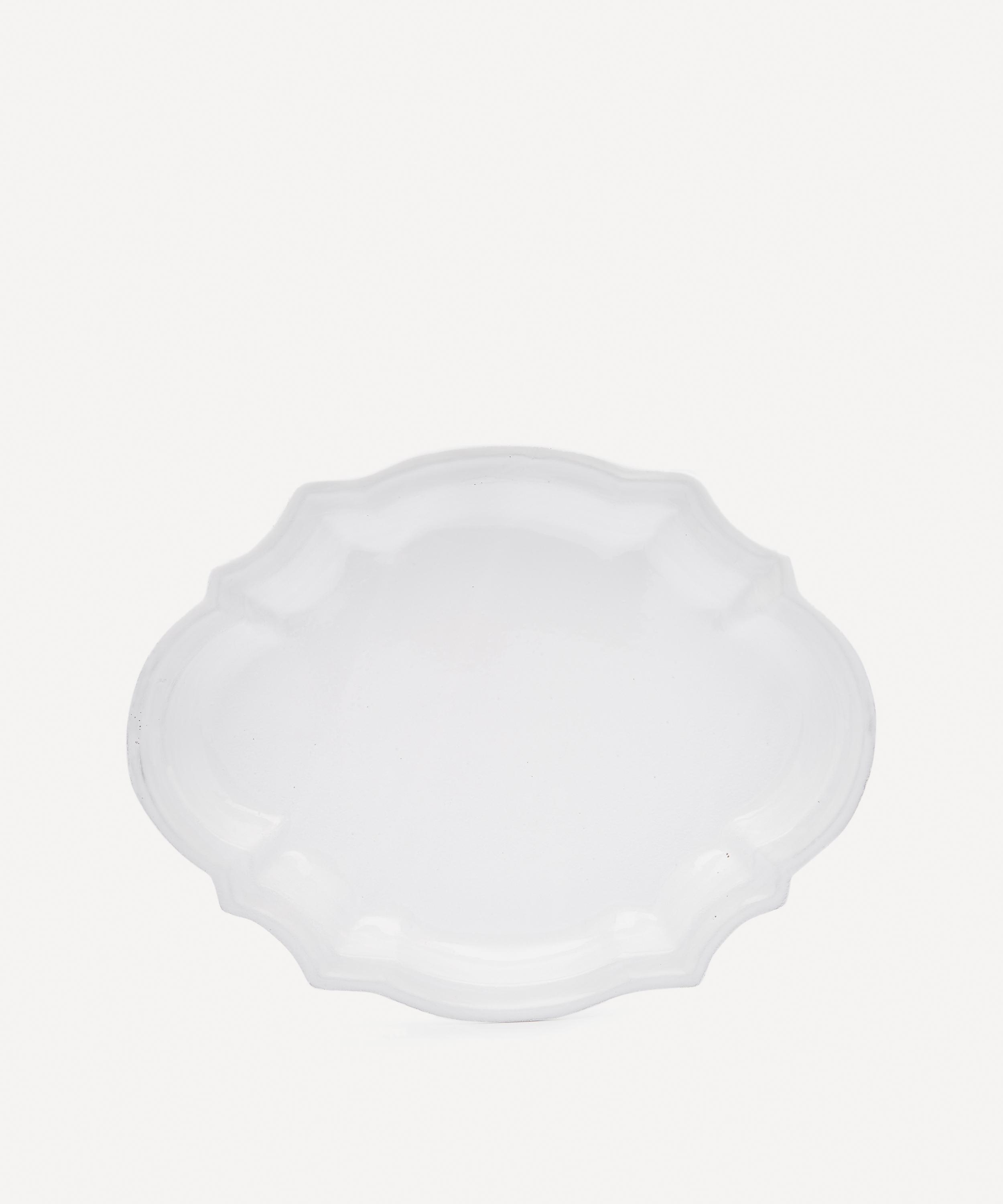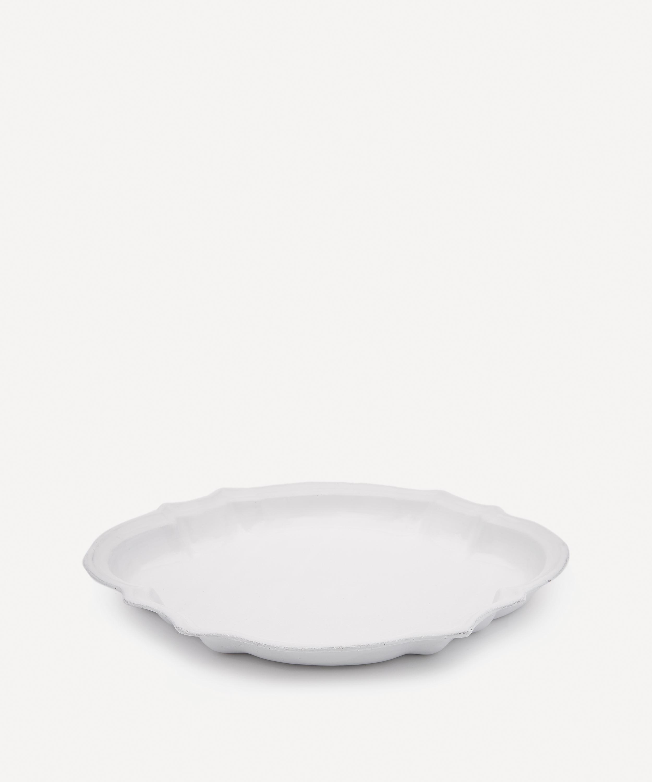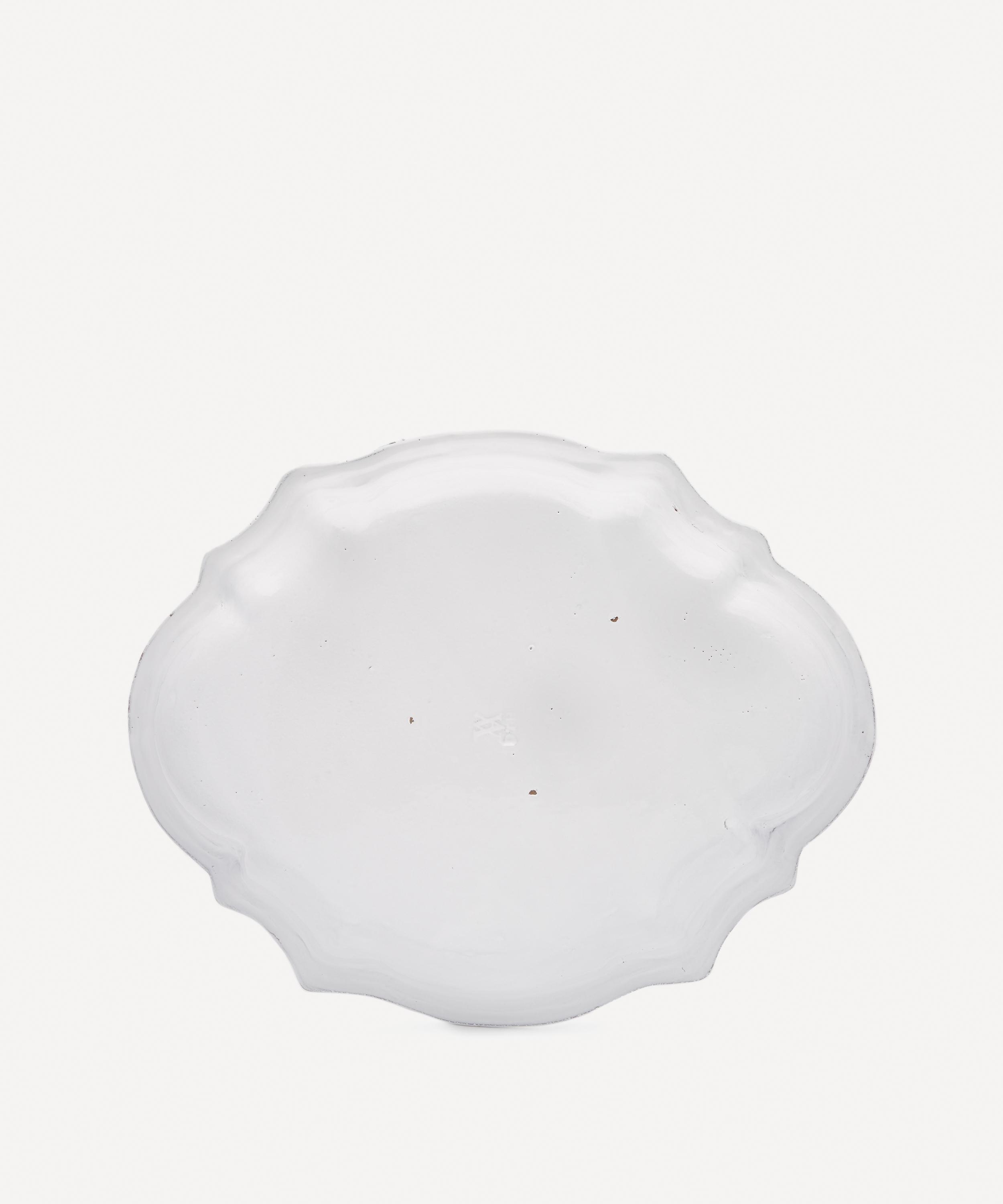Votary of pre-industrial fabrication, Astier de Villatte is celebrated for being the one and only studio in Paris to hold and harbour the traditions of artisanal ceramic production. Restoring the ancestral systems of moulding and stamping, the Cambridge platter is made using handcrafting techniques from the Middle Ages which involve moulding a handmade sheet of clay, double firing the ‘biscuit’ piece and glazing the product in white enamel – a lengthy process that requires a drying time of up to one month. Characterised by an opulent rim, the decorative platter is engraved with the brand’s signature crest - depicting an interlacing A & V - alongside the initials of one of the 40 master artisans who created the glazed platter. Each handmade piece tells a beautiful story, it romances and imparts a sense of nostalgia into its owner. Arrange with other serveware in the collection to breathe an air of authenticity into your table setting.
