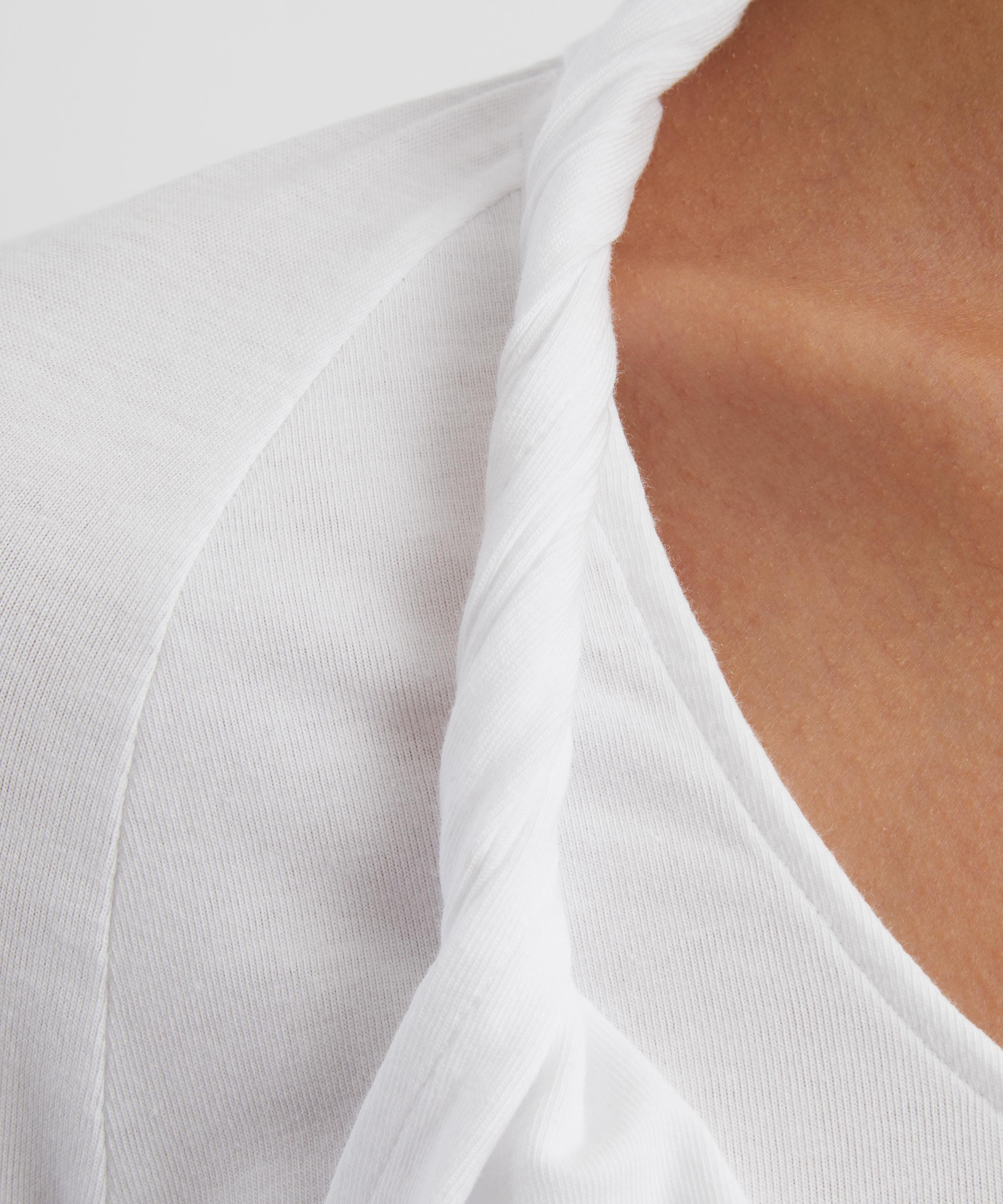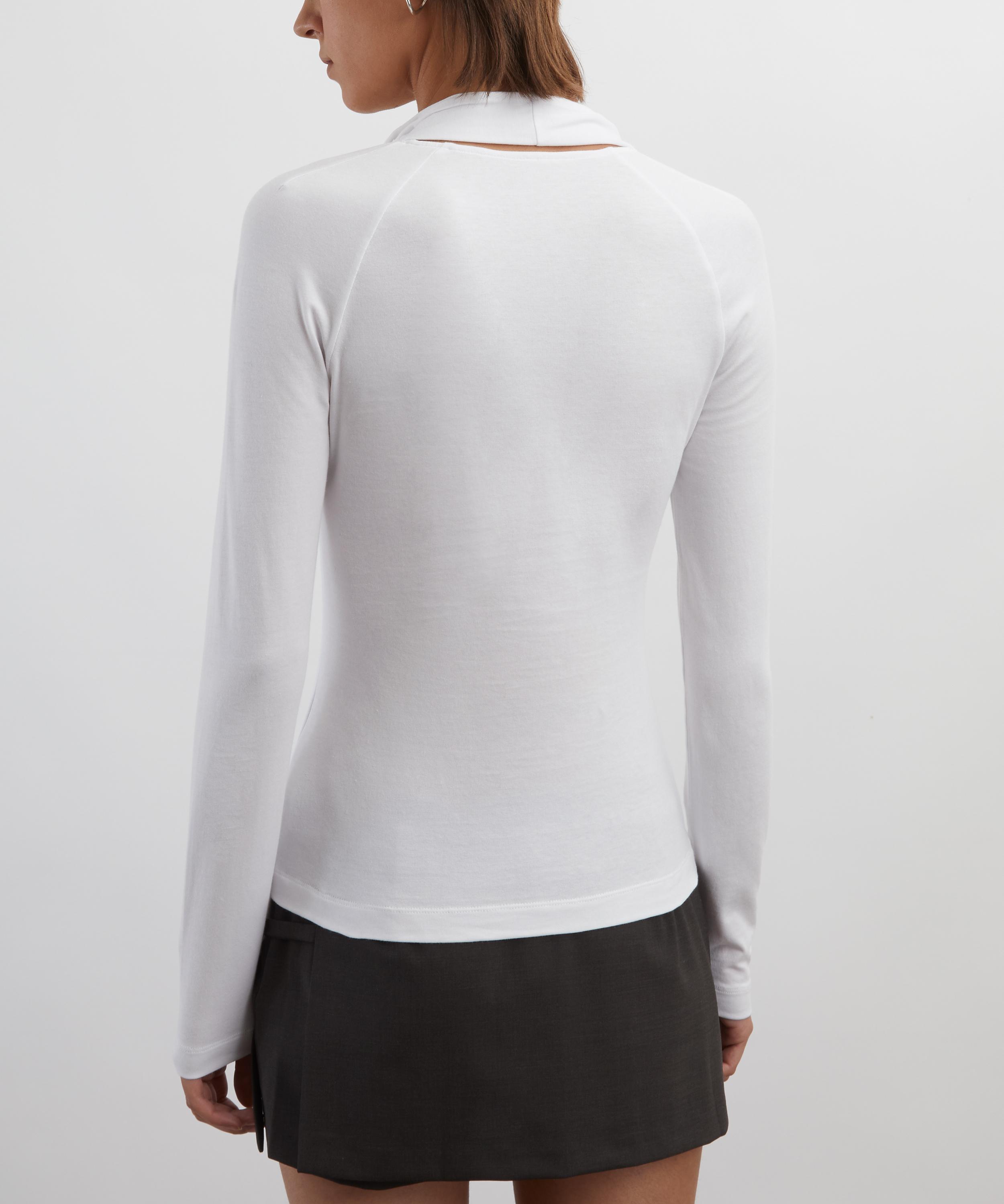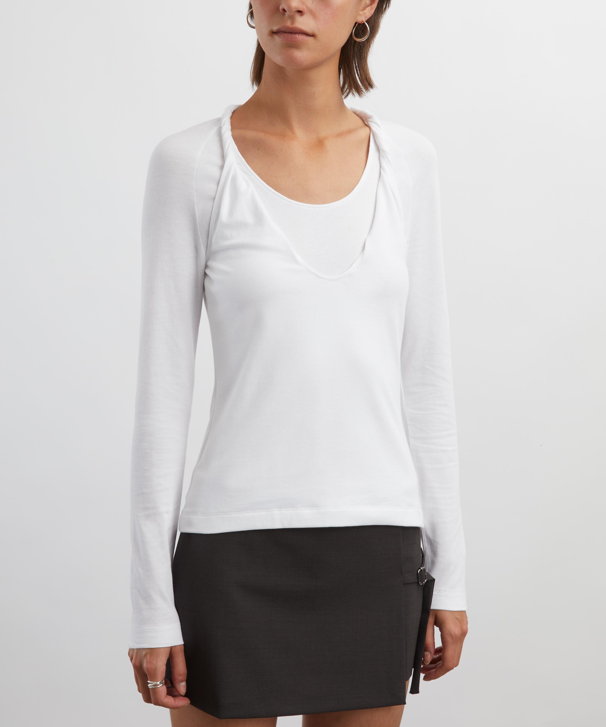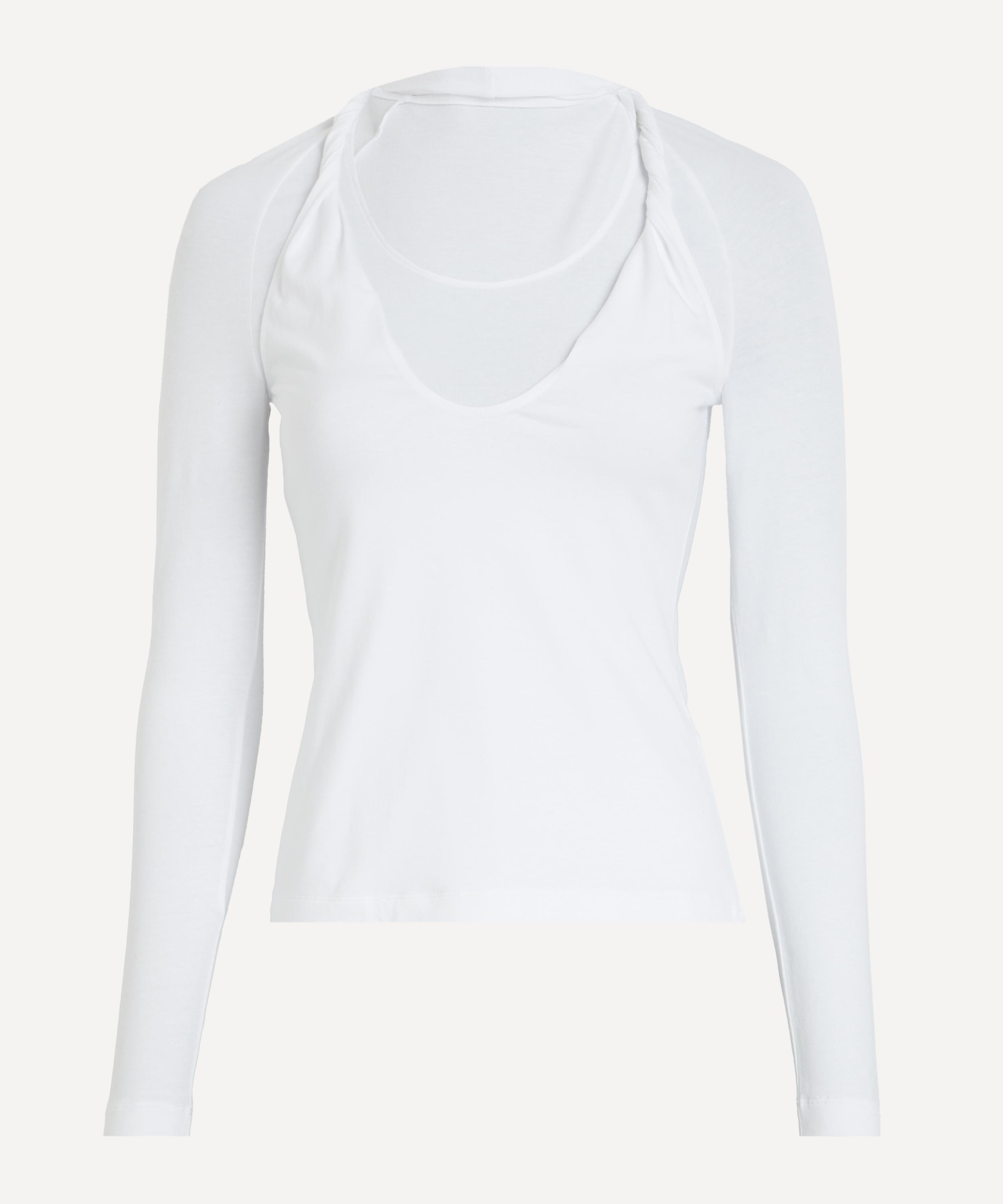 Made from soft, stretchy cotton with an opaque finish, this long sleeve top features a layered which pairs a fitted, low-cut base with a twisted-strap overlay for a modern, dimensional look.