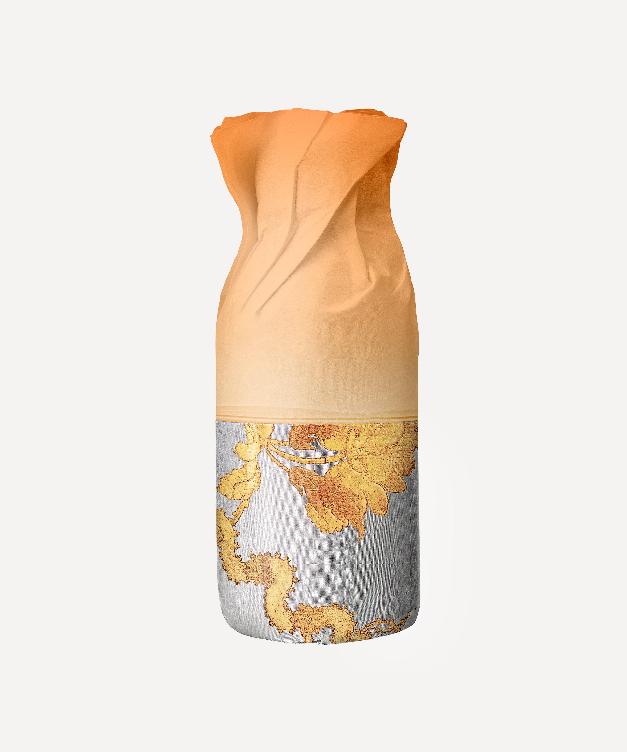- Housed in a milky glass bottle with an antiqued silver cap, a powder pink top and a base of gold brocade-inspired patterns