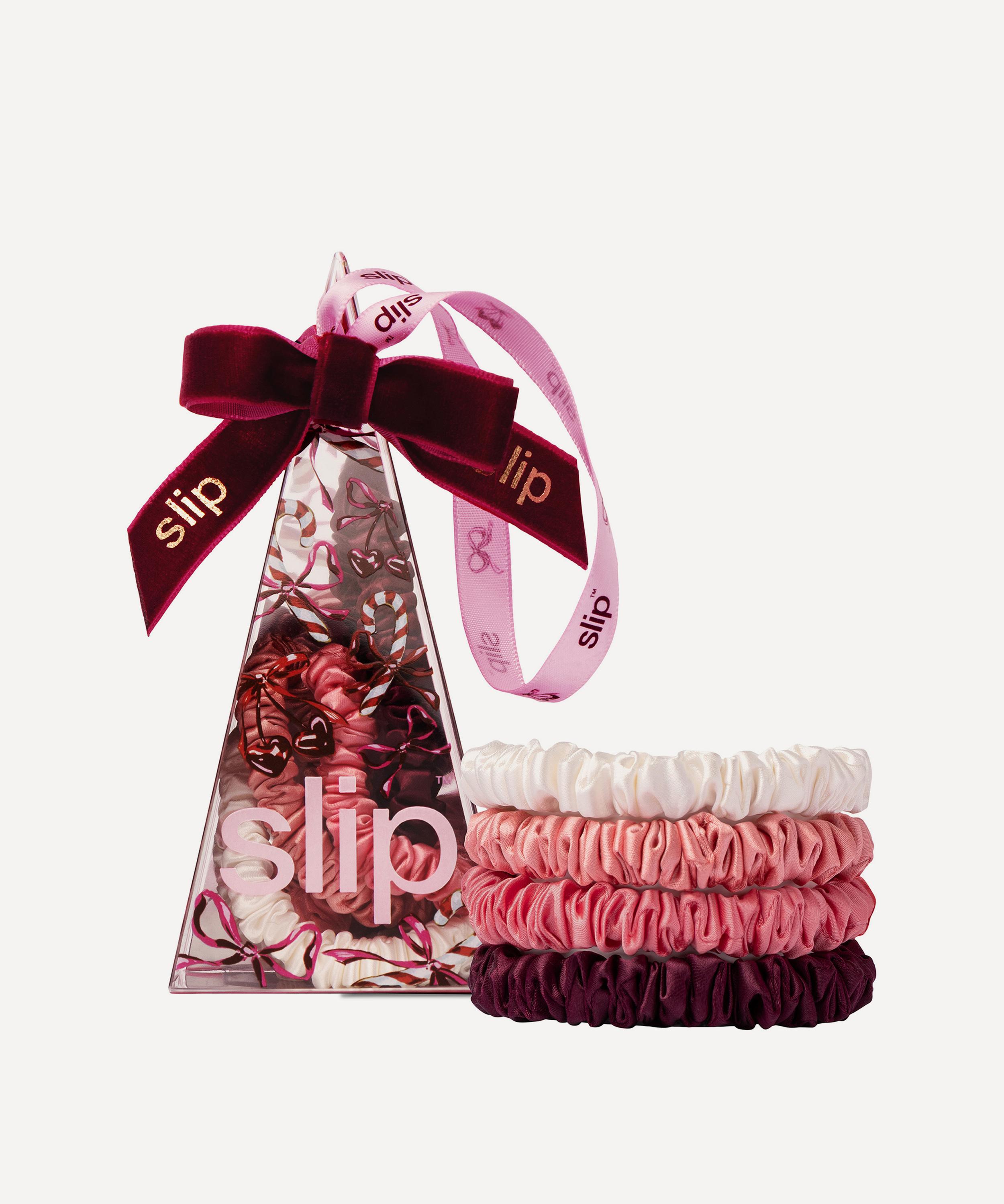 The ideal gift for the hair obsessed, the Skinny Scrunchie Ornament in Candy Cane works perfectly as a stocking alternative – comprised of four slipsilk scrunchies adorned in a wintery colour palette for the merry season.