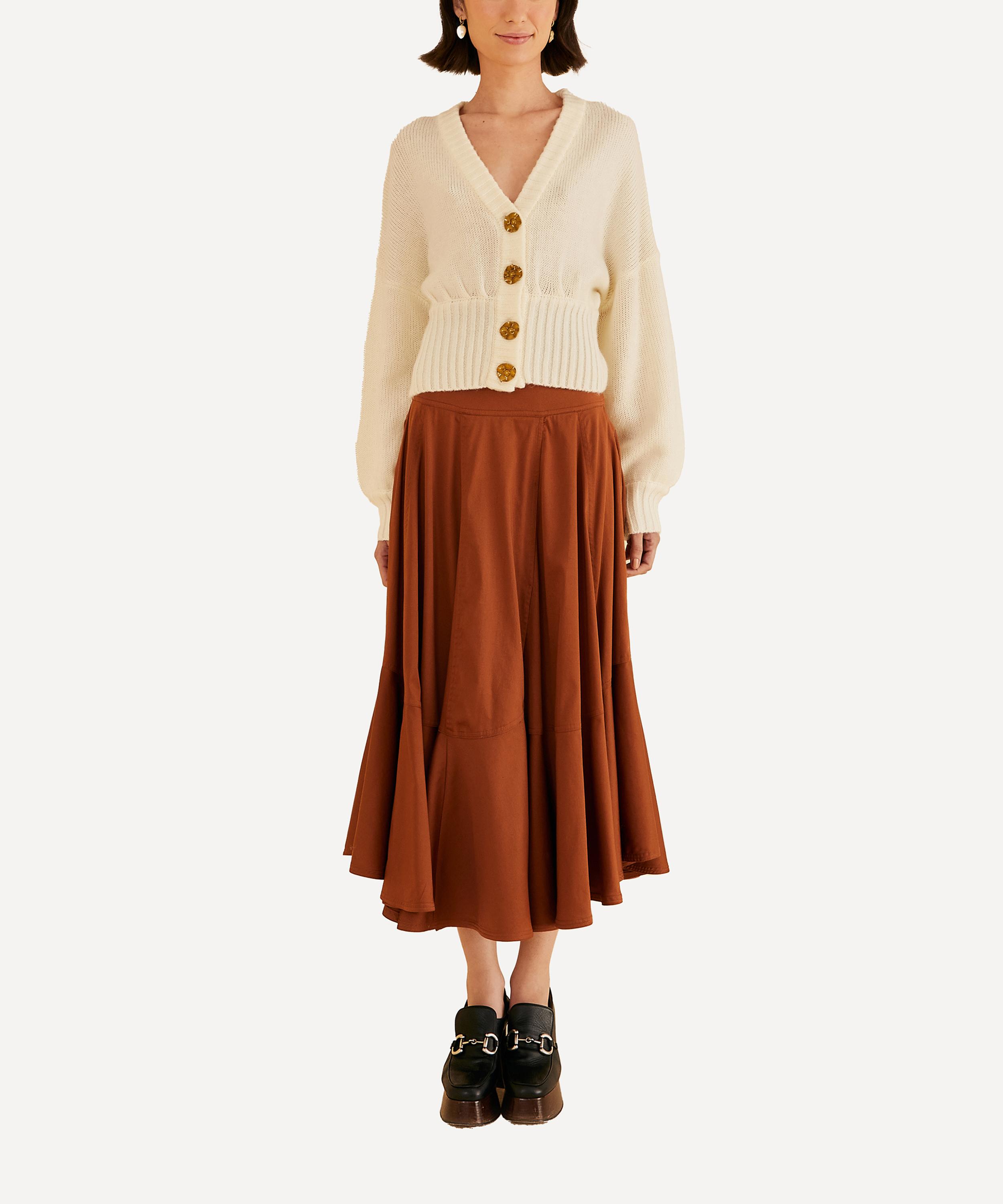 The Caramel Ruffled Maxi-Skirt from Rio de Janeiro-based label FARM Rio brings some Brazilian vivacity to your new-season edit.
