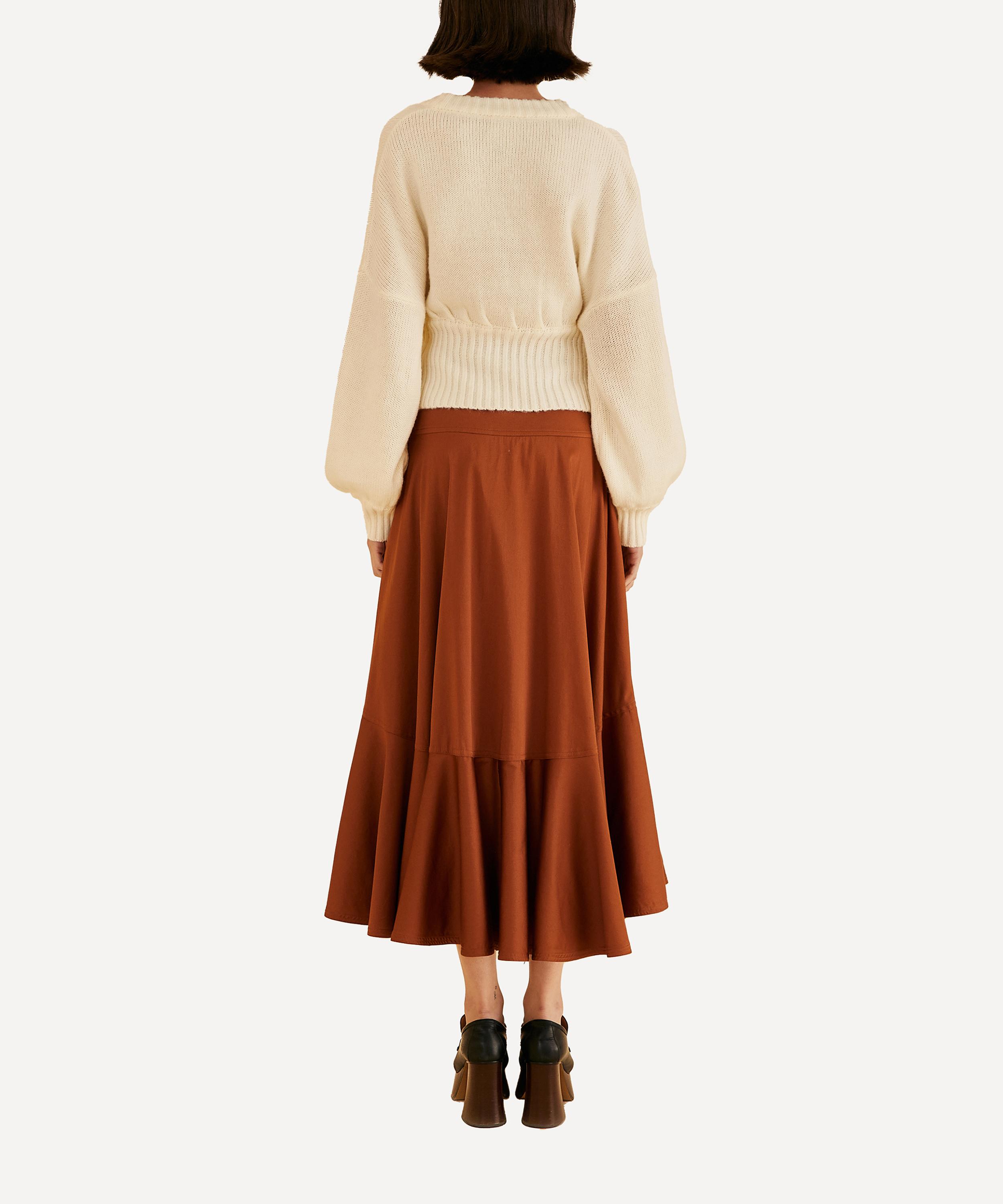 Crafted from a breezy cotton-blend, this elegant and easy-to-wear maxi-skirt is a wardrobe essential with its timeless A-line silhouette and free-flowing, ruffled hem.