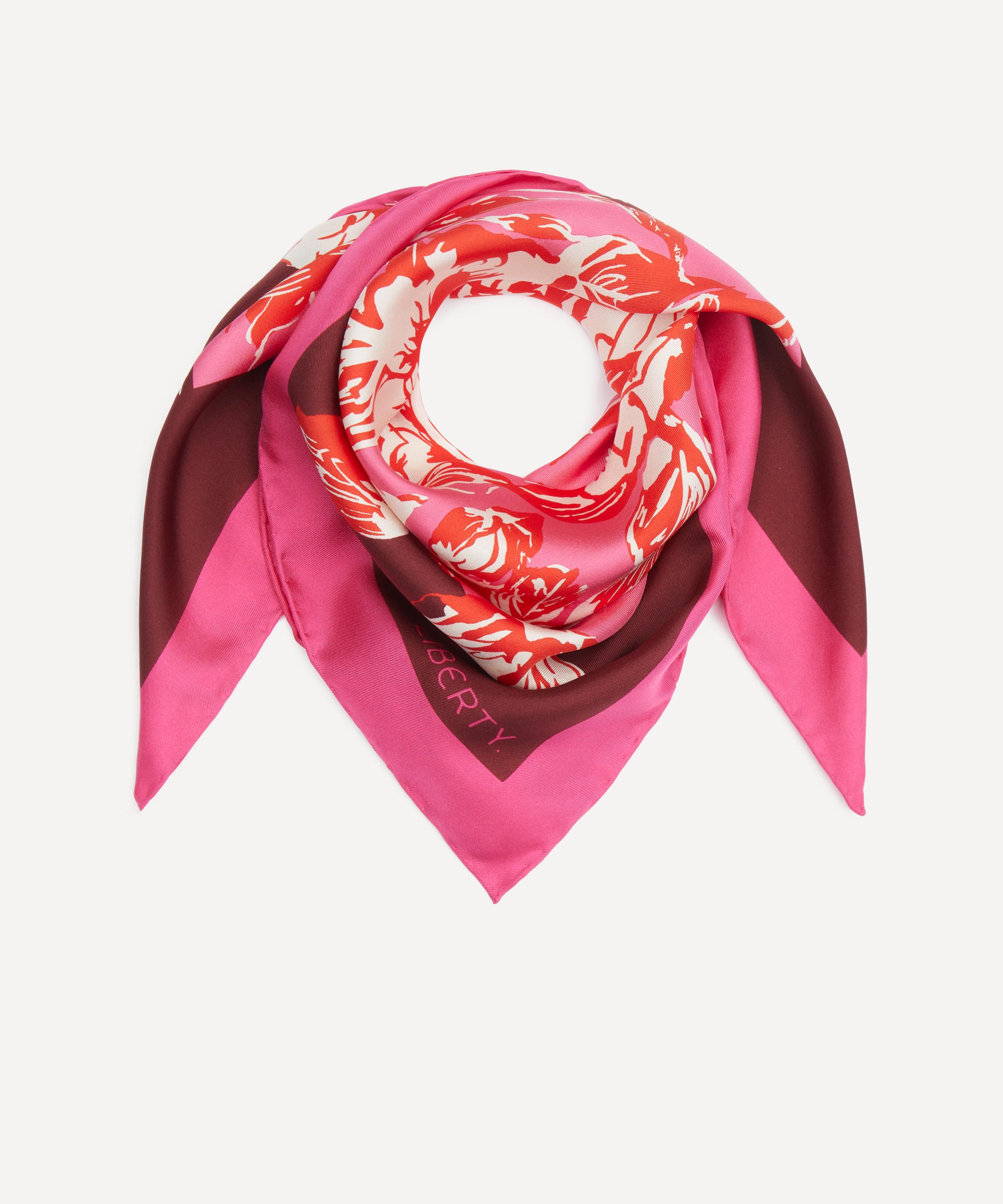 Transform your outfit with the vibrant Carline Bloom scarf from Liberty for a pop of colour and print. Meticulously crafted from an ultra-soft silk with hand-rolled hems, it features our iconic Carline Bloom print – boasting a striking bouquet of large-scale roses inspired by vintage 1950s floral designs. Designed to stand the test of time, this versatile accessory will be part of your collection for years to come. Try draping it over neutral outerwear for an elevated finishing touch, or knot it close to the neck to lock in warmth.