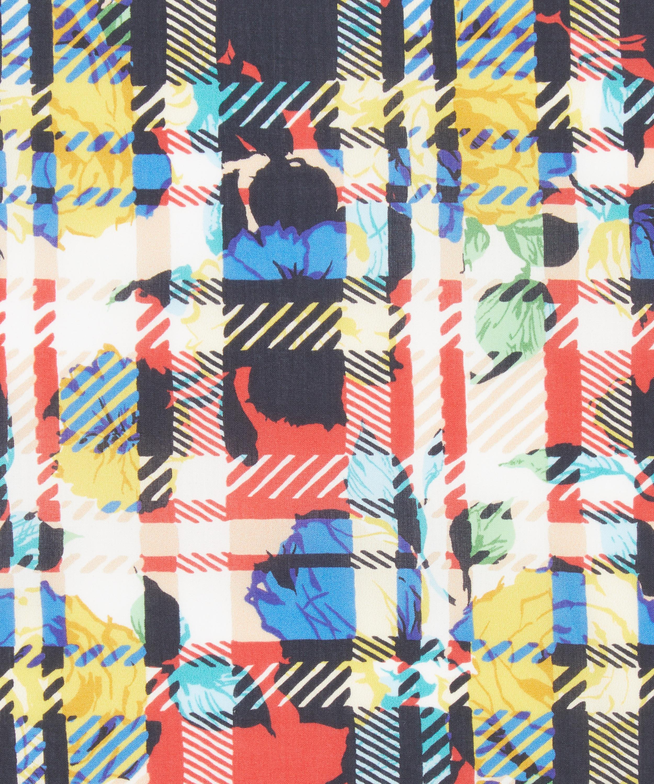 Carline Rebel is a daring interpretation of an archival classic, Carline. Initially drawn in the 1990s, this design weaves the round, bold forms of vintage 1950s roses with a contemporary plaid layer. Embodying a spirited clash of tradition and modernity, Carline Rebel reflects an anarchist take on fashion.