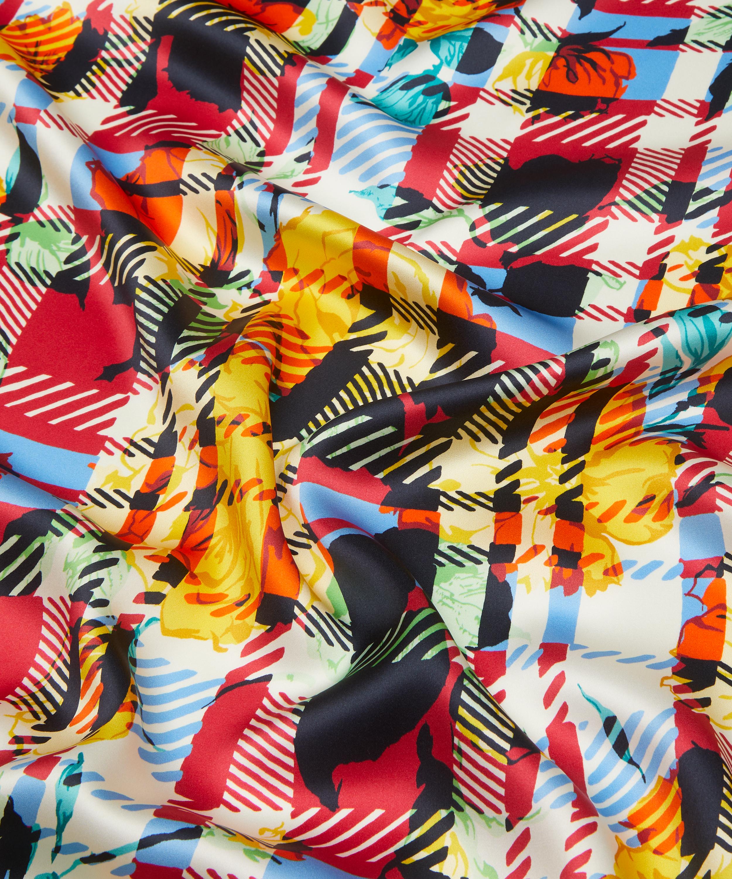 Carline Tartan is a daring interpretation of an archival classic, Carline. Initially drawn in the 1990s, this design weaves the round, bold forms of vintage 1950s roses with a contemporary plaid layer. Embodying a spirited clash of tradition and modernity, Carline Rebel reflects an anarchist take on fashion.