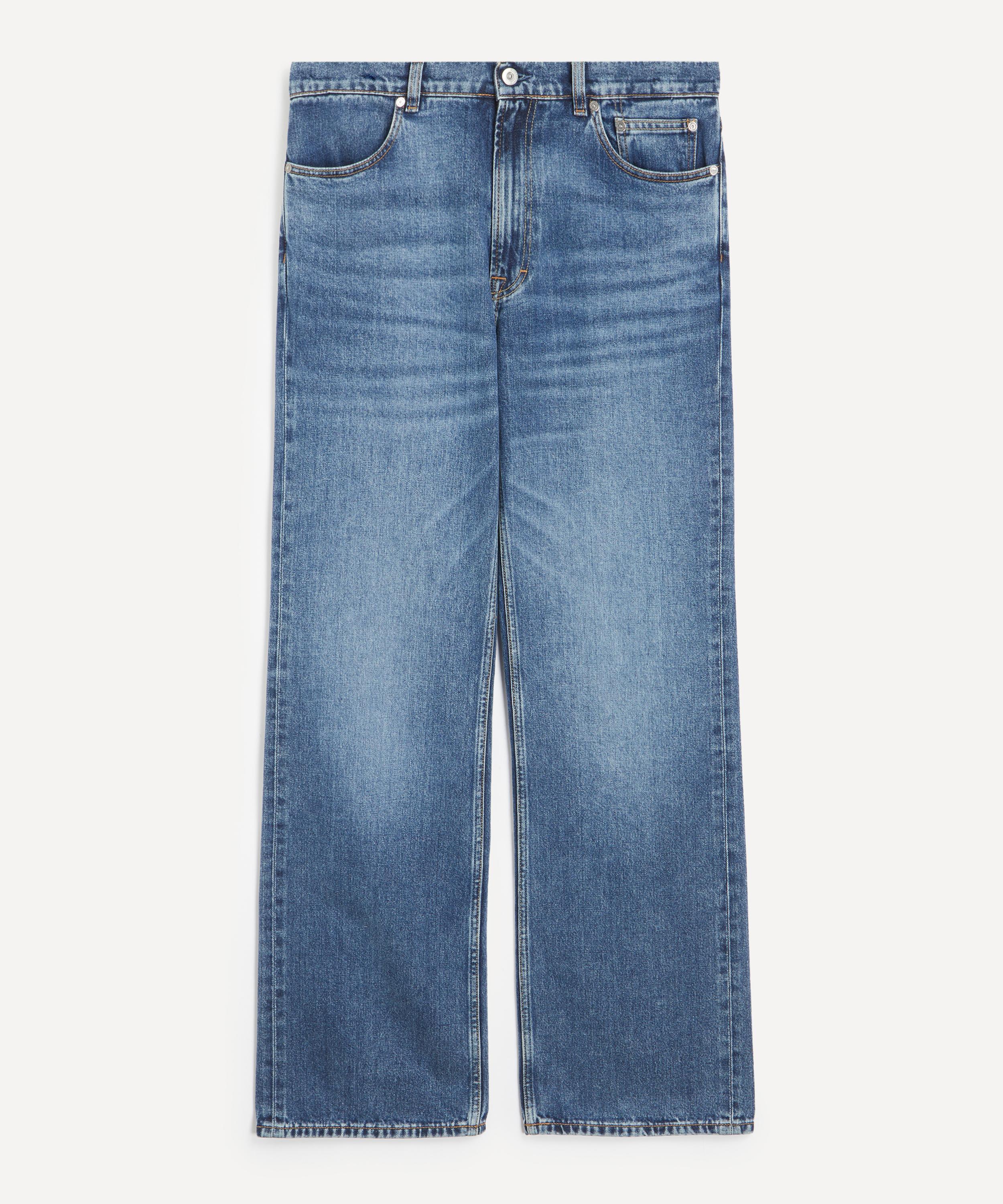 Constructed from Japanese Broken Twill denim in a rich indigo wash, the Carlson Cut jeans feature a high waist, straight hip, and a subtle bootcut flare for a vintage, ’70s-inspired silhouette. Finished with a zip fly, steel rivets, five-pocket construction, and Our Legacy’s signature embossed Jacron patch, light whiskering enhances their retro appeal.