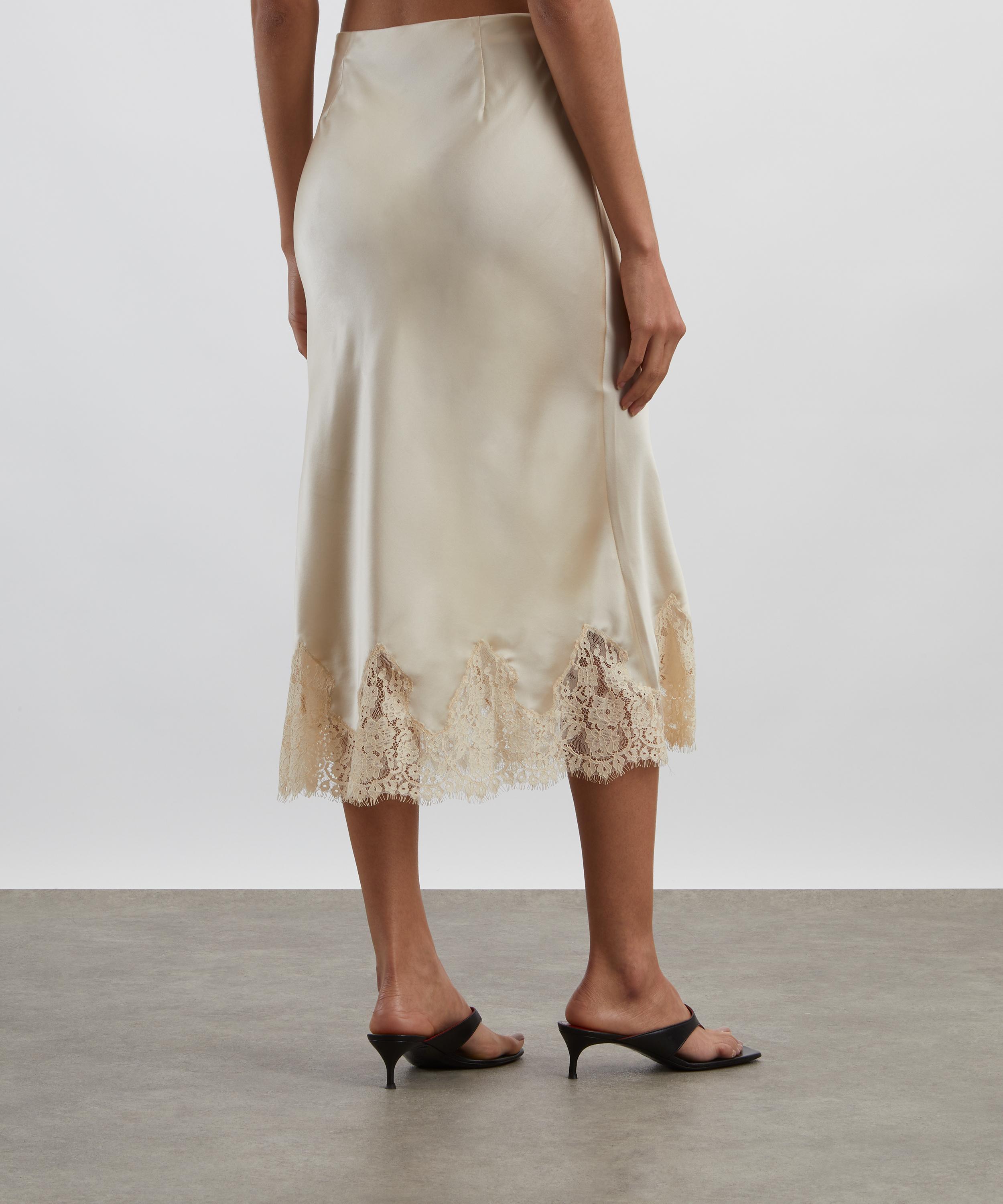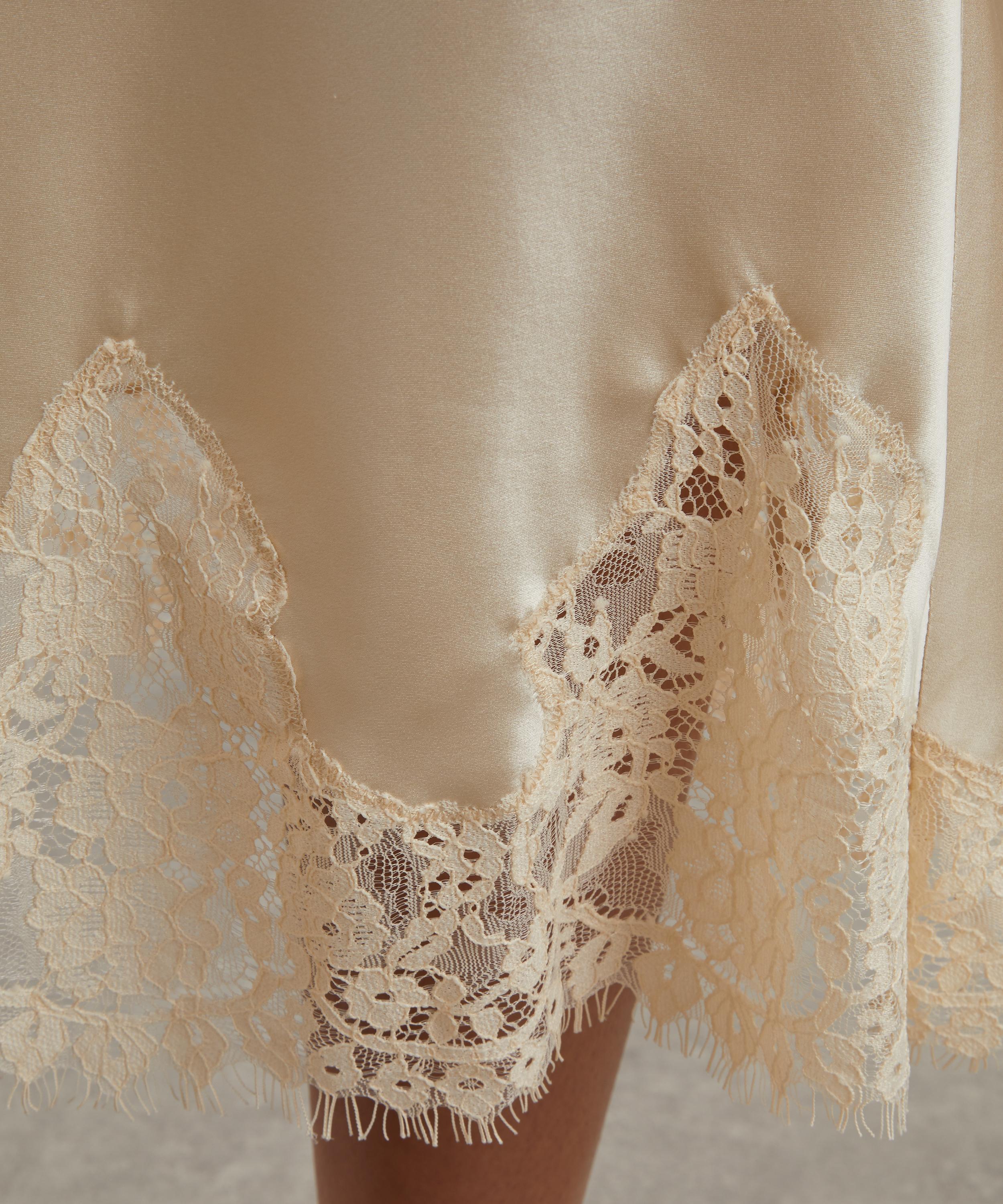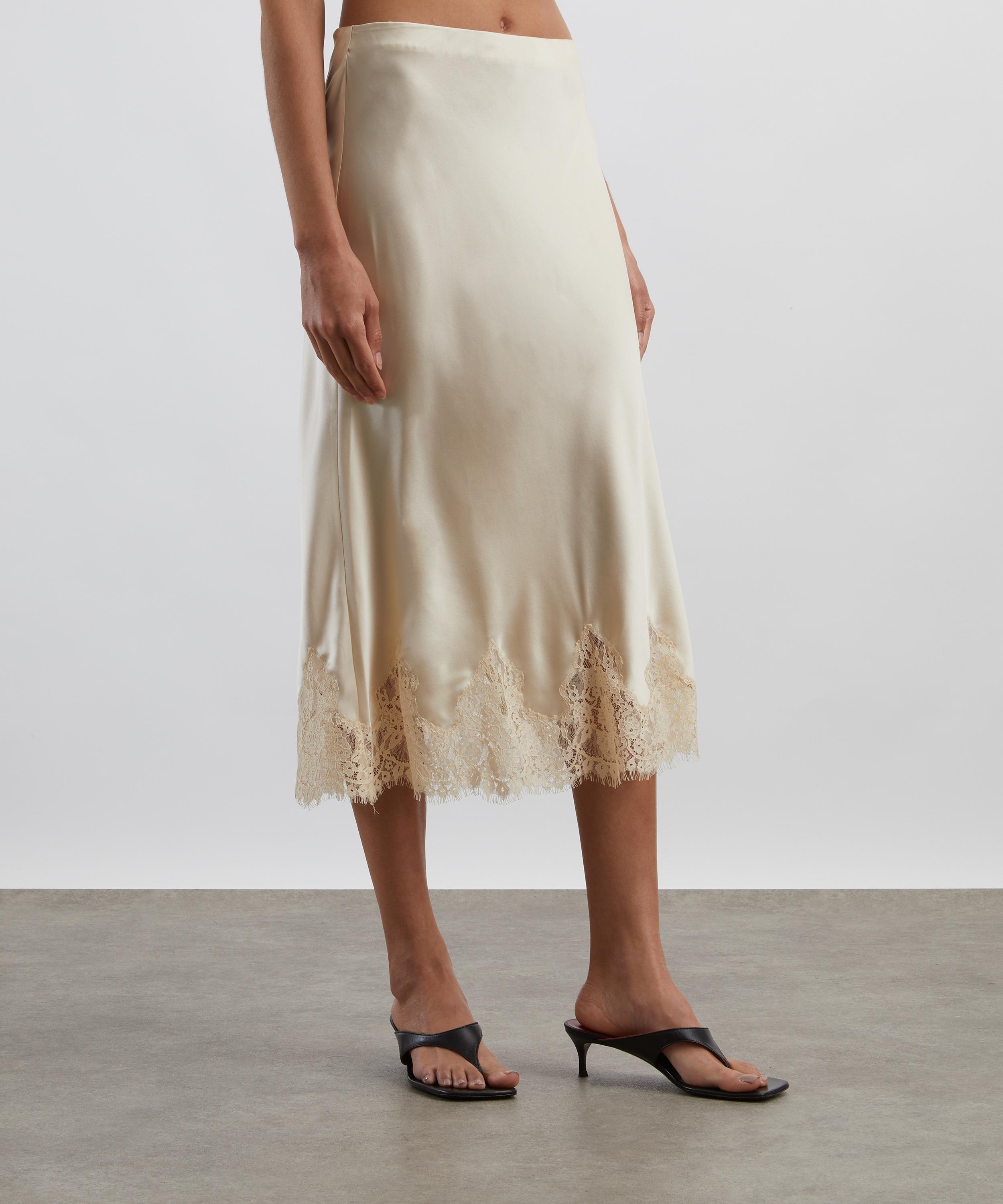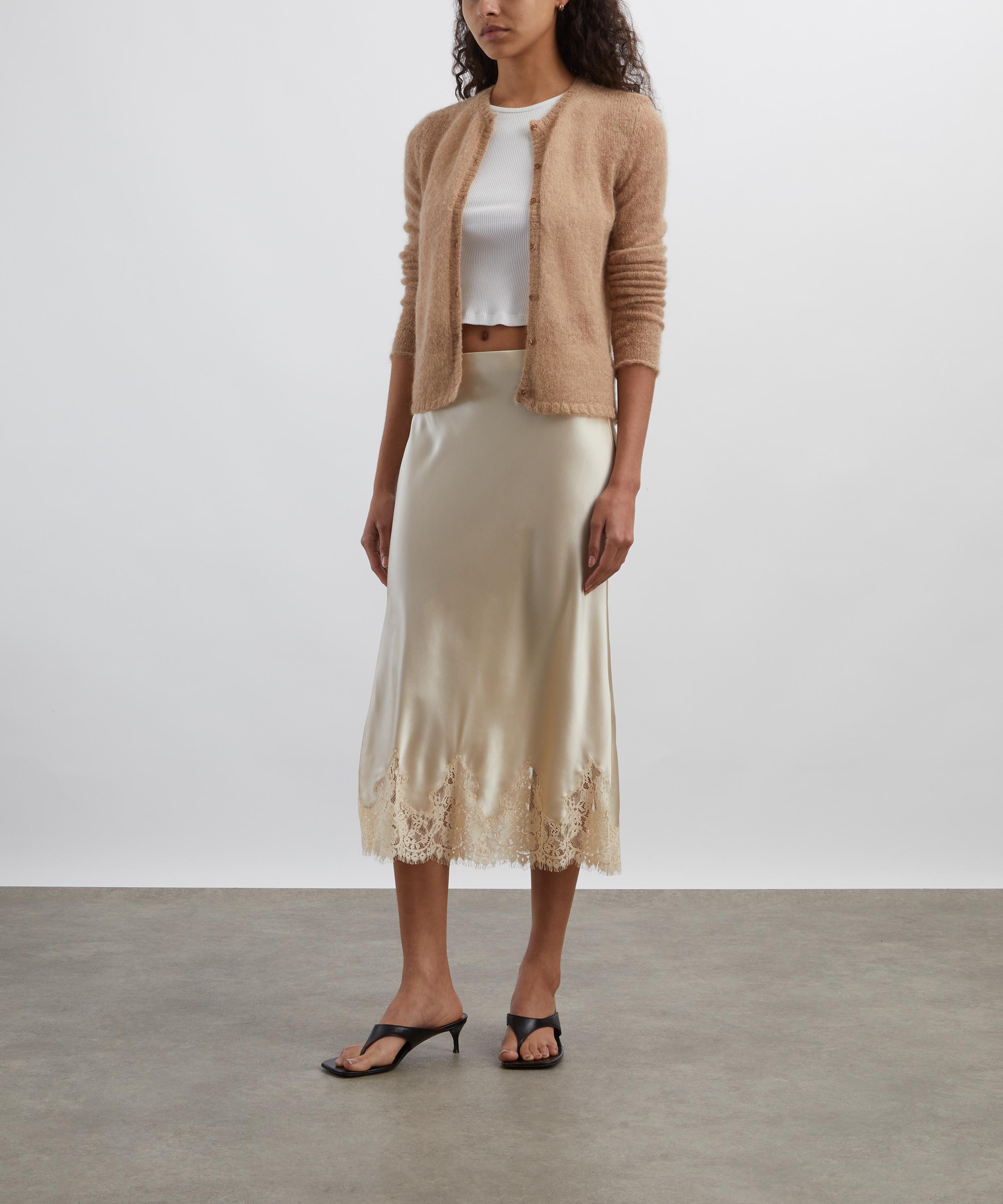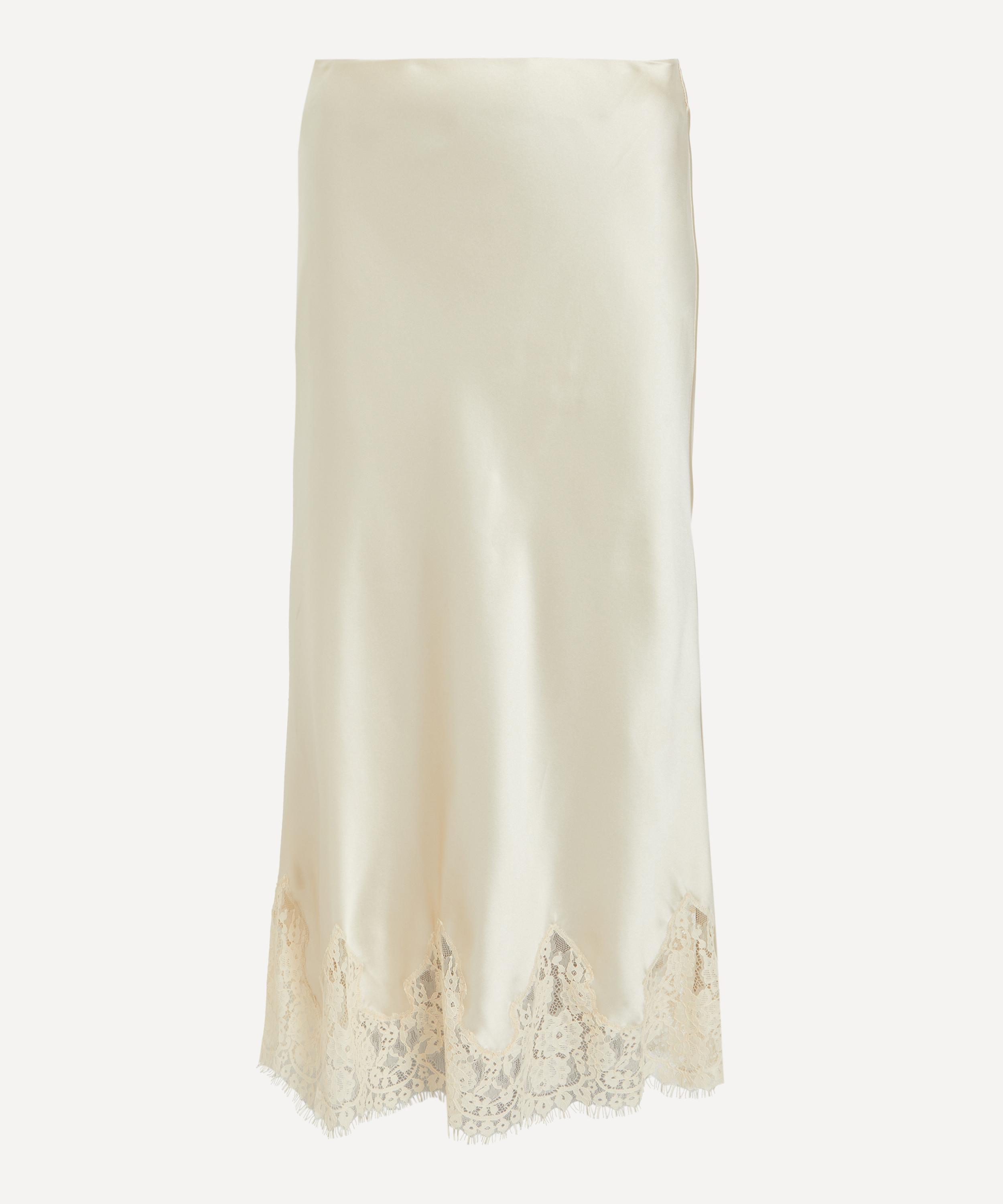Crafted from lightweight silk charmeuse, the Carolina skirt exudes effortless elegance. Fitted at the waist and relaxed through the body, it’s finished with a delicate lace-trimmed hem for a quaint, feminine touch.