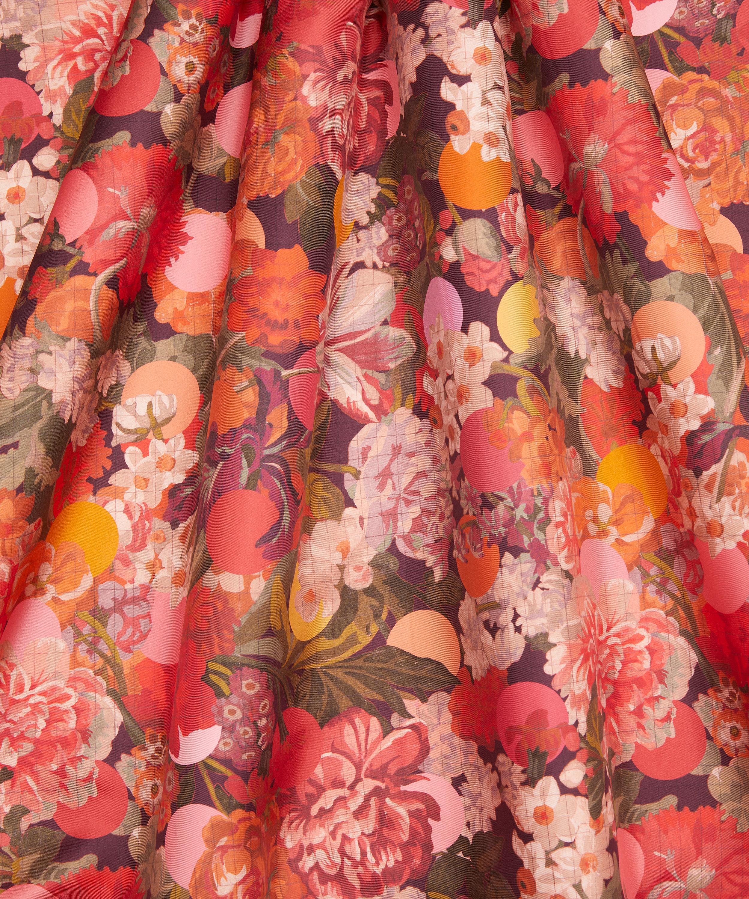 Inspired by a Dutch-style floral painting from the Liberty archive dating back to 1926, this breathtaking botanical takes cues from the technical aspects of textile design. Amongst a luscious profusion of tulips, roses, primroses, carnations, daffodils, and irises, visible grid marks can be distinguished, while vibrant polka dots serve as guides, corresponding to the separation of colours. This print is part of the Craftsmanship narrative of this collection, exploring the creative process from within the Liberty archive, from print impressions and embroidered studies, to ceramics, jewellery, and furniture. Uncover the origins of the designers’ musings through artworks inspired by their sketchbooks and prototypes.