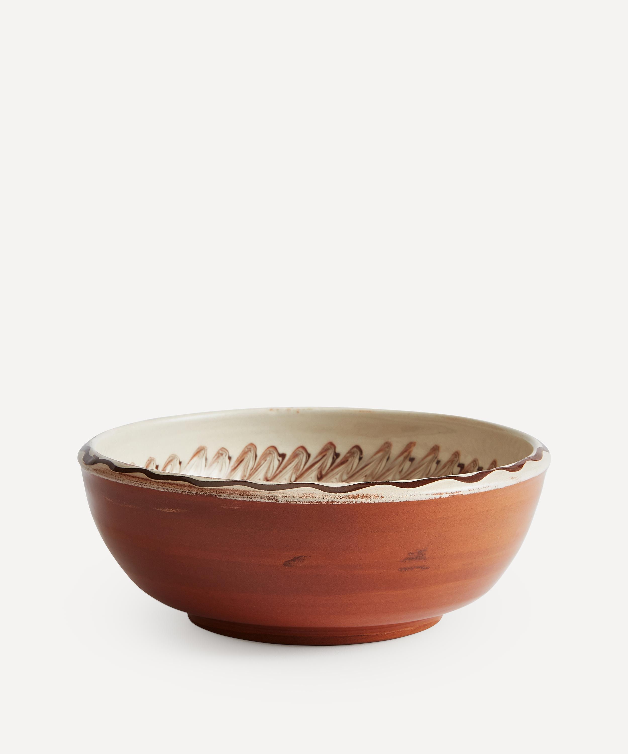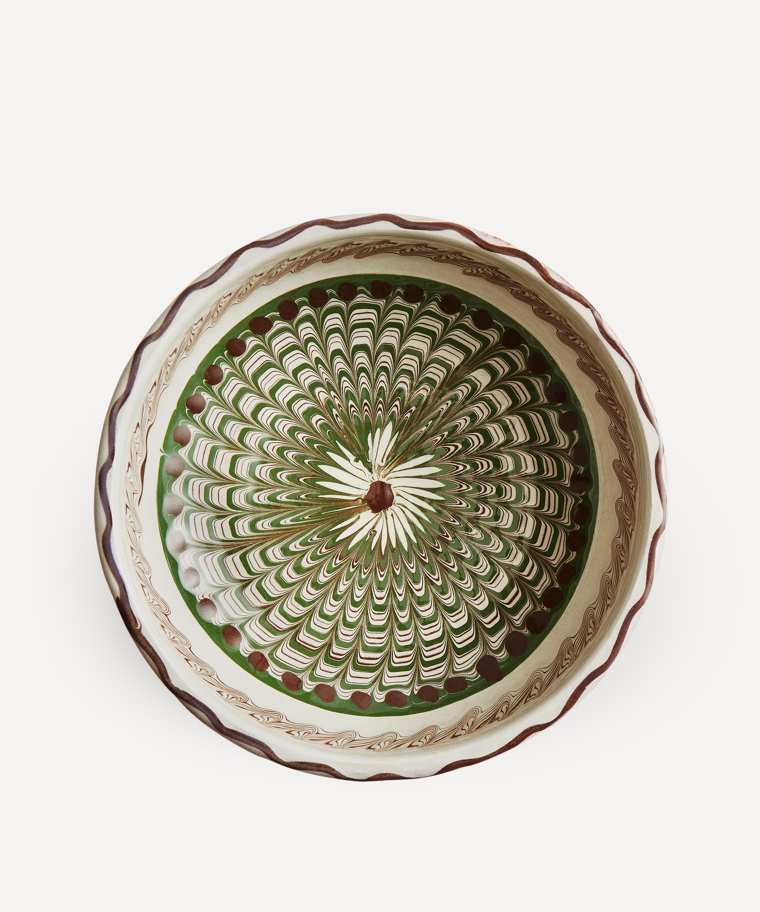 This hand-painted bowl is a testament to the heritage and skills of generations of Romanian artisans. Handmade from raw clay extracted from Ulmet Hill, it is decorated using an age-old painting technique for a distinctive finish. Incorporate this one-of-a-kind bowl into your table setting to help preserve the stories and art of Romanian folklore.