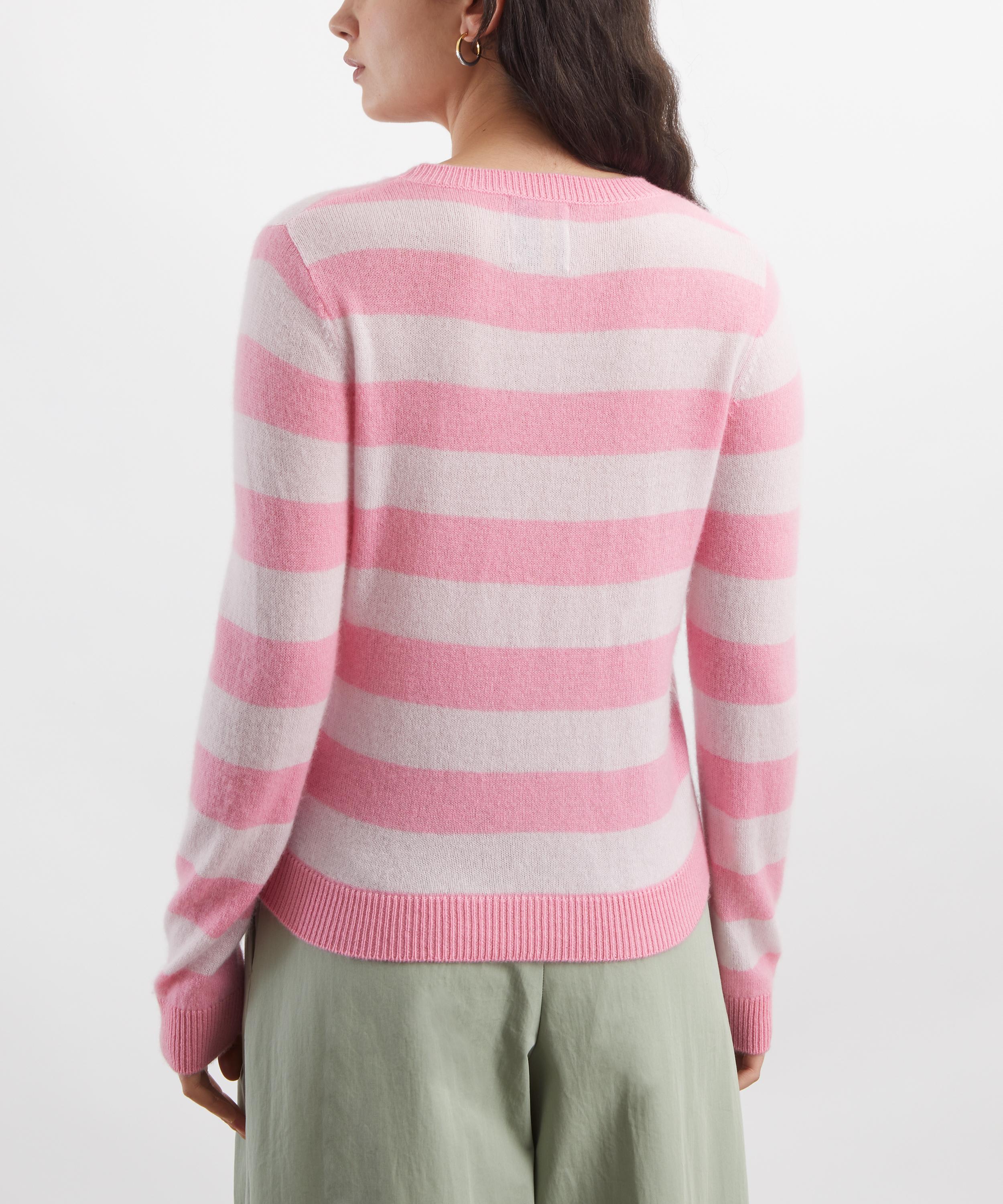 Crafted from lightweight cashmere, this long-sleeve crew is detailed with contrasting two-tone stripes and finished with contrast tipping for a playful yet refined touch.