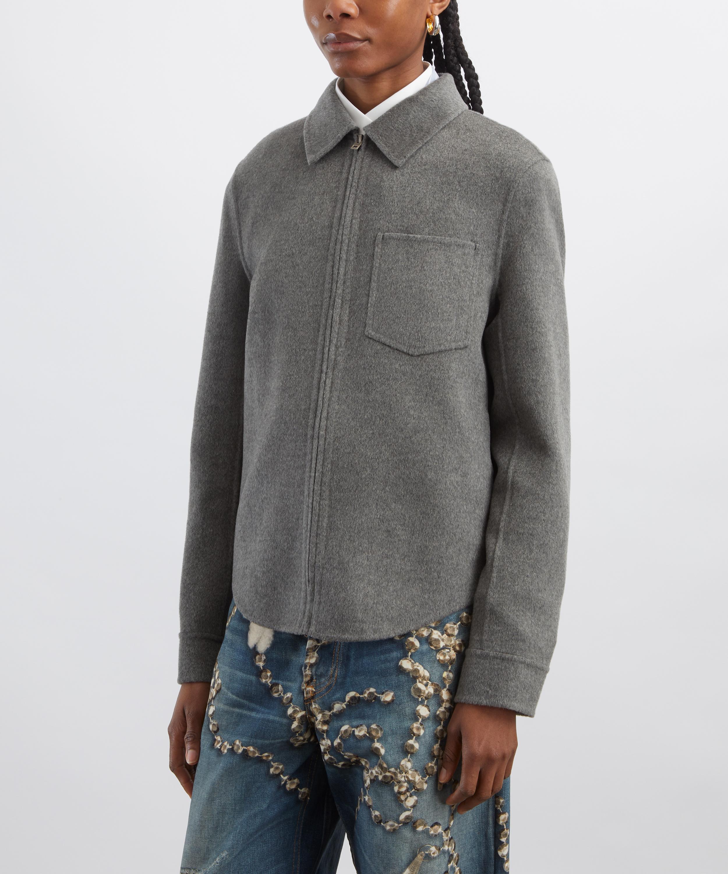 Crafted from premium double-splittable cashmere wool with a softly brushed finish, this collared jacket is defined by clean lines and refined detailing. A two-way zip fastening and a chest pocket underscore its effortlessly sleek, understated appeal.