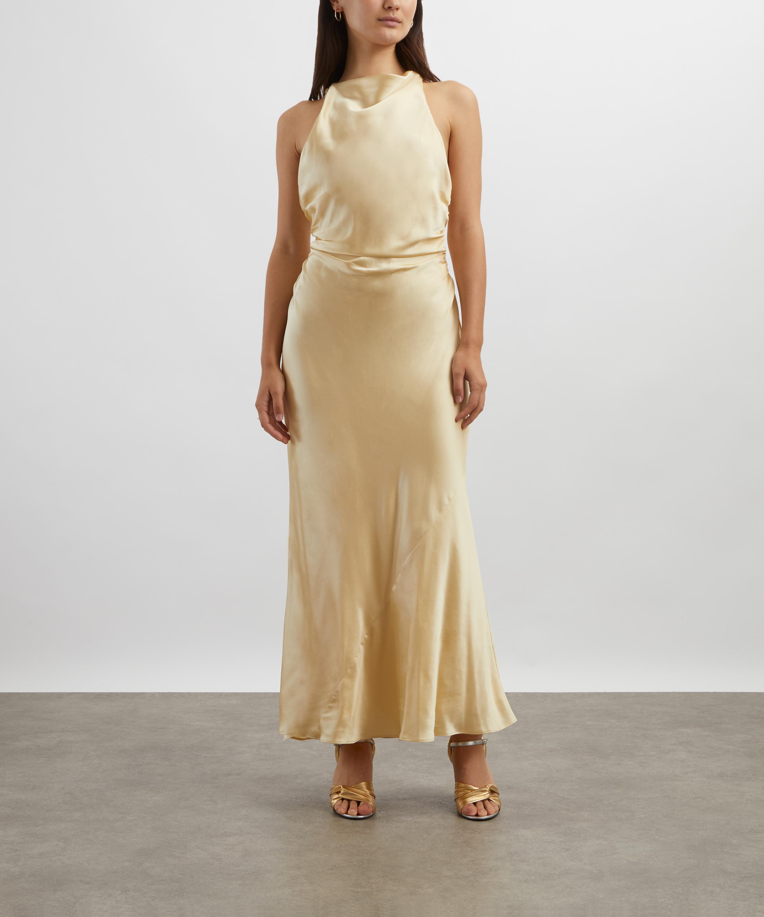 Crafted from lightweight silk charmeuse, the Cassette dress exudes effortless elegance. Fitted throughout, it features a cowl neckline and an open back with crossed straps for a sleek finish.
