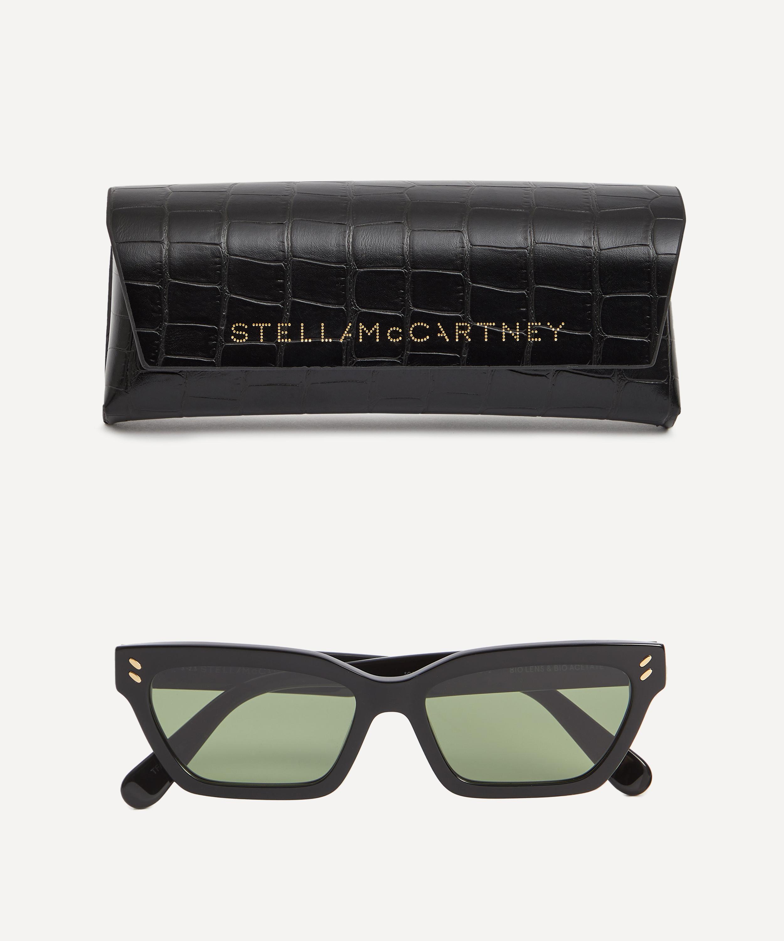 In celebrated Stella McCartney style, elevate your edit with these edgy cat-eye sunglasses. Crafted from black acetate, they feature an elongated, narrow cat-eye frame, punctuated by gold-tone pins and a brand logo to the temples.