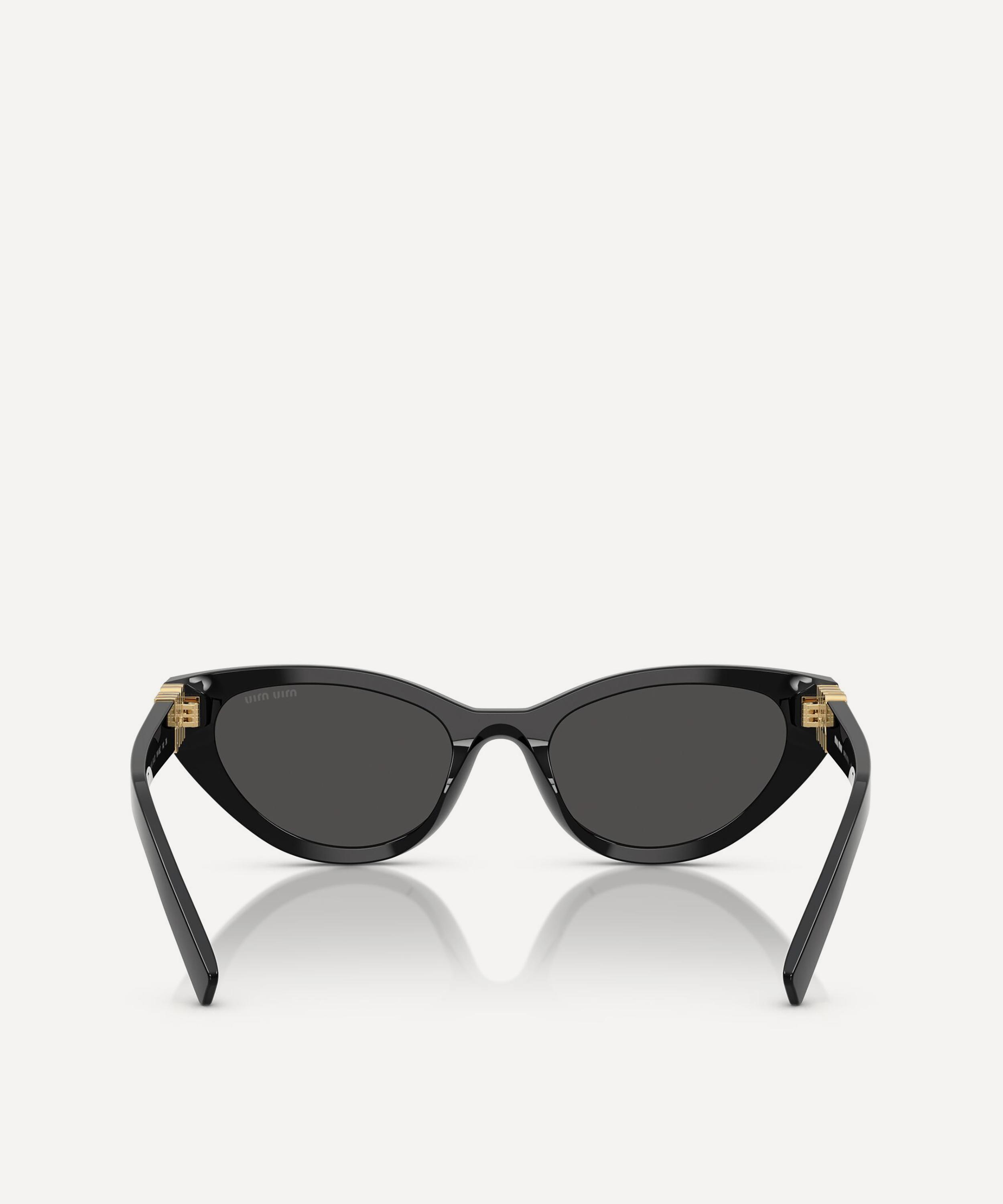 Heighten the impact of any attire with these cat-eye sunglasses from Miu Miu. Expertly crafted from black acetate, to create a statement pair that instantly draws the eye, these sunnies are fitted with a comfortable saddle nose bridge and grey-tinted lenses to shade and protect your eyes from UV light. Complete with the signature branding at the temples, they make for an ultra-chic finish to your curated looks.