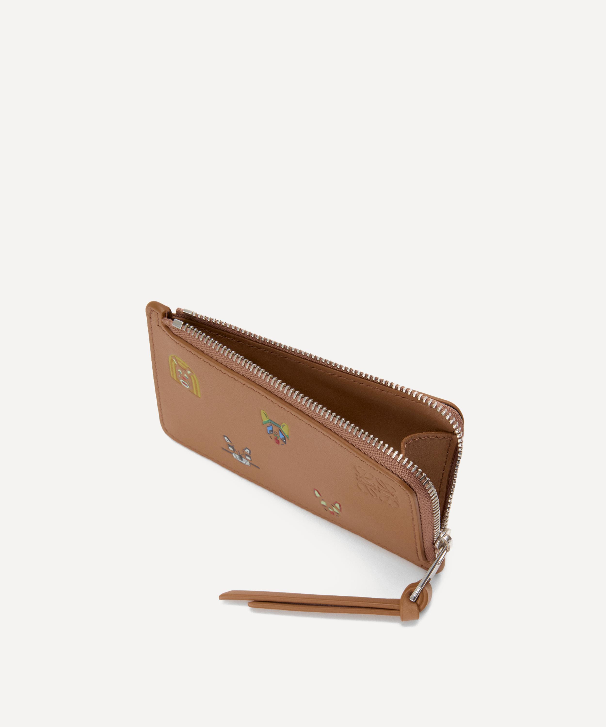 Cut from soft calfskin leather, it showcases a sleek design featuring all-over 3D-effect cat prints inspired by Louis Wain’s “Futurist Cats” porcelain vase series. Complete with four card slots, a zipped coin compartment and an embossed Anagram logo, it's perfect for slipping into a handbag or jacket pocket to keep cards and cash organised in signature Loewe style.