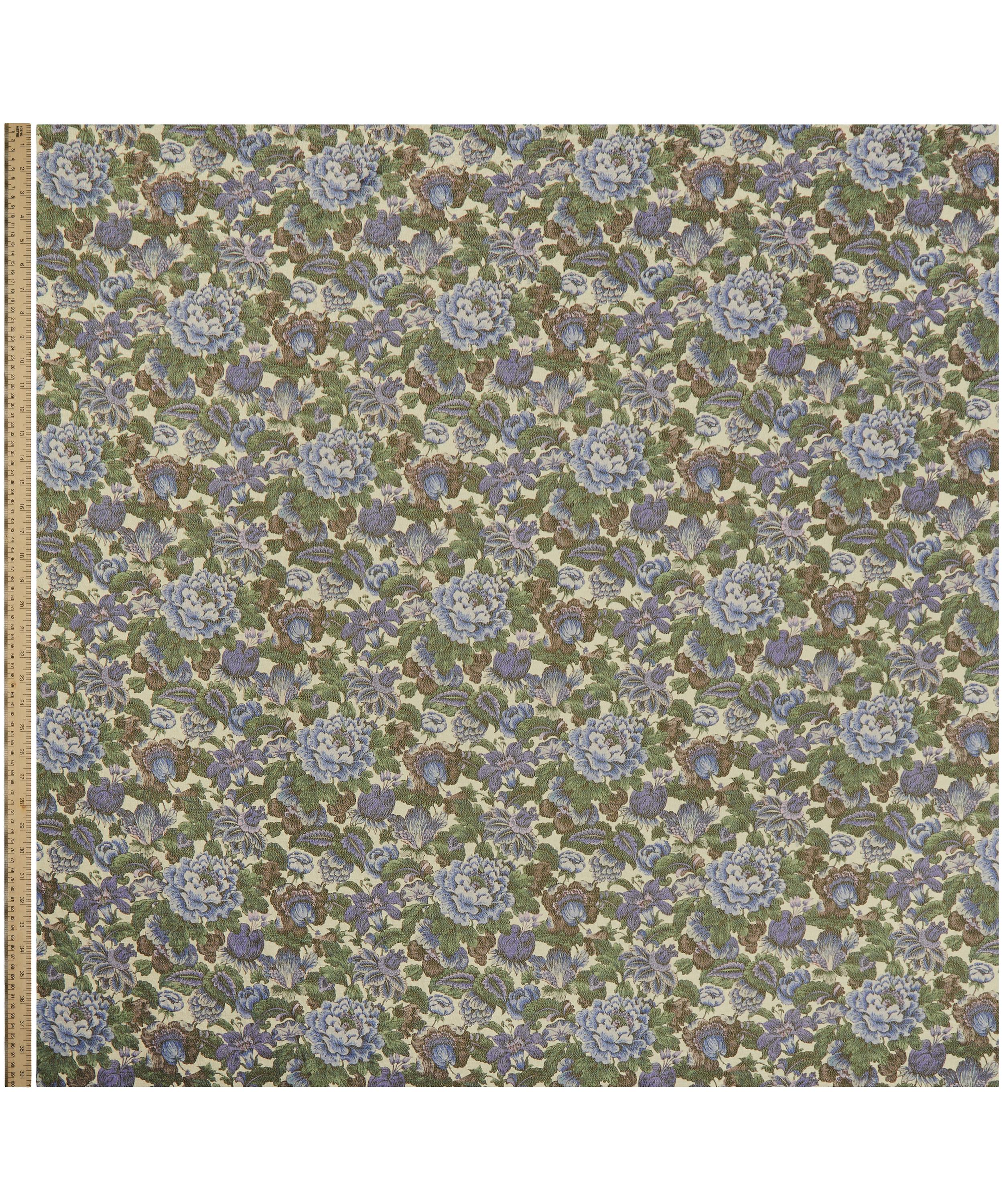 Inspired by a hand-painted artwork discovered in the Liberty archive, this opulent botanical showcases an abundance of magnificently displayed blooms. The unfurling petals of peonies, chrysanthemums and lilies gracefully cascade amidst a tapestry of lush foliage, meticulously weaving together a multisensory visual feast.