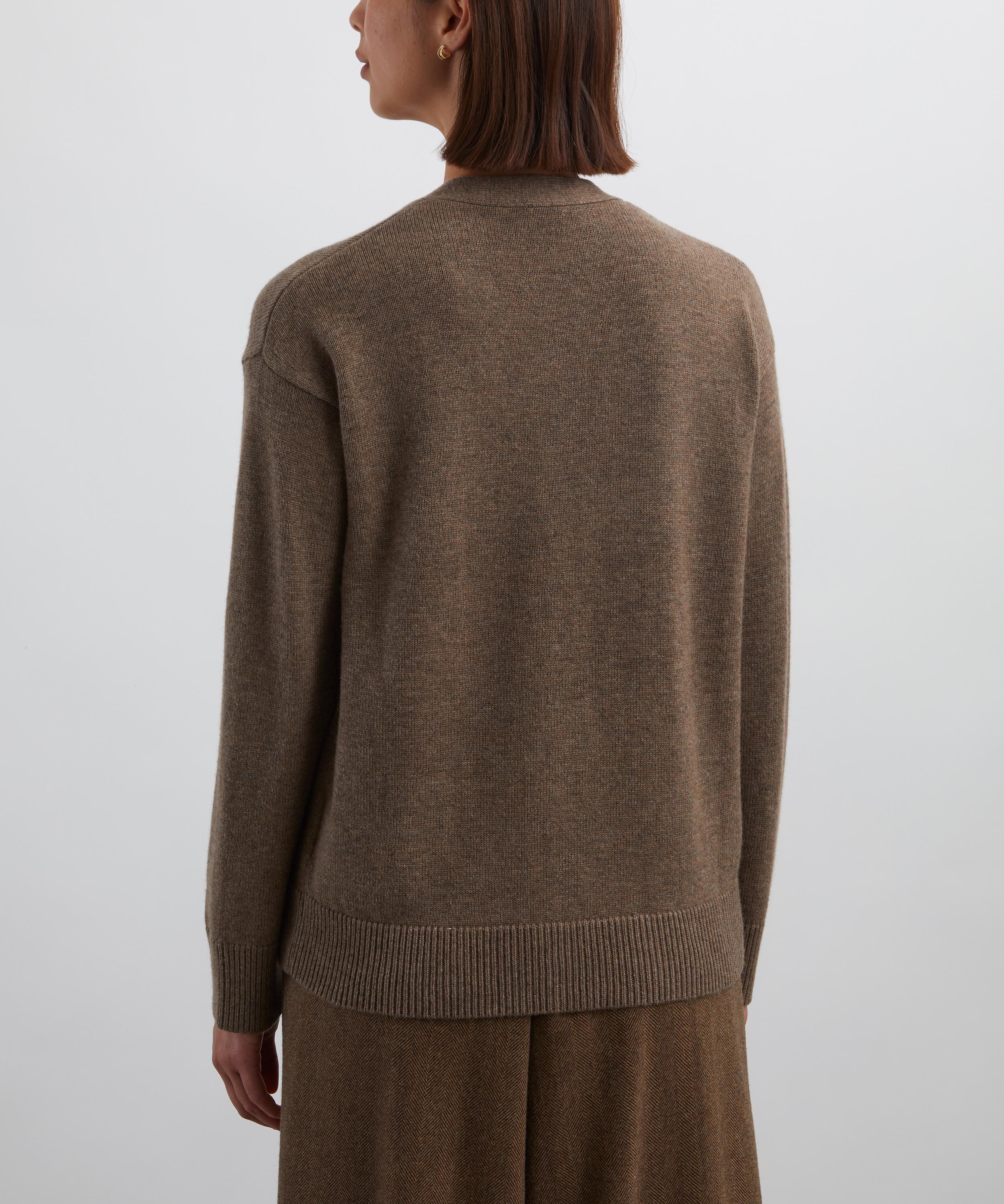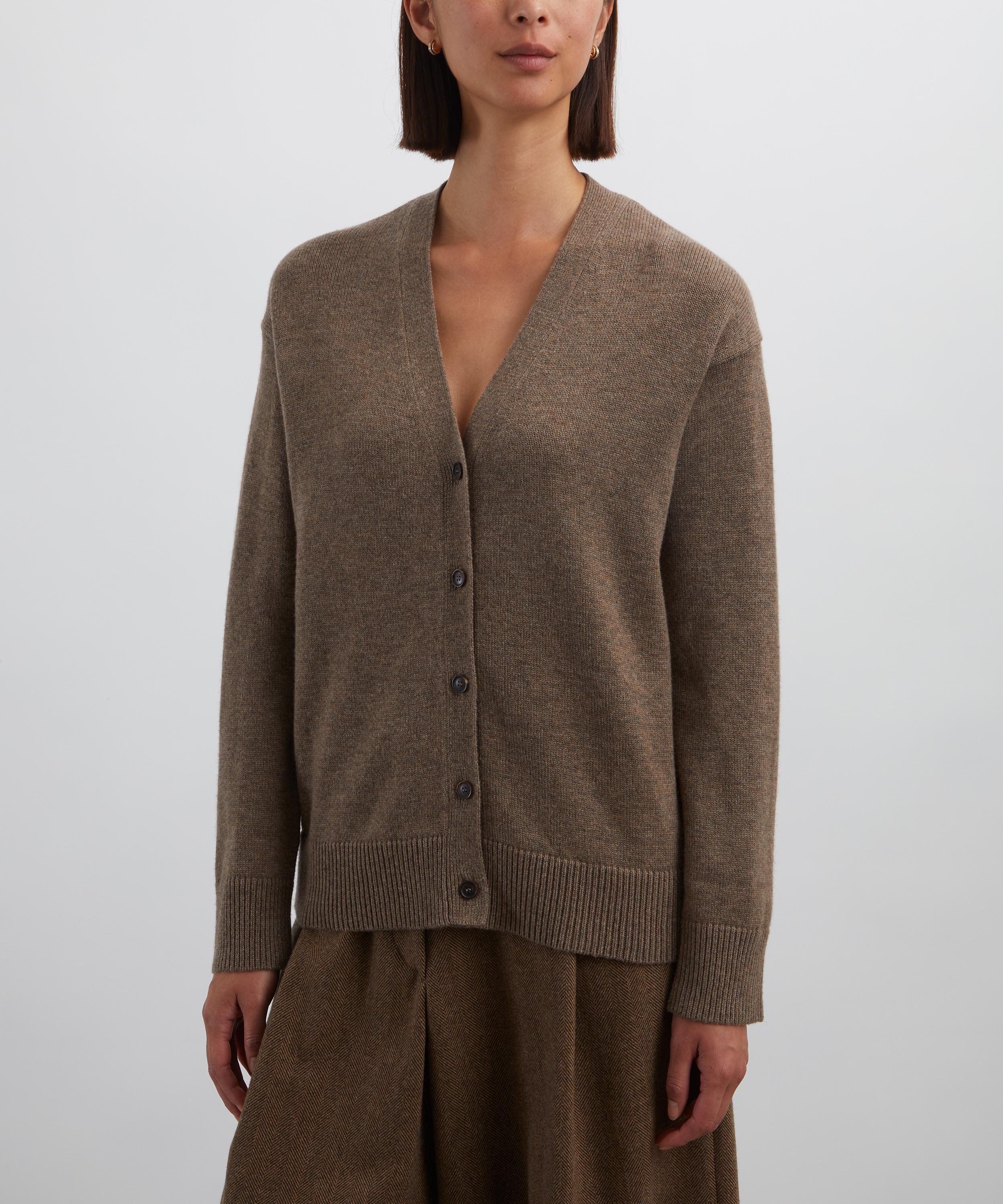 Crafted from a luxurious wool and cashmere blend, this knitted cardigan exudes understated elegance with a slightly boxy fit, dropped shoulders, and a flattering V-neckline.