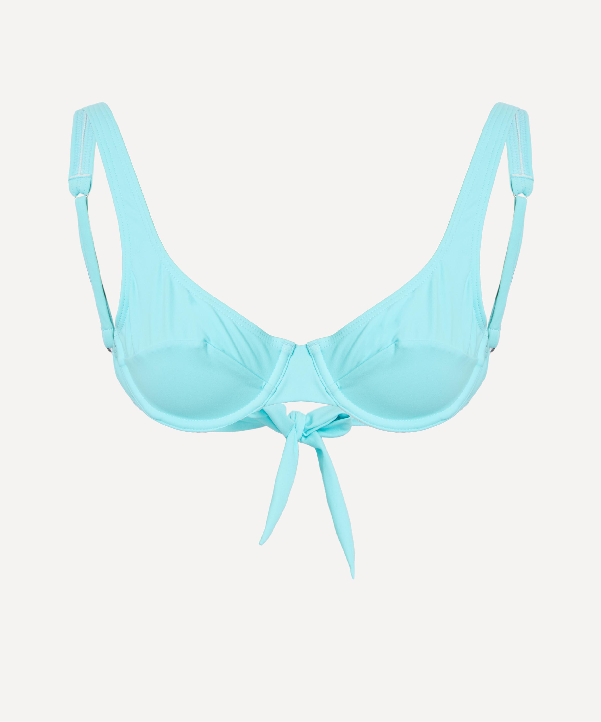 In a summery aqua-blue hue, this classic wired bikini top features adjustable straps and ties at the back for a perfectly tailored fit.