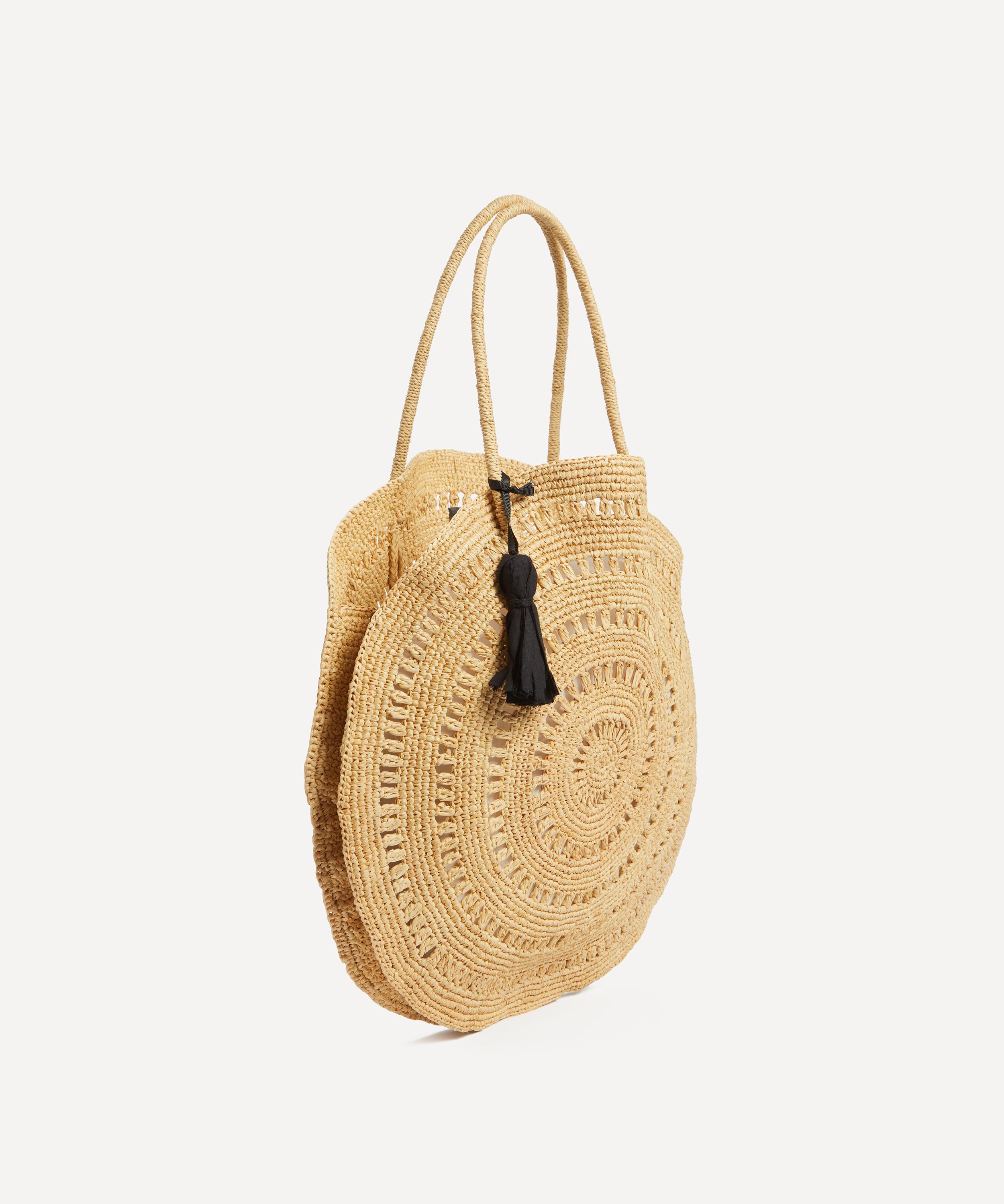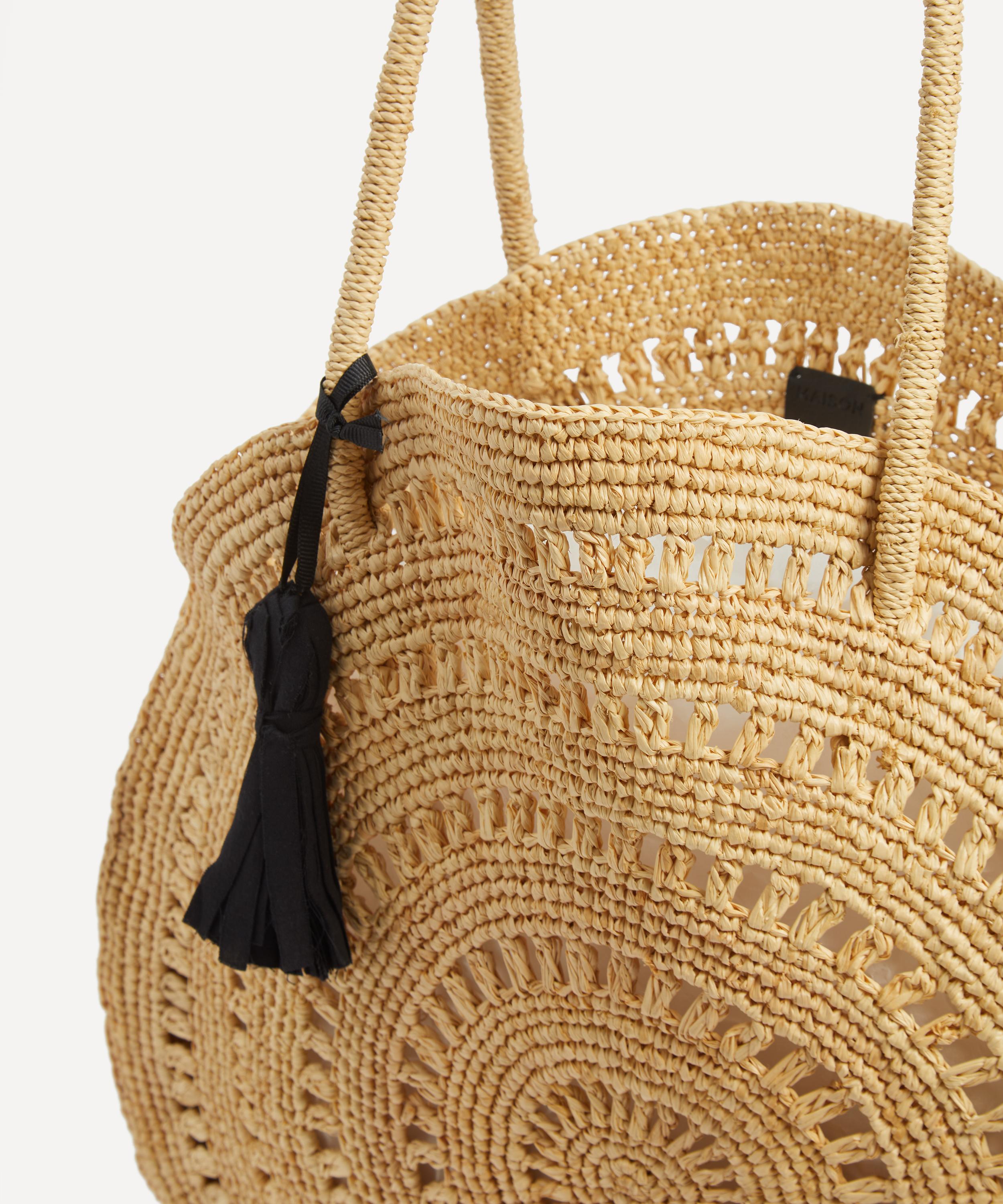 Handcrafted from raffia in Madagascar by skilled artisans to a playful, round silhouette, this original bag is set to become an instant classic, complete with long shoulder straps - perfect for stowing your daily essentials on sun-soaked days in the city.