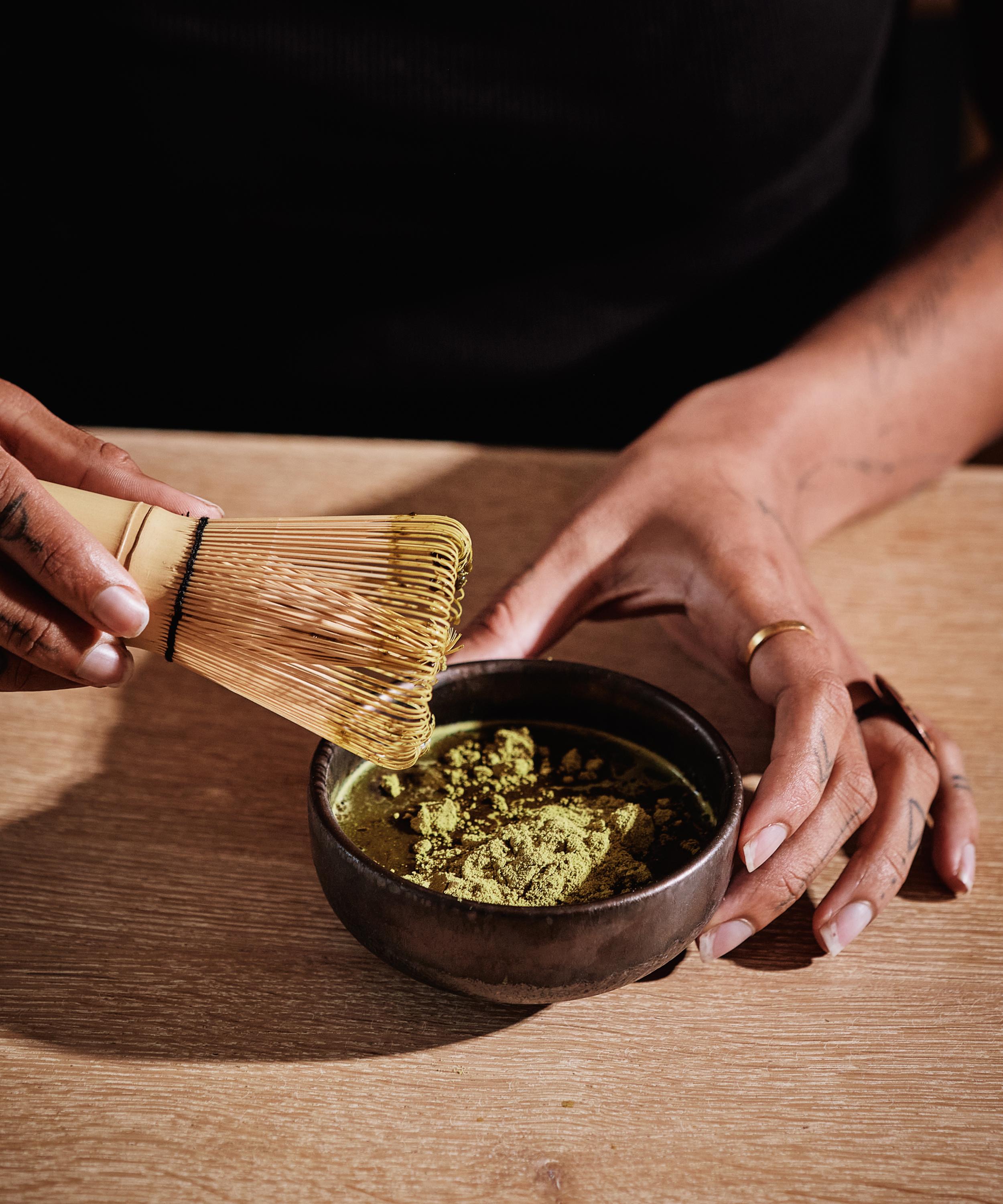 Mix 6g of powder with a splash of hot water and stir into a paste, then pour in warm milk of your choice to fill your cup for a matcha latte style drink. Alternatively, mix with hot water only and a splash of milk if you enjoy a longer drink. Ancient + Brave recommends a dose of 6g per day for optimal results.
