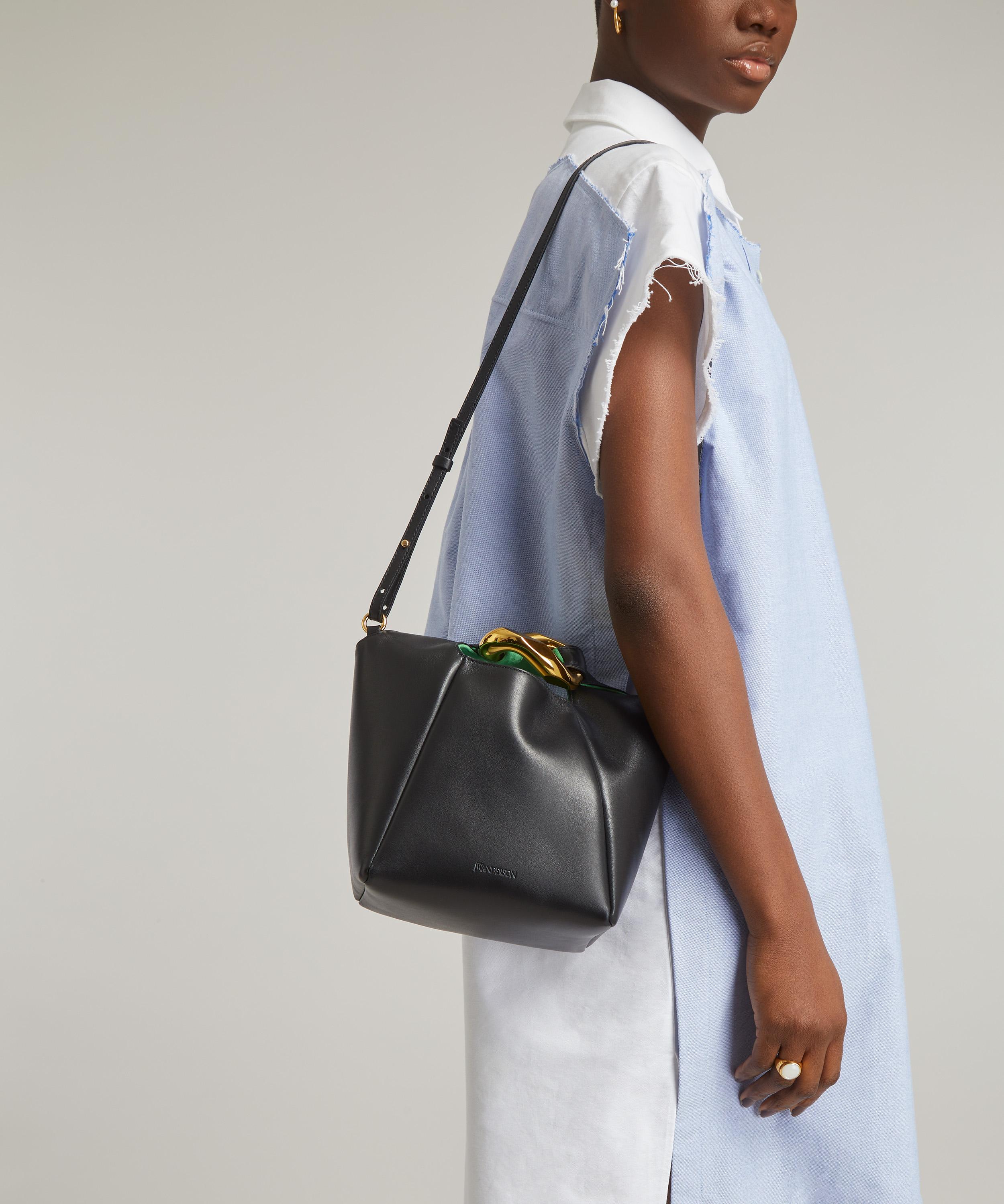Elevate your everyday edit with the Chain Link Pochette bag from JW Anderson, a unique style characterised by an oversized gold-tone chain link detail on the front.