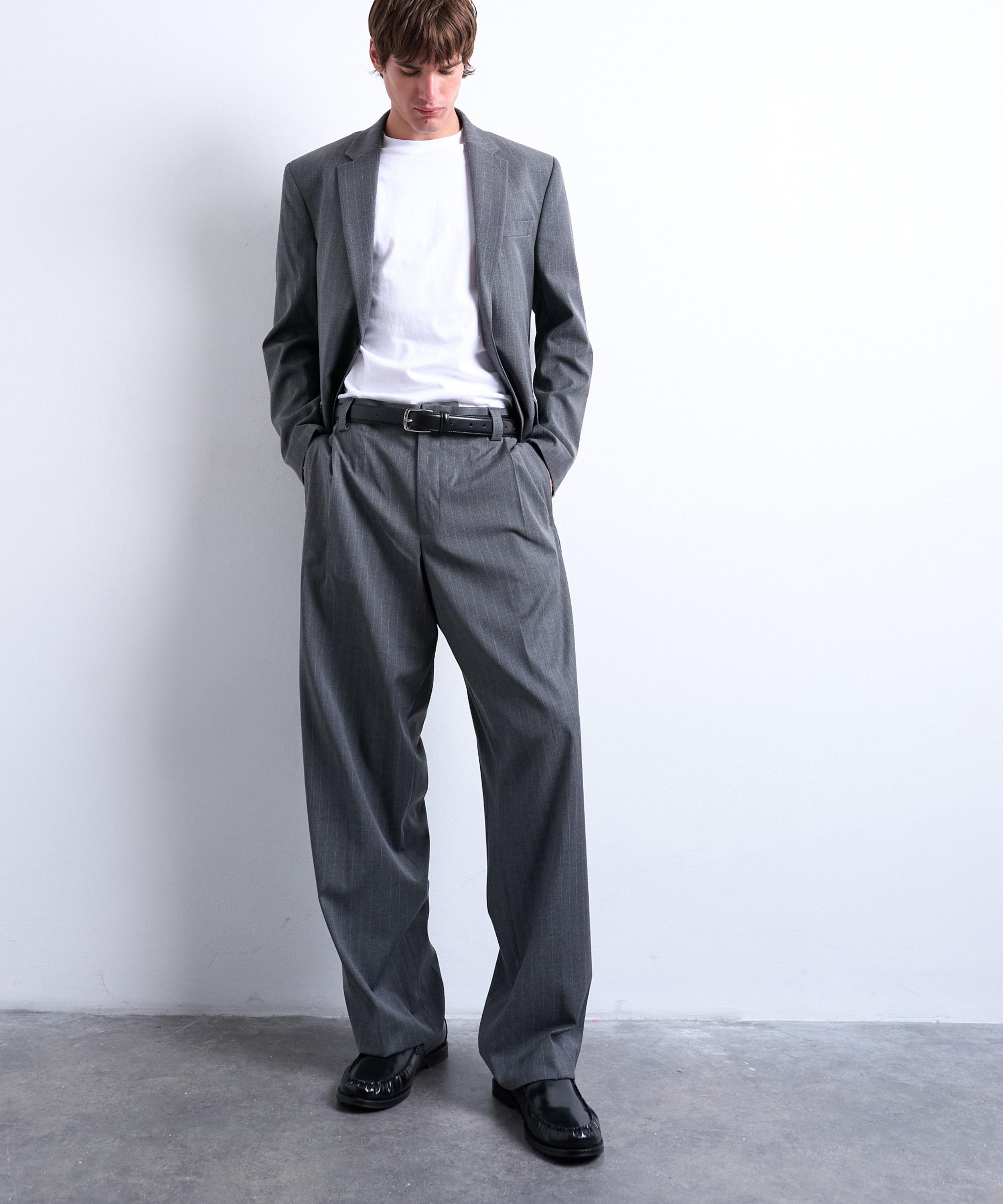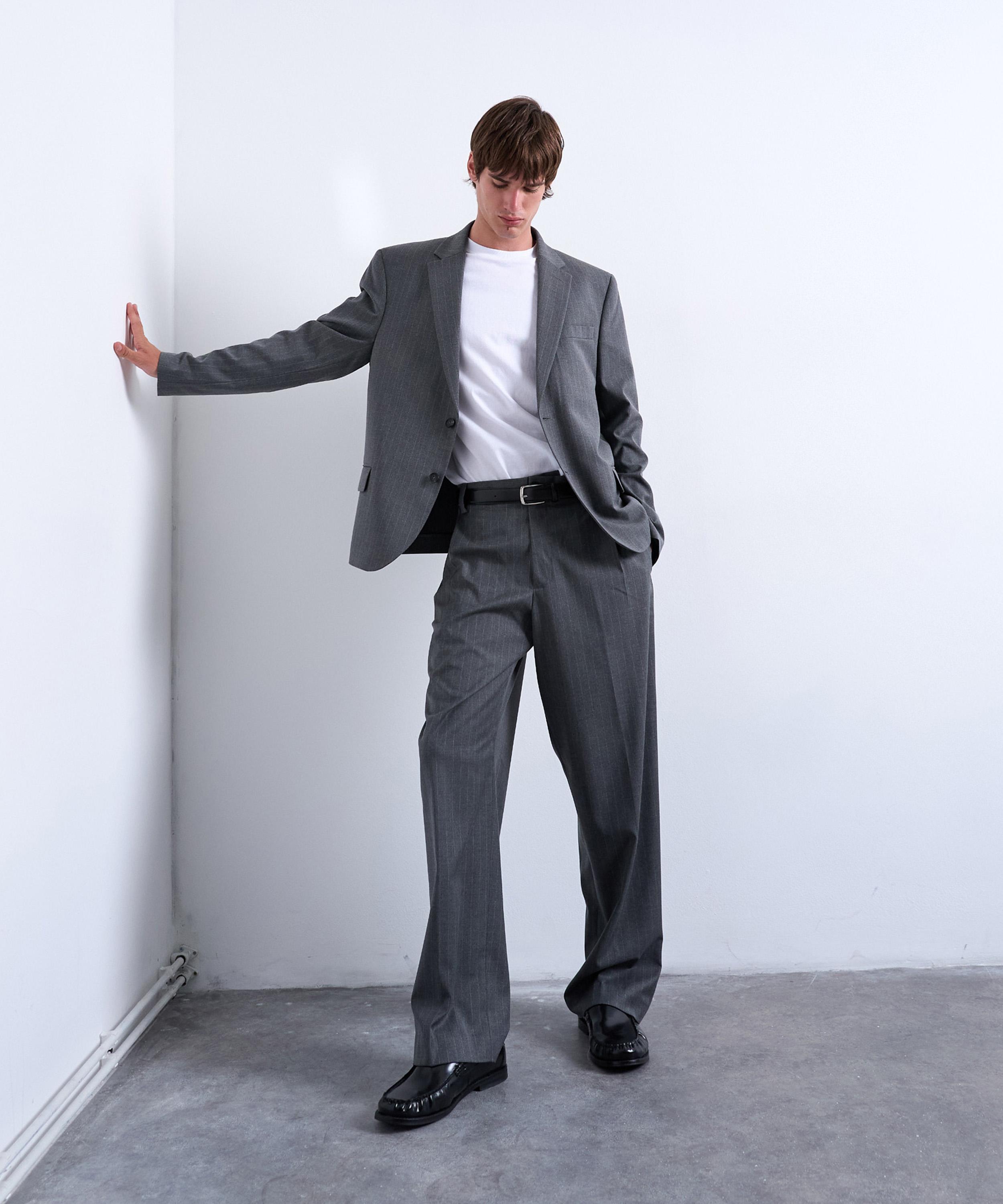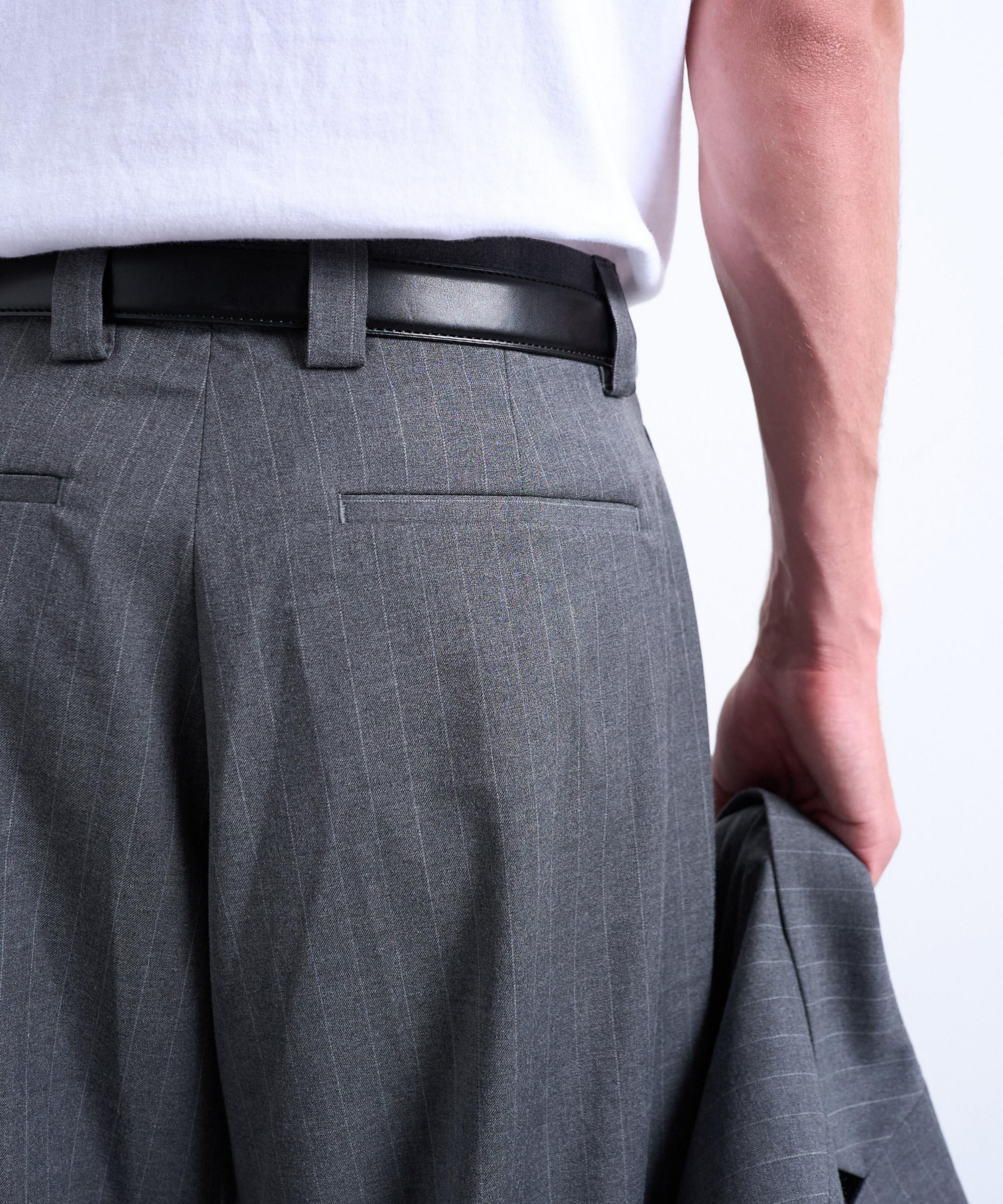 Crafted from plain-woven fabric with a classic grey pinstripe, these suit trousers feature a regular rise and a straight-leg silhouette, complete with belt loops and side pockets for a timeless, tailored finish.