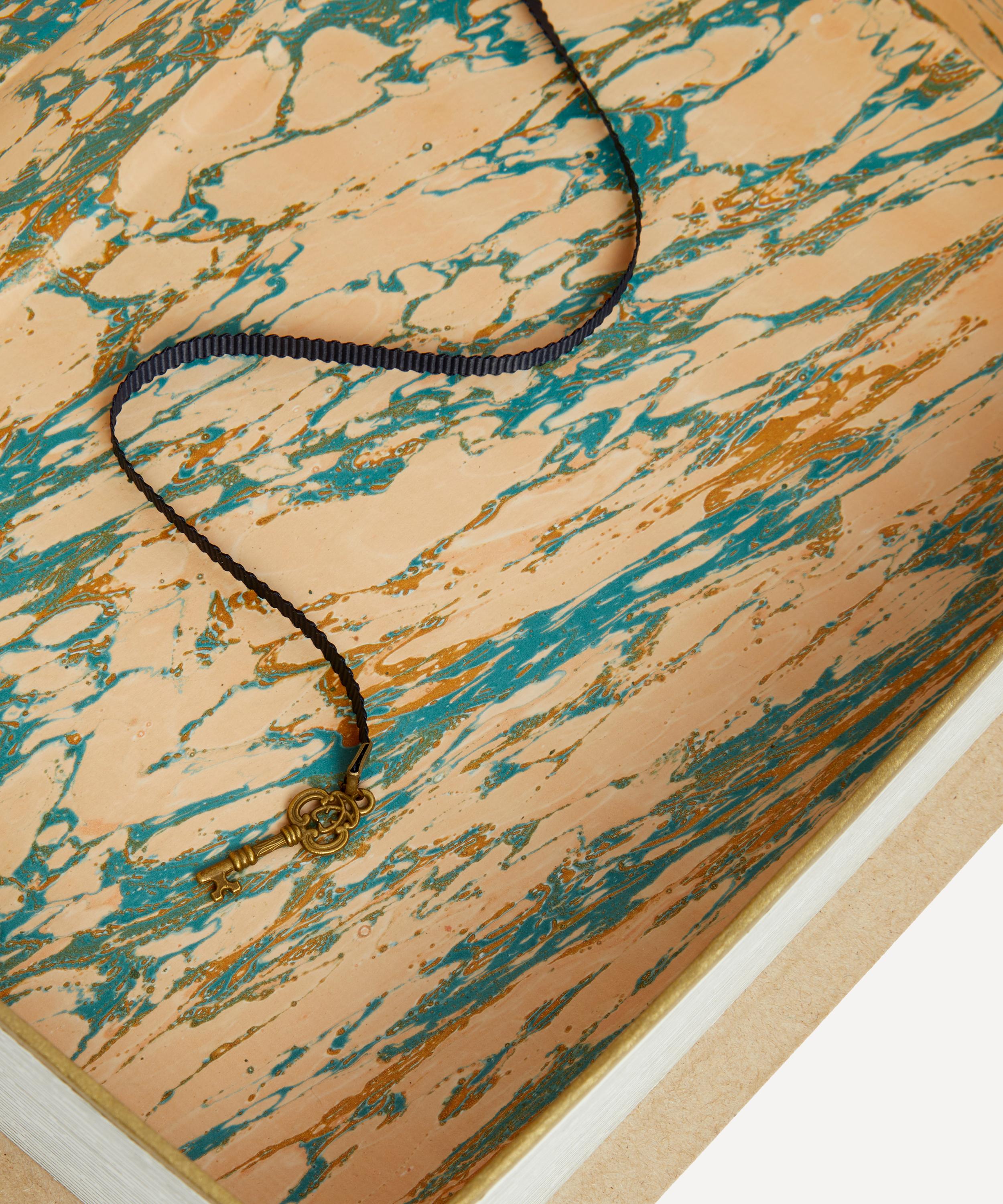 Taking inspiration from 18th century French tradition, this book is meticulously designed to subtly squirrel away your trinkets and treasures, crafted to beautifully blend into a mantle or shelfscape. The interior is elegantly lined with marbled binding paper that has been hand-printed in France, with a ribbon and a metal trinket in the shape of a key at the end to complete the piece.