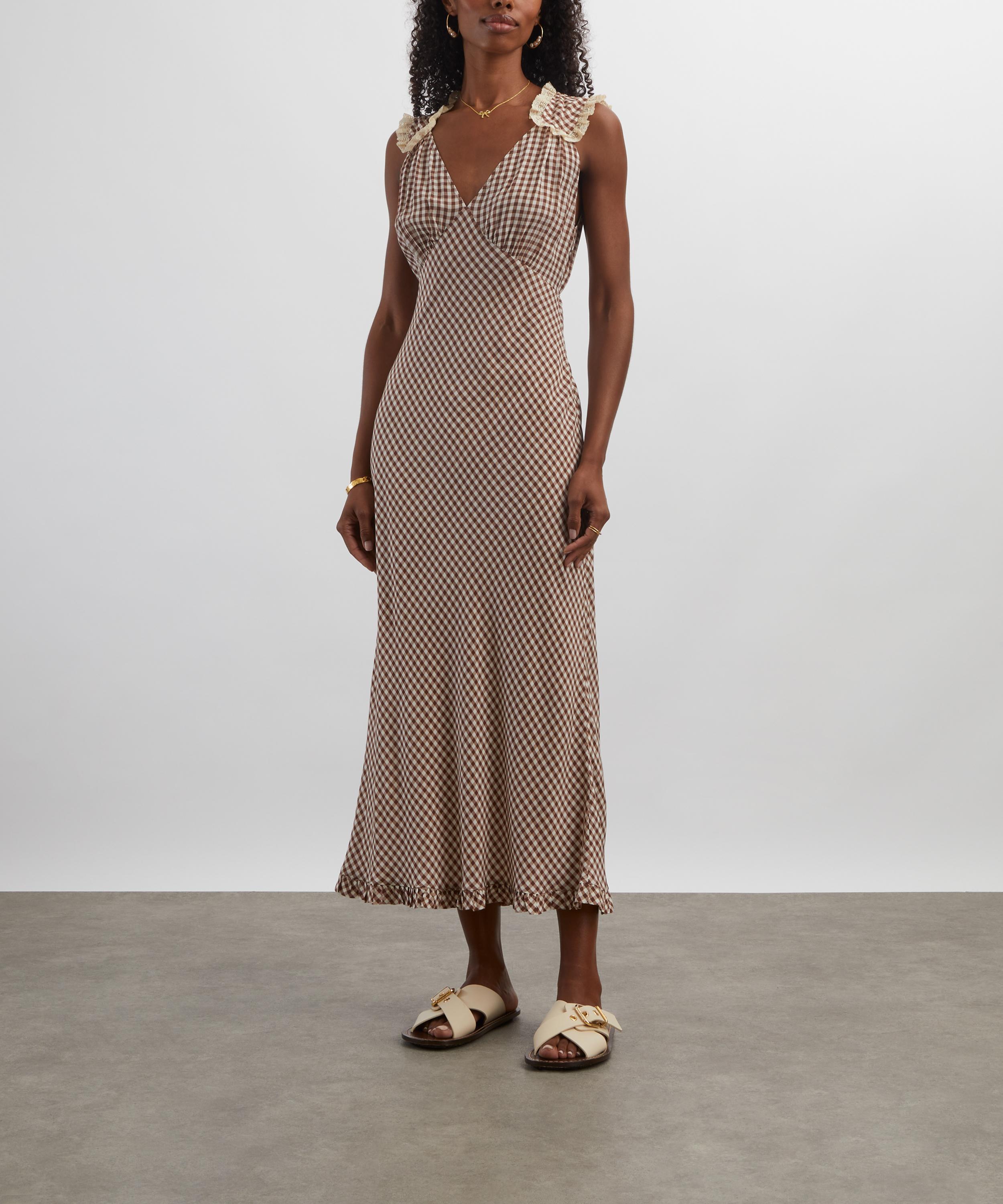RIXO’s Chessie French Check Brown Midi Dress infuses your new season edit with a little retro elegance.