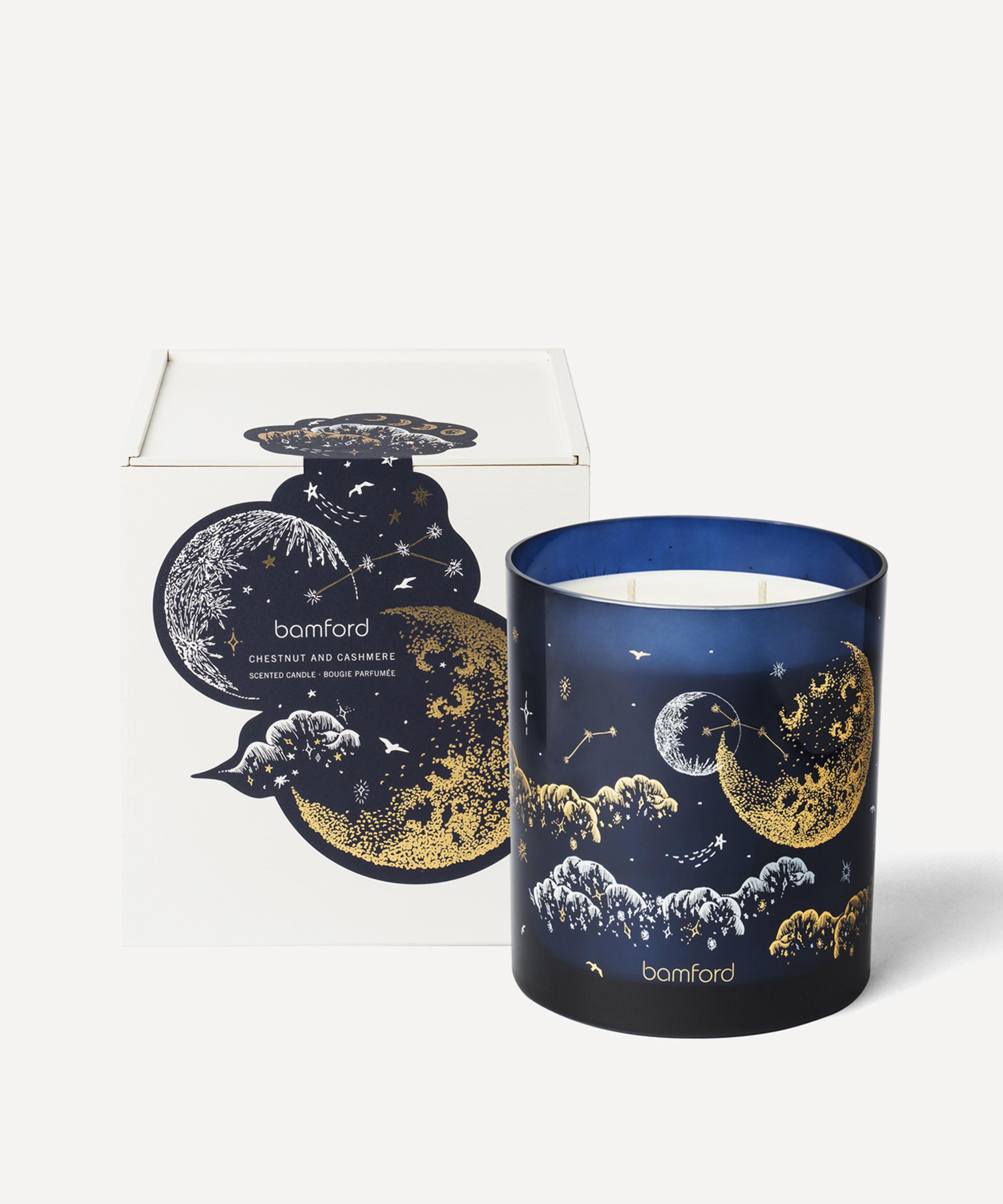 Offering a sensorial and gourmand atmosphere, Bamford presents the Chestnut and Cashmere scented candle – enveloping your home in the candied scent of Christmas.