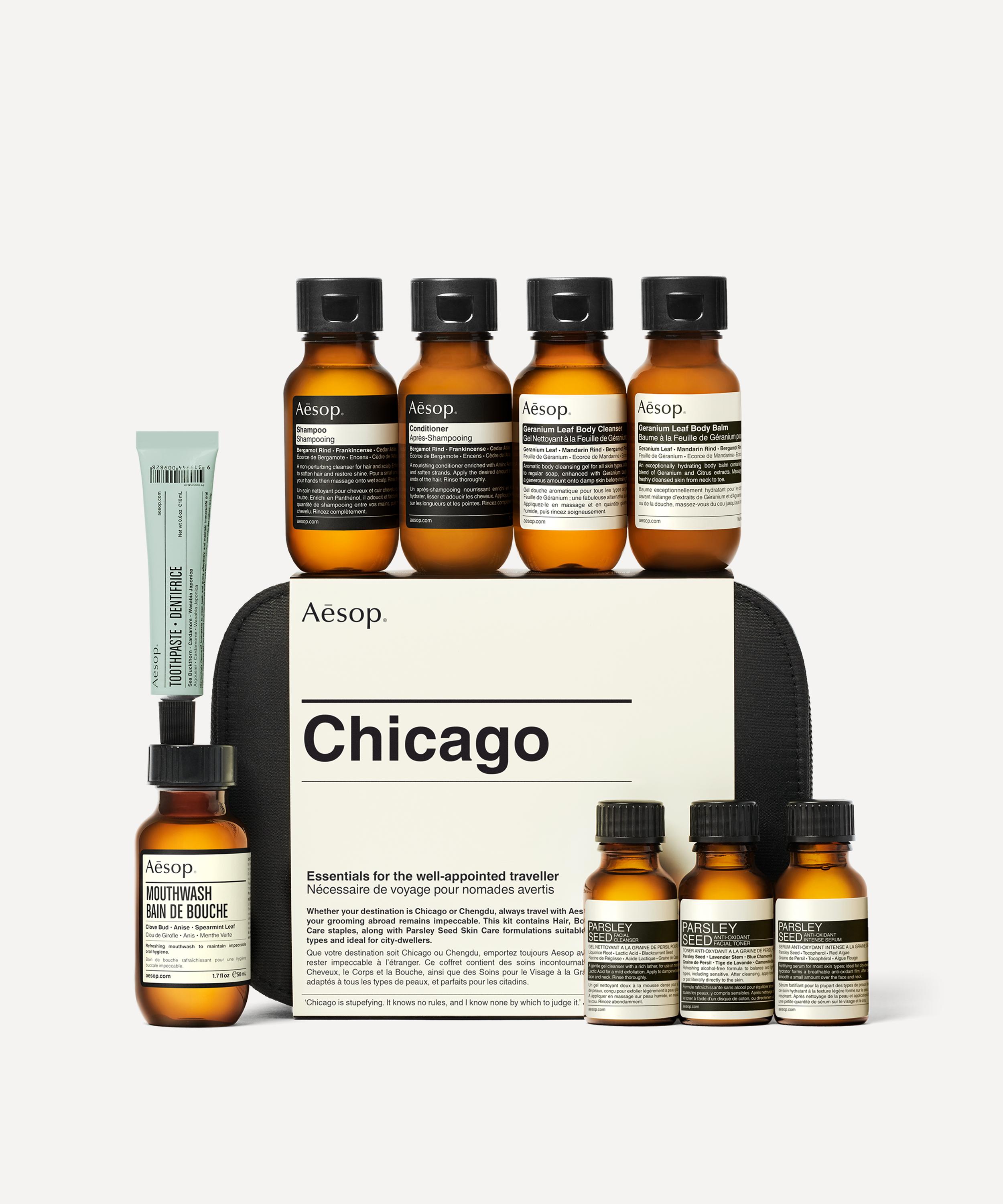 Ensure your grooming abroad remains impeccable with Aesop's Chicago Kit, featuring nine travel-sized personal care essentials, it is a must for the well-appointed traveller.