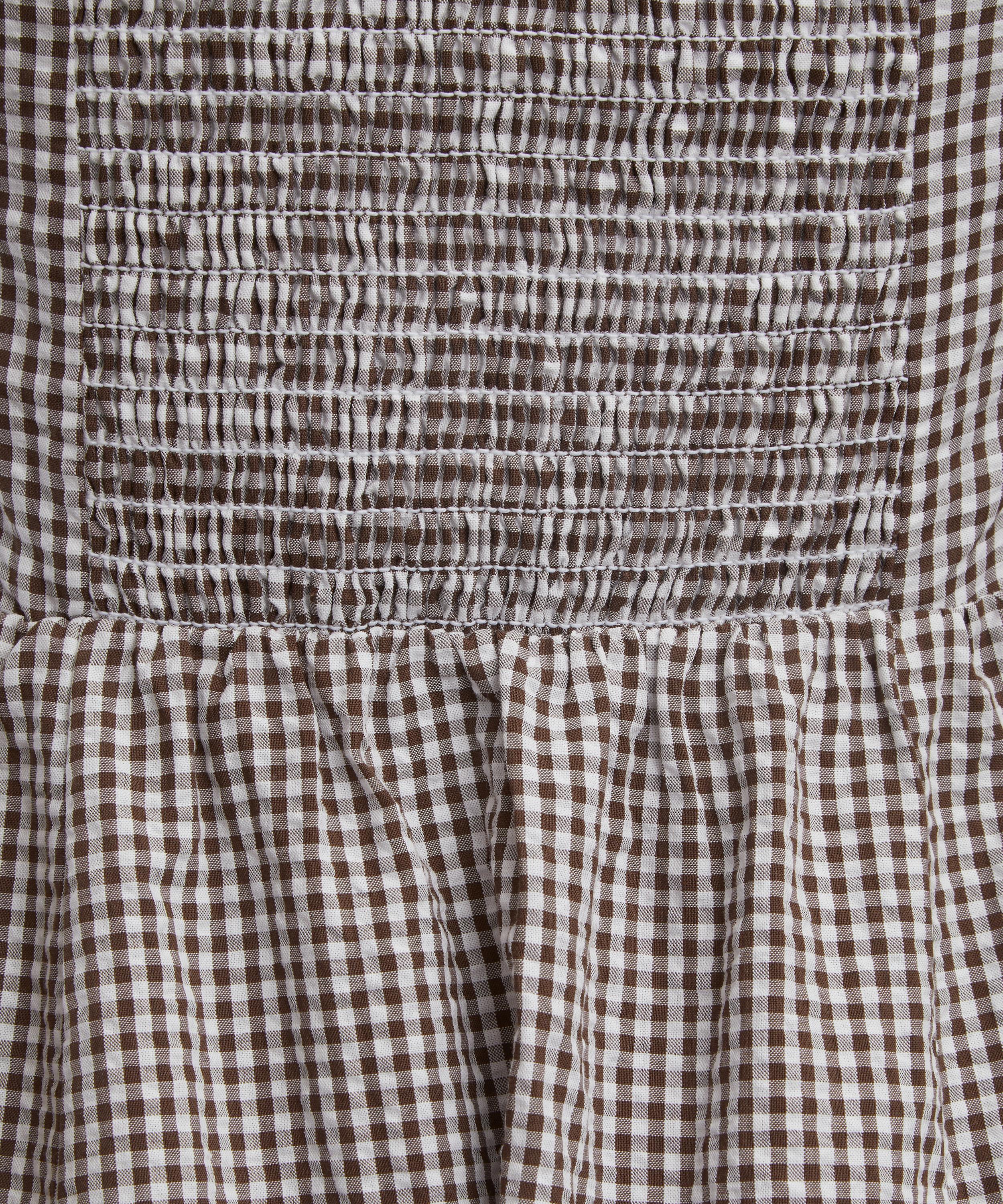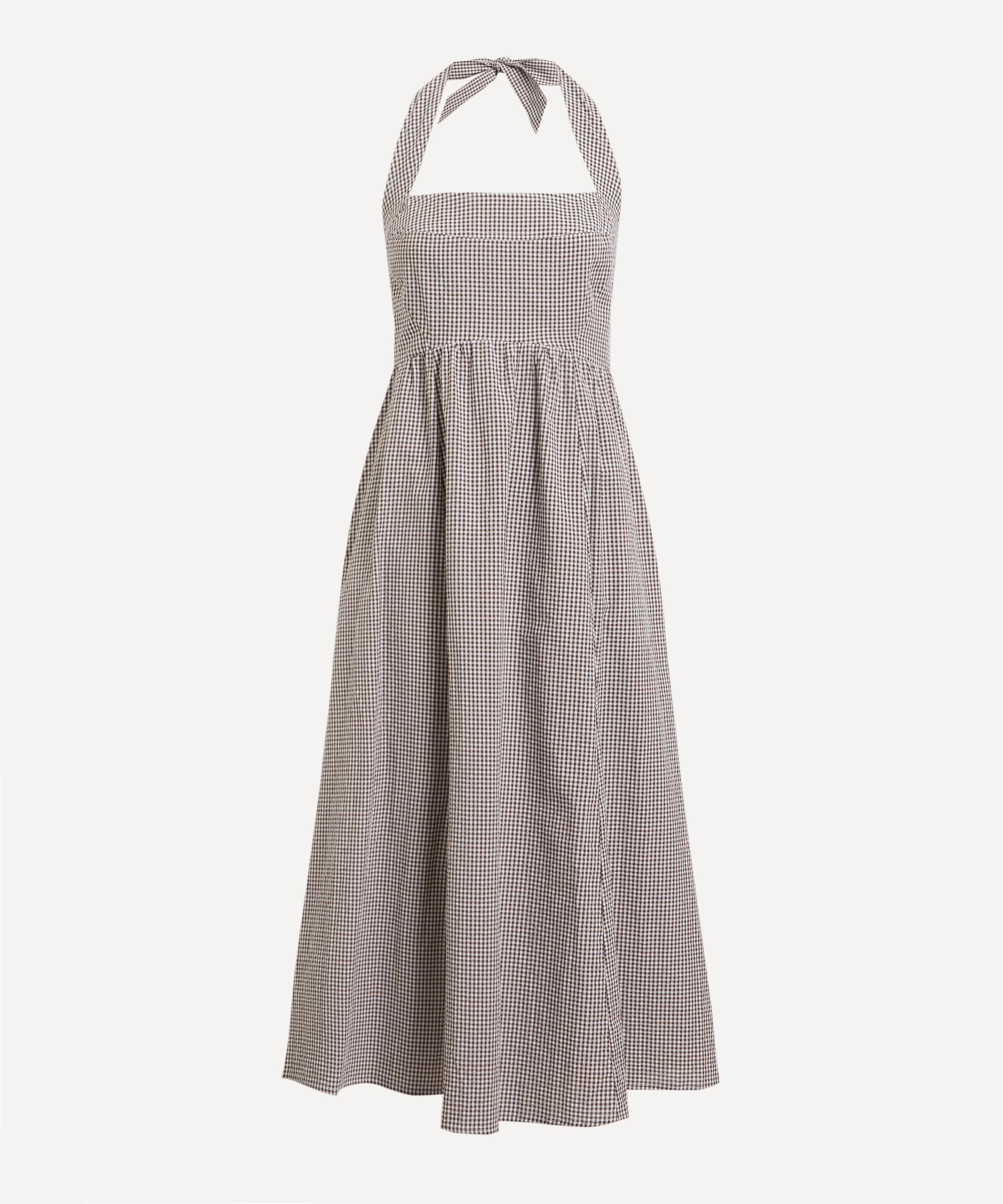 Destined for balmy summer days, the Chocolate Gingham Fleur Midi Dress from Hill House brings beauty and joy to everyday rituals.